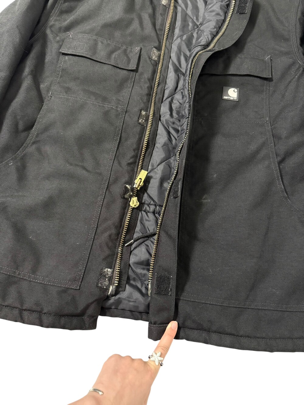 •칼하트 c55 퀄팅 워크자켓 입니다. 투웨이 지퍼가 고장이나서 수선해서 착용하실분이 저렴한 가격에 가져가셨으면 해요! 안감 굉장히 깔끔한 편~.~