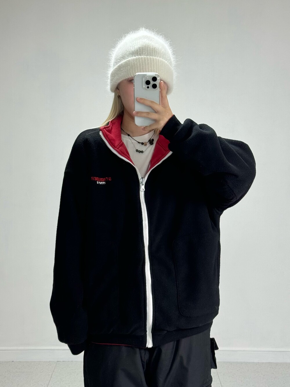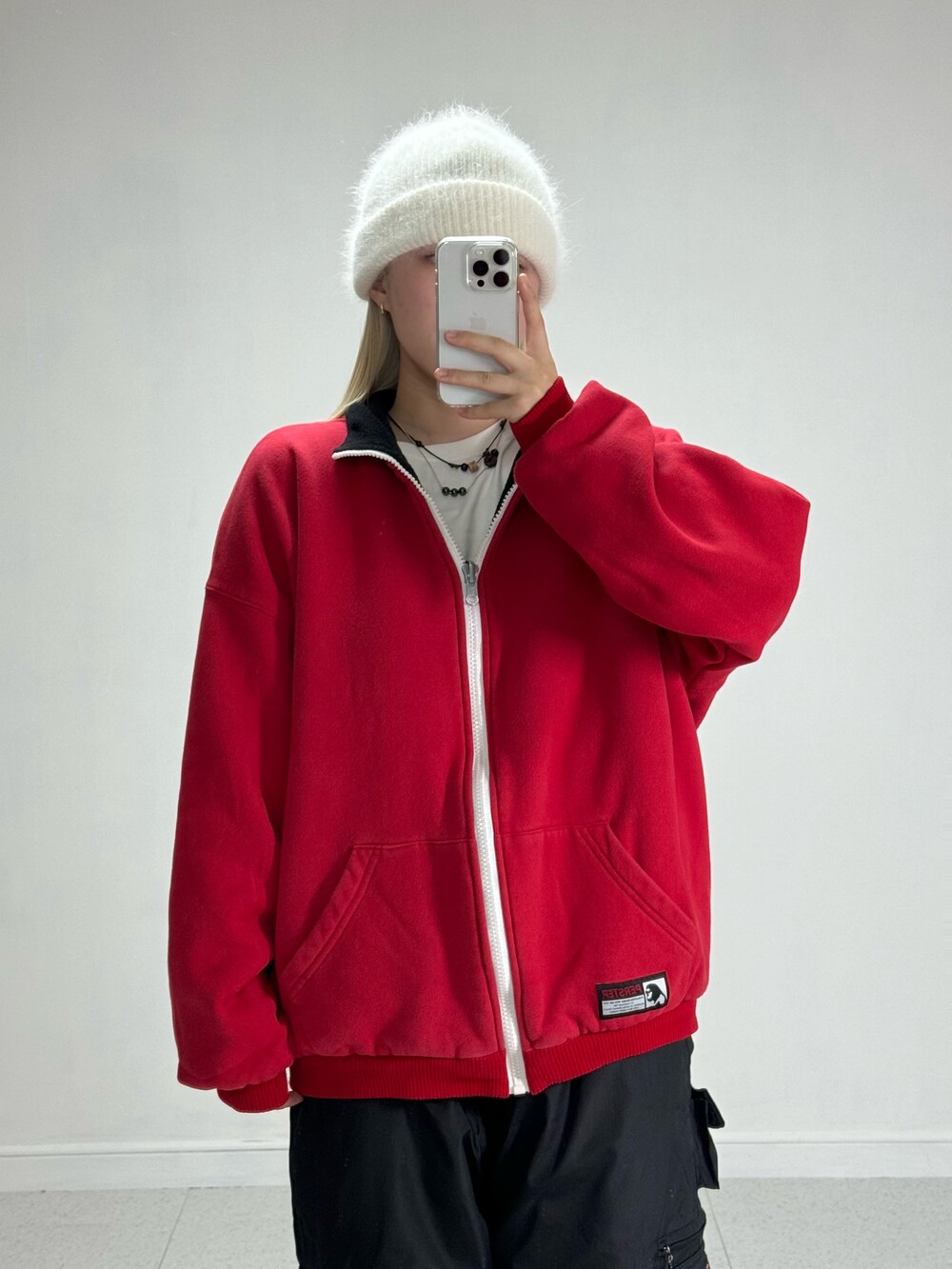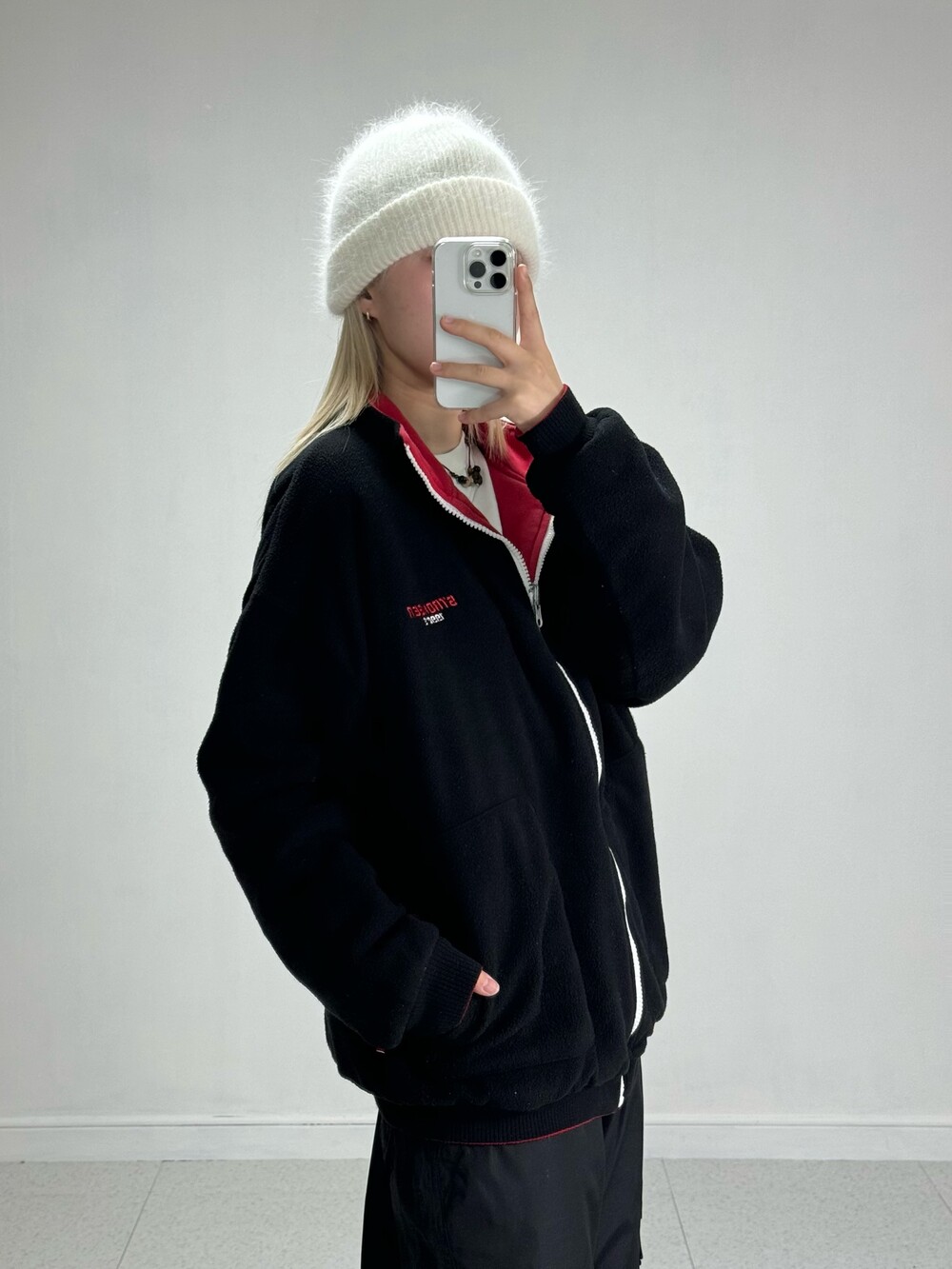 •블랙은 후리스 원단, 레드는 코튼원단이며 아방한 핏의 굉장히 사랑스러운 집업이에요! 두께도 두툼해서 따뜻하게 입으실 수 있어요ㅎㅎ