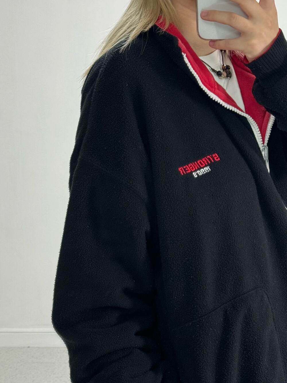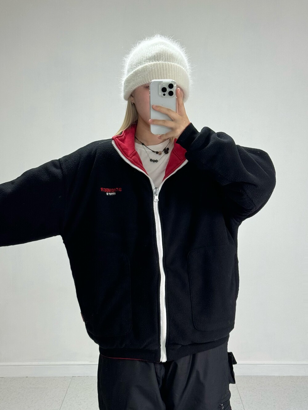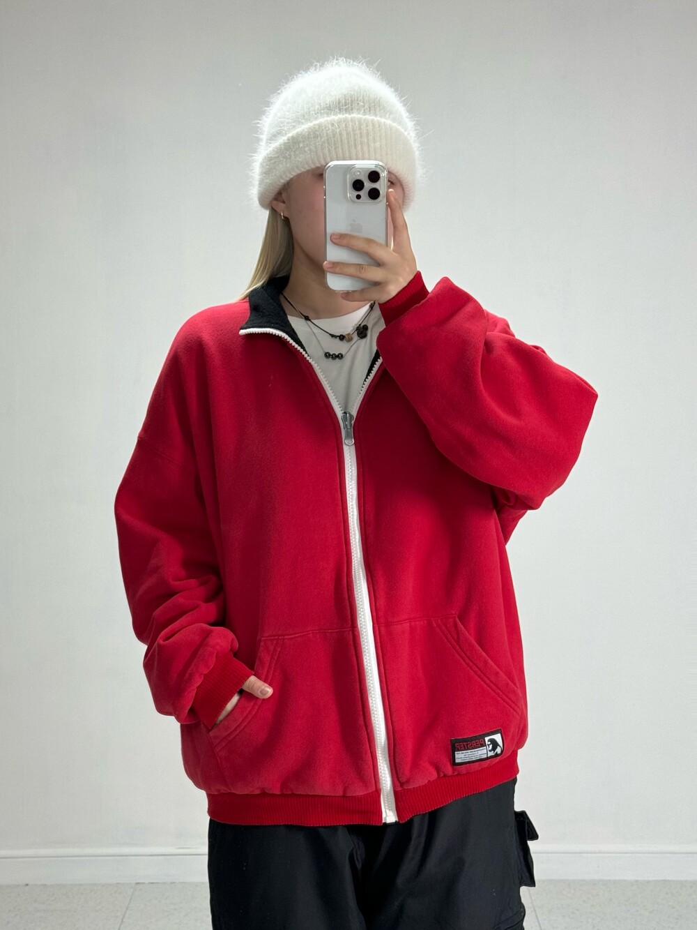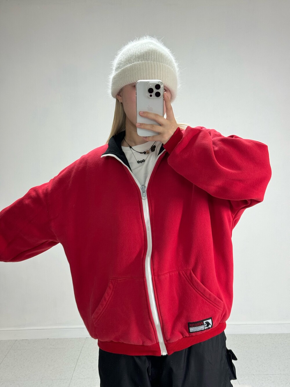 •블랙은 후리스 원단, 레드는 코튼원단이며 아방한 핏의 굉장히 사랑스러운 집업이에요! 두께도 두툼해서 따뜻하게 입으실 수 있어요ㅎㅎ