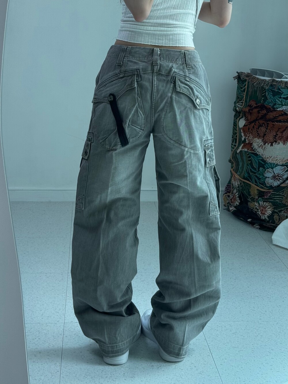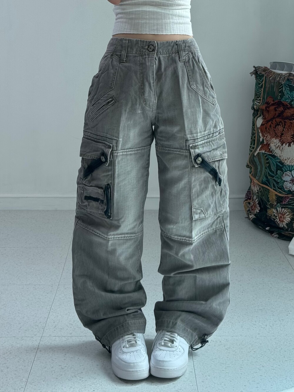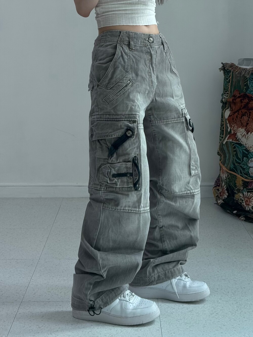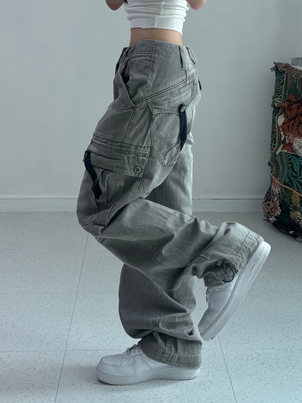 Gray washing cargo pants