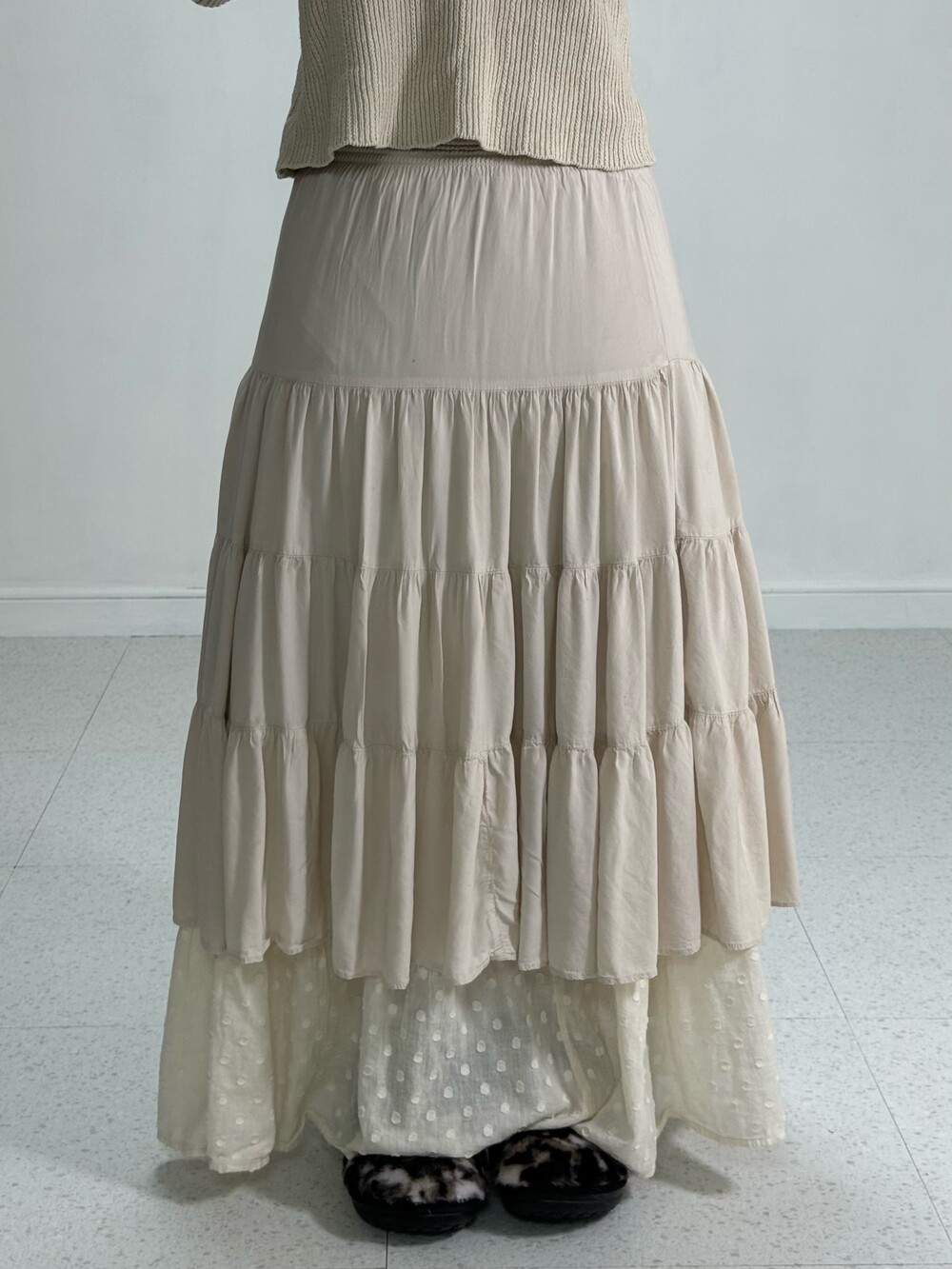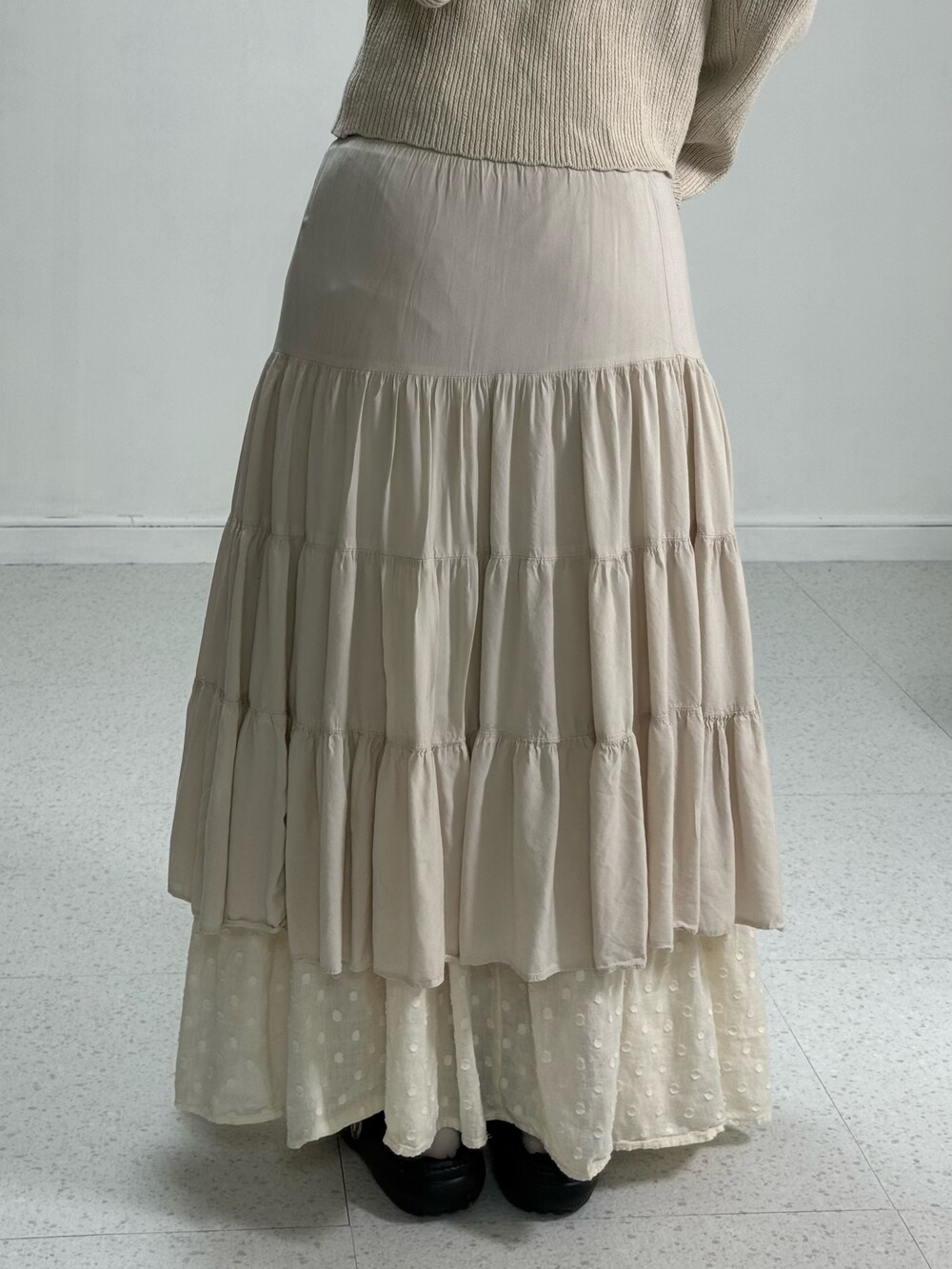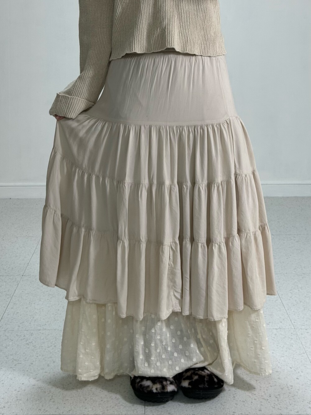 •플레어한 라이트 베이지 컬러의 캉캉스커트 입니다ㅎㅎ 레이어드용으로 딱 좋아요!