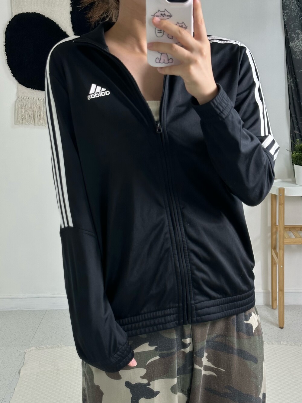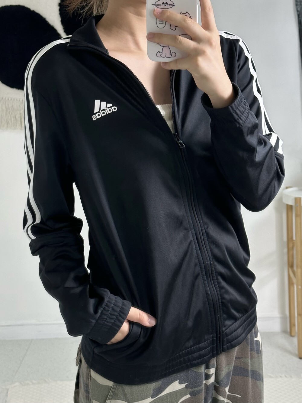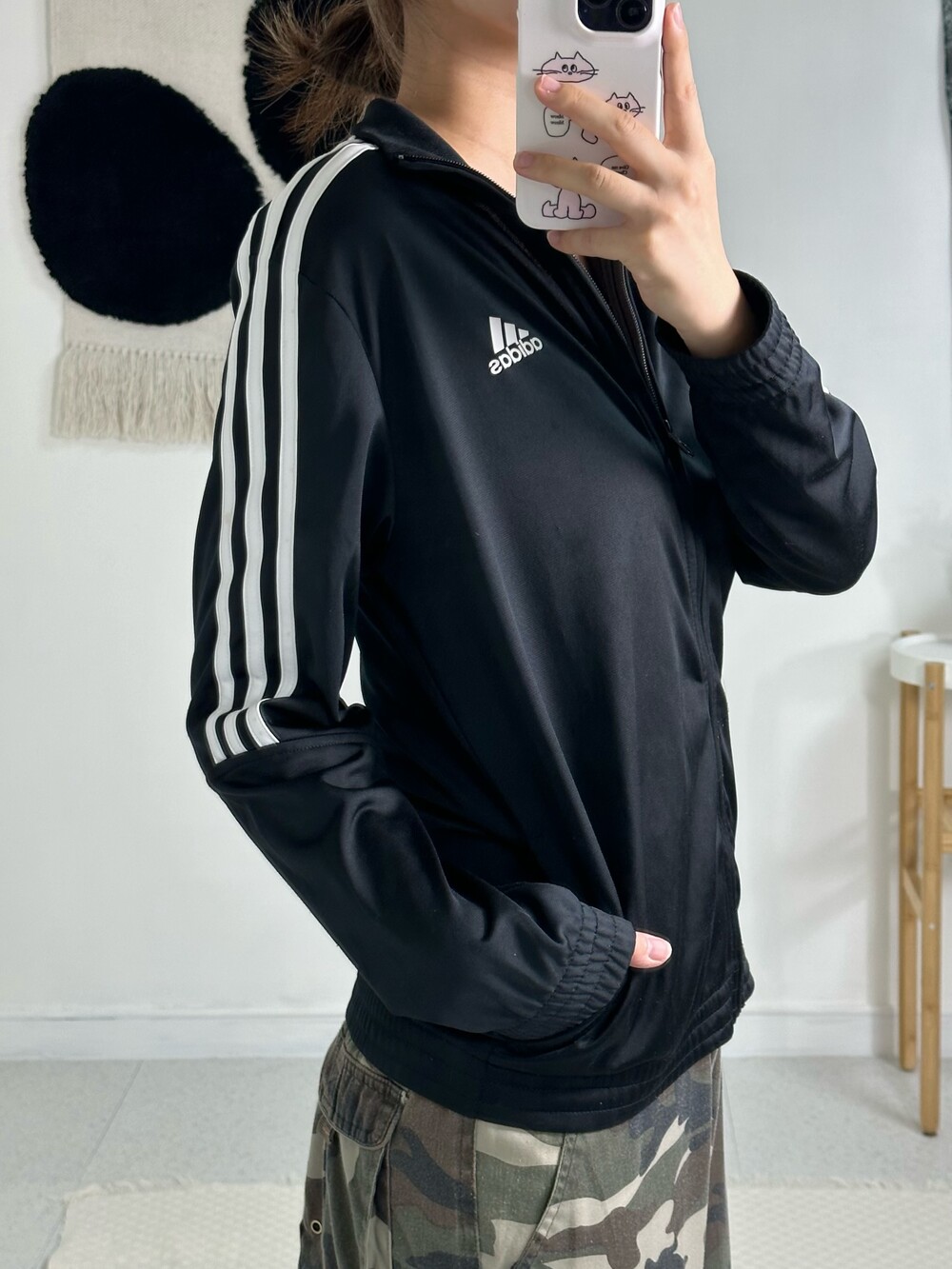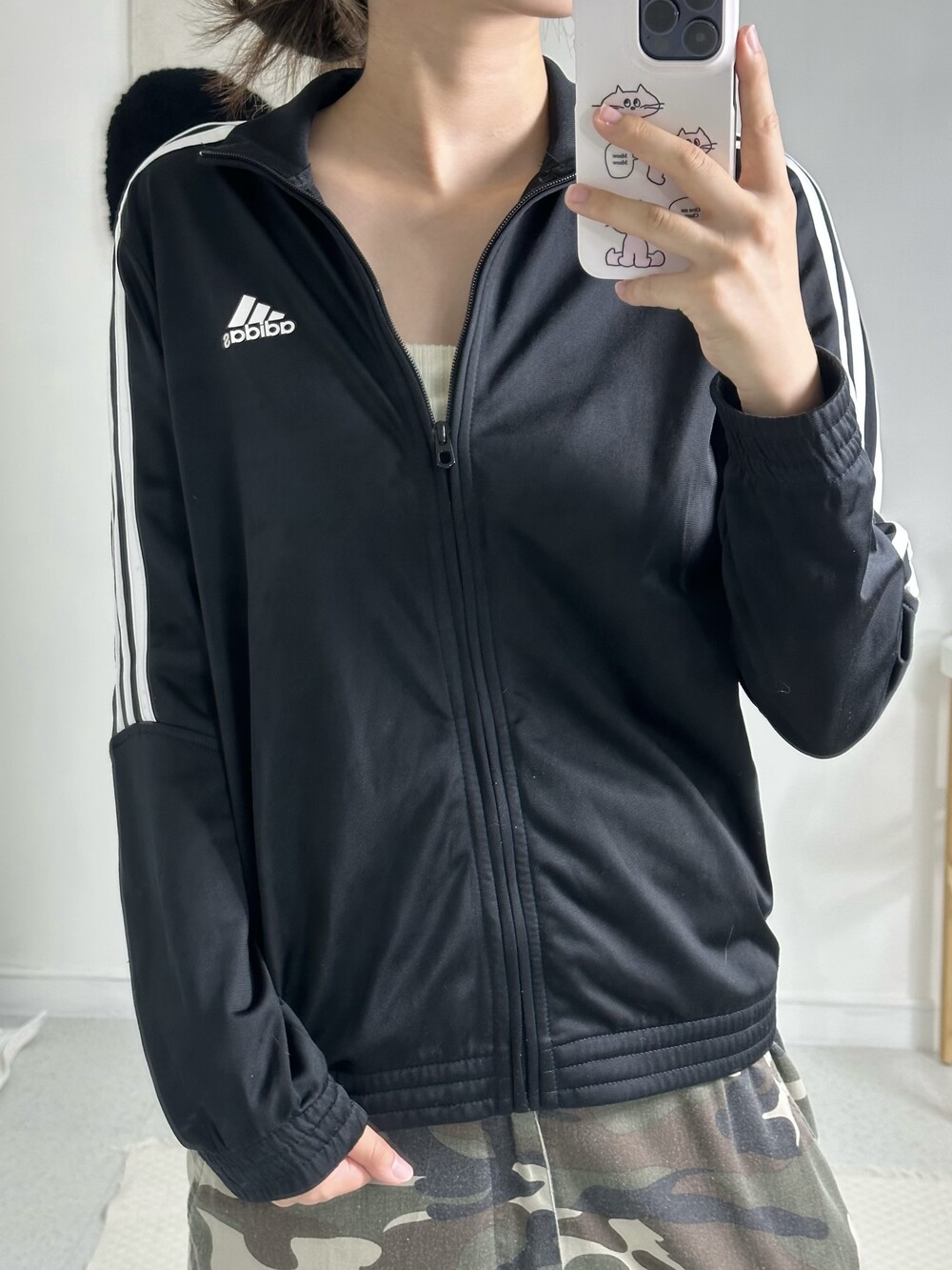 •에센셜 라인 져지에요! 펑퍼짐한 느낌보다 살짝 슬림하게 떨어지면서 몸에 딱 맞는 핏으로 연출되는 제품입니다:) 간단한 나시와 겉에 요고 입어주시고 와이드한 팬츠 함께 입어주시면 완전 스포티걸 될것같은 느낌스 ㅎ ㅎ