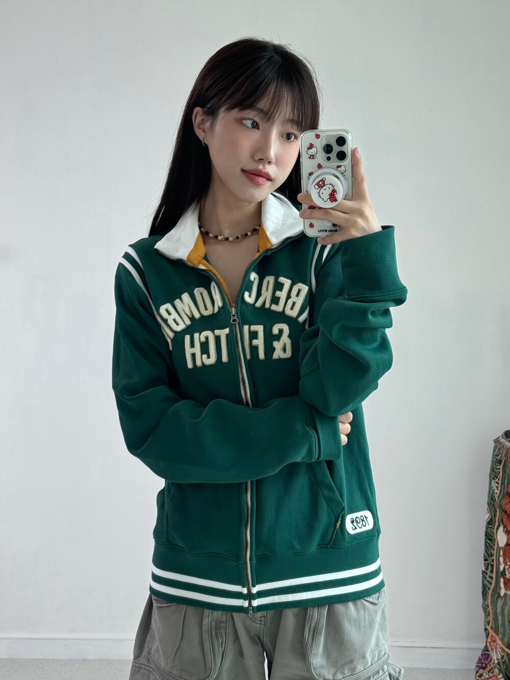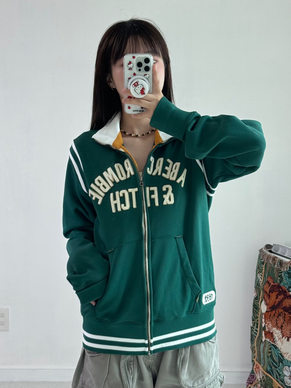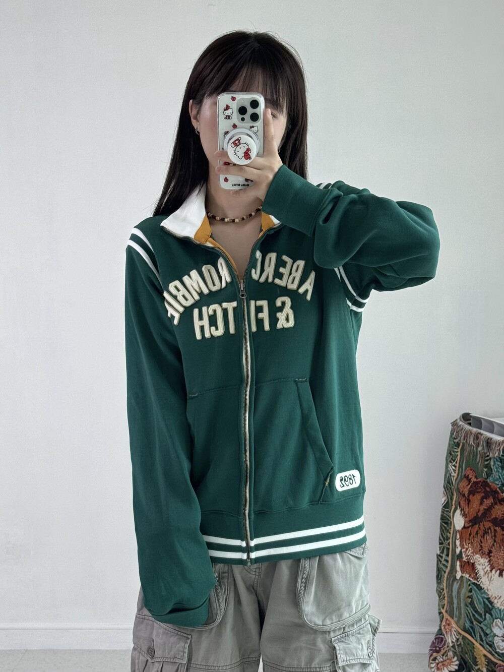 •딥그린과 머스타드 컬러 조합이 넘 귀여운 아베크롬비 집업이에요! 낭낭한 루즈핏이라 핏감이 쏘 러블리😍