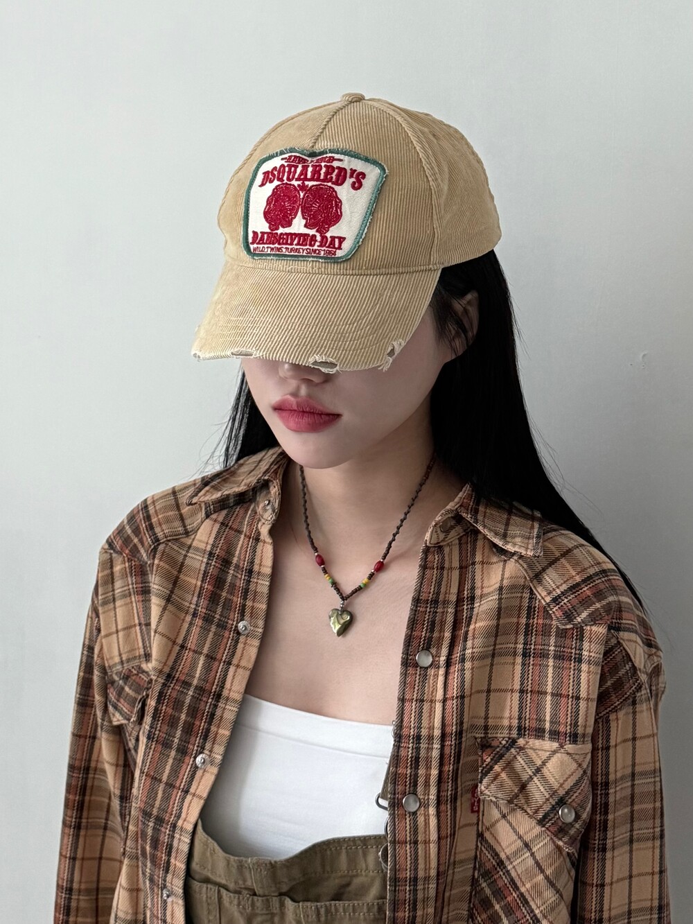 디스퀘어드 코듀로이 베이지 캡 입니다! 데미지 디테일이 들어가있어 한층 빈티지스러움을 더해주고 얕지 않아 편하게 착용하시기 좋은 아이템 입니다.