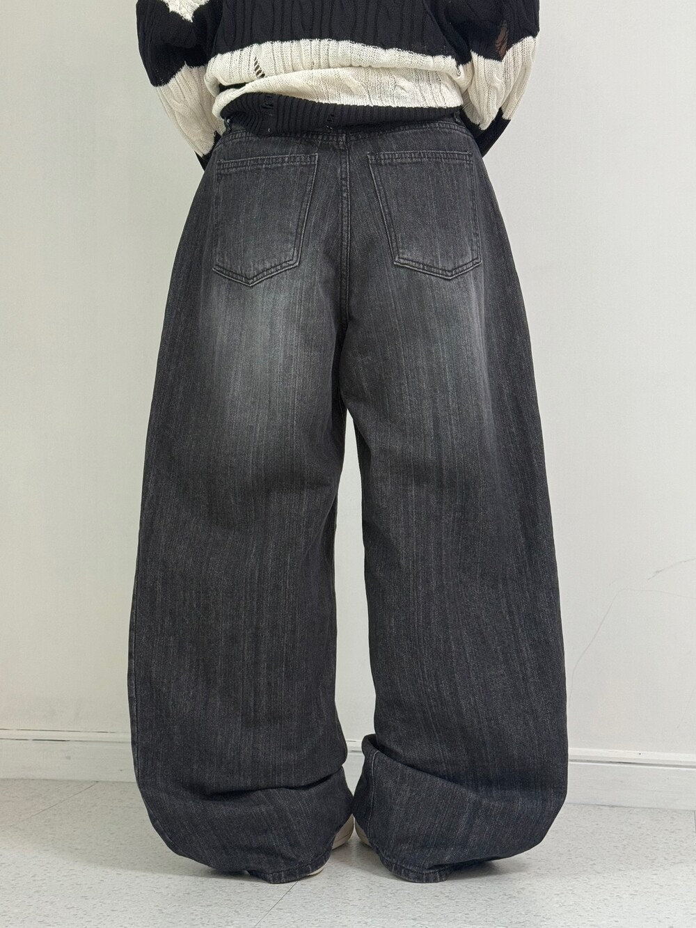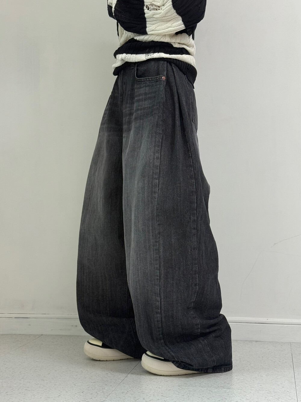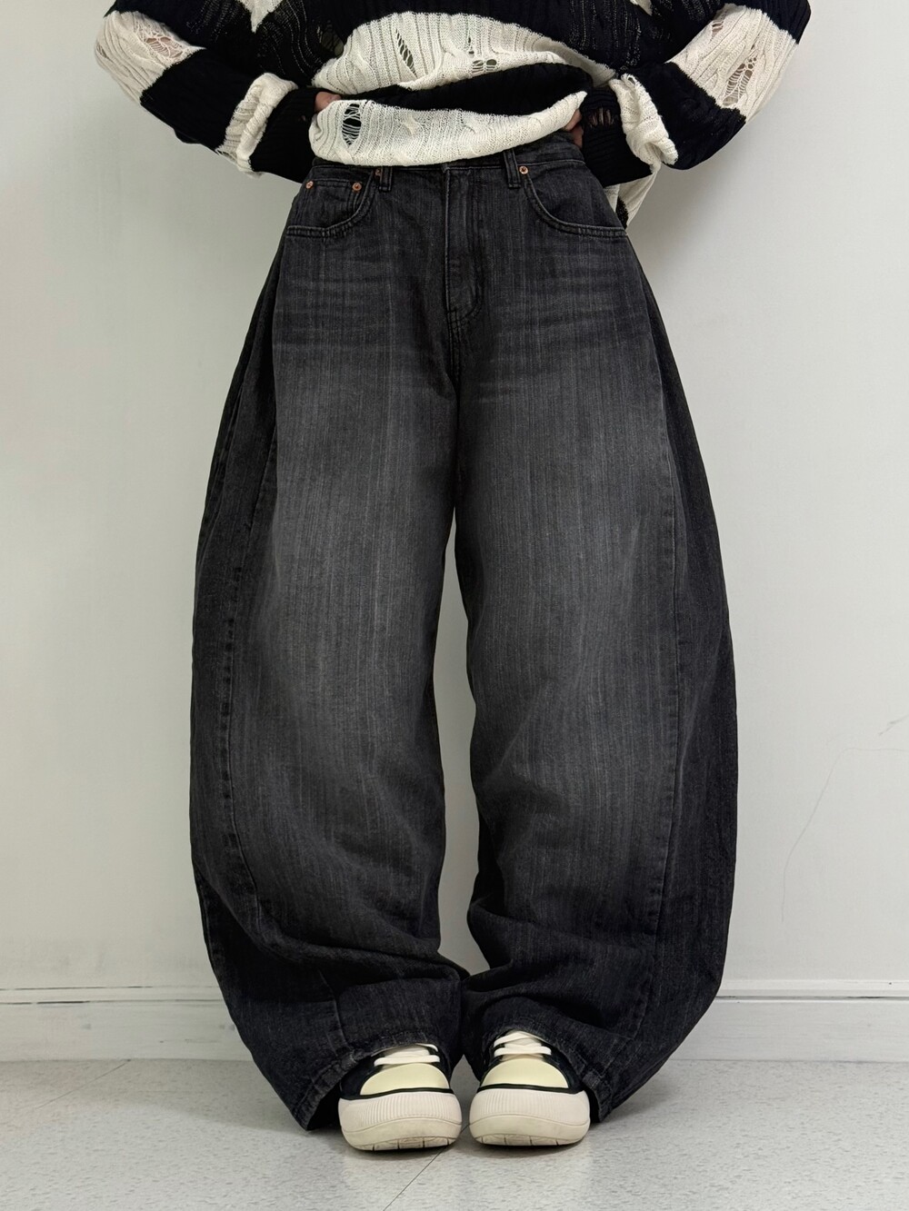 •오오티제이 블랙 와이드 데님팬츠 입니다! 사계절 내내 즐겨주시기 좋은 두께감이며 허리는 얇게 잡아주고 하체는 벌룬핏으로 귀엽게 잡아주기 가능>,<