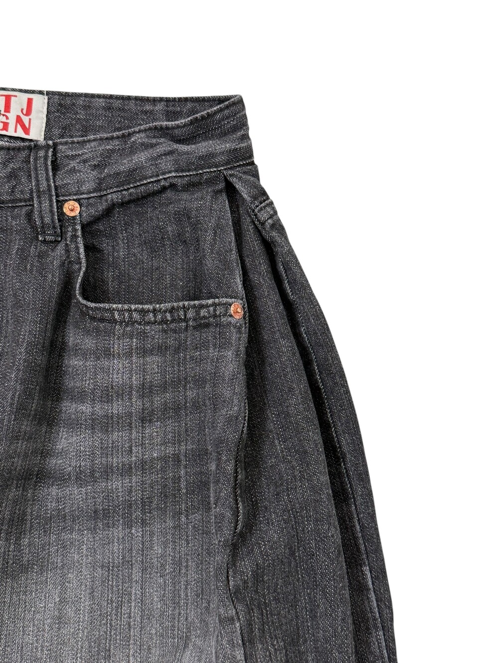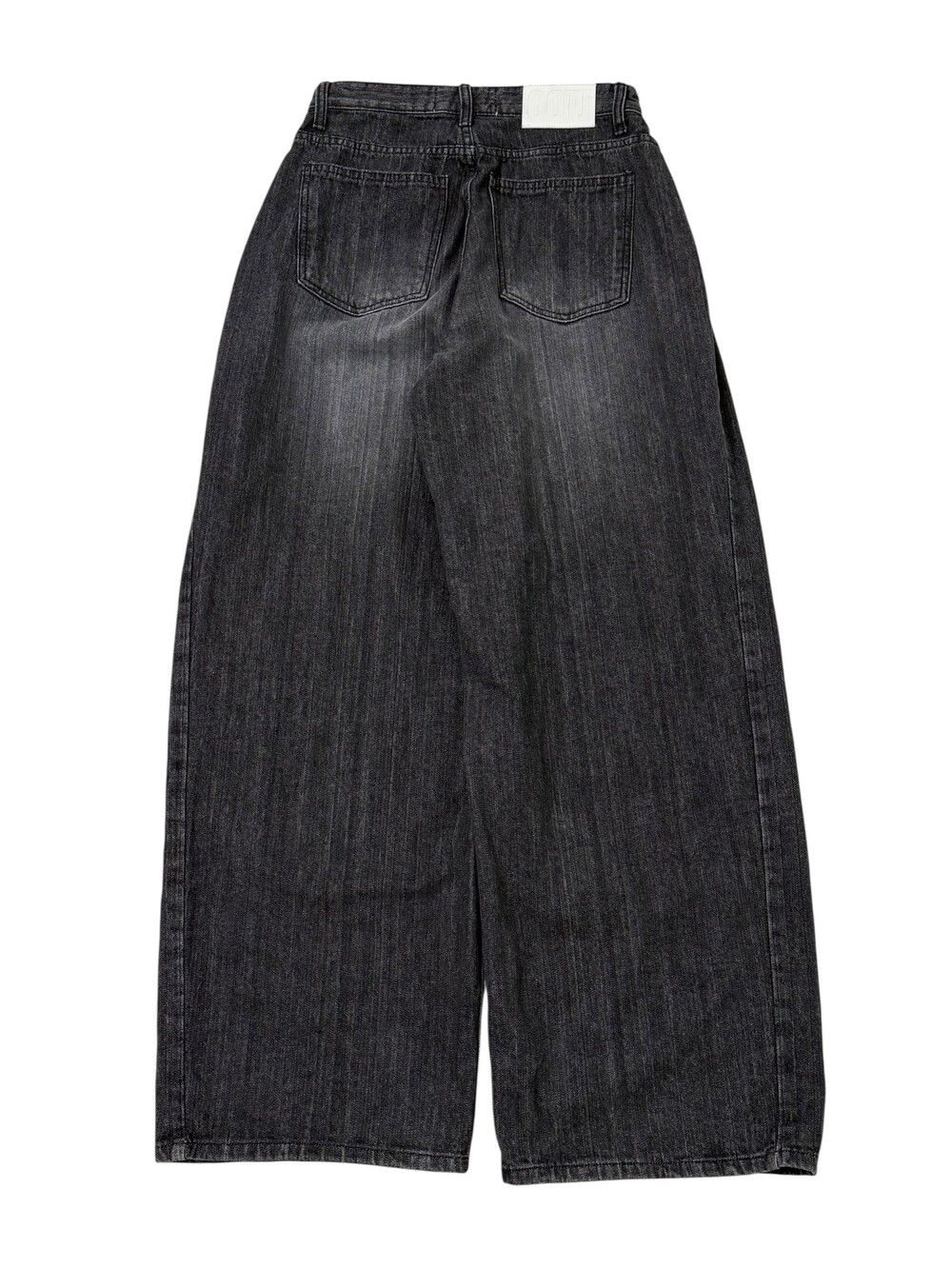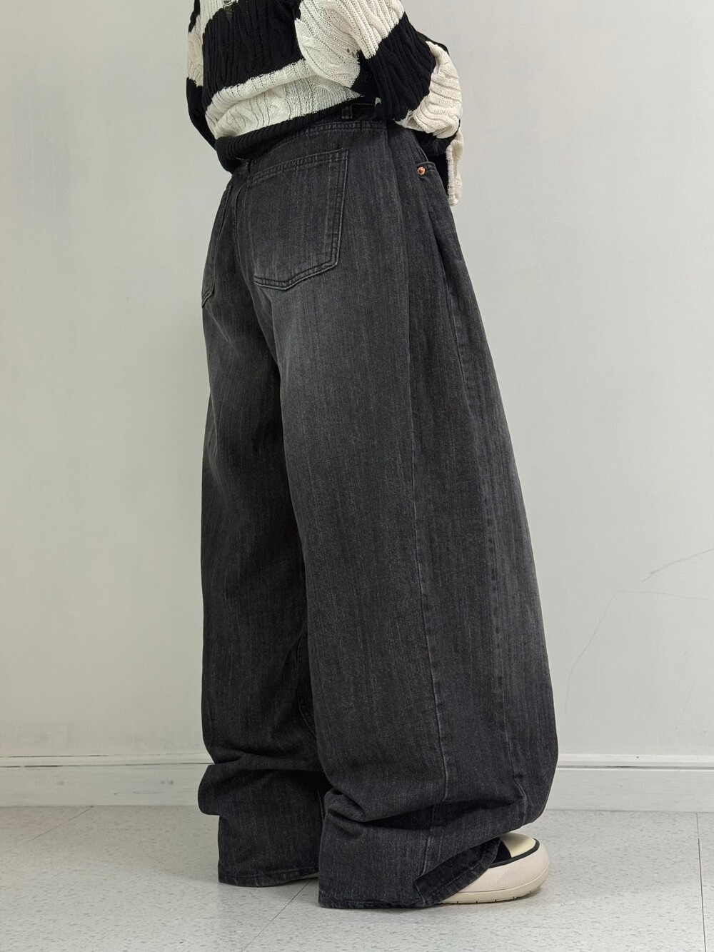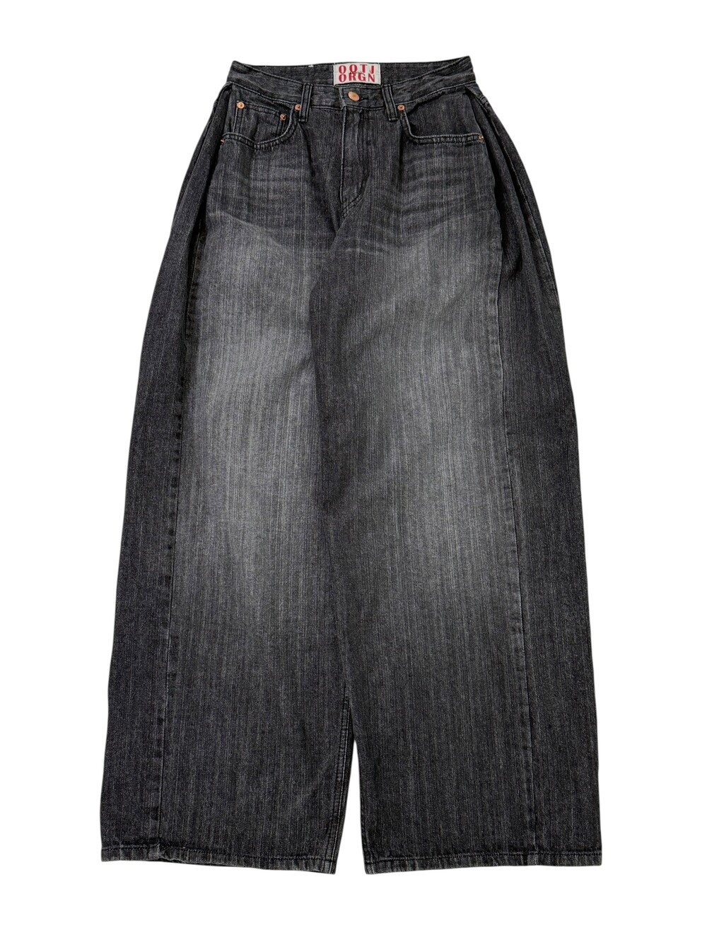 •오오티제이 블랙 와이드 데님팬츠 입니다! 사계절 내내 즐겨주시기 좋은 두께감이며 허리는 얇게 잡아주고 하체는 벌룬핏으로 귀엽게 잡아주기 가능>,<