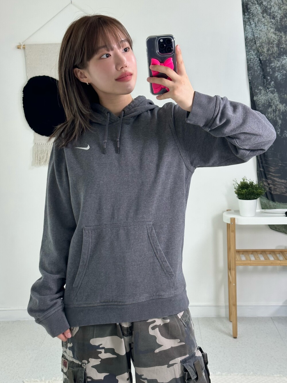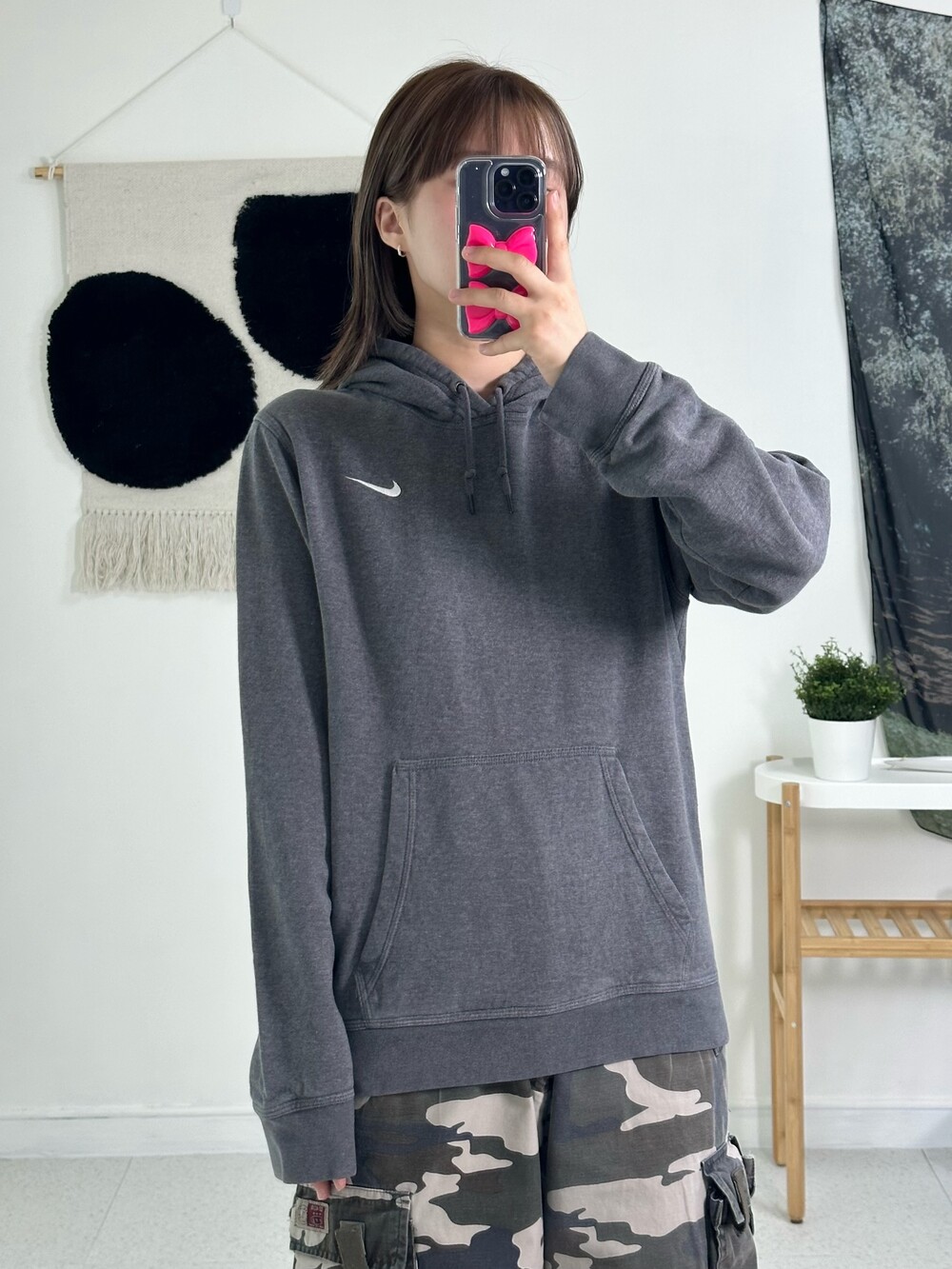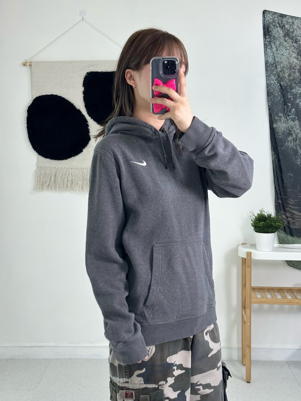 •딥한 그레이 컬러에 정핏으로 떨어지는 나이키 후드티에요! 작은 스우시가 귀엽게 있고 데일리로 착용하기 넘 좋은 제품이라는거🖤