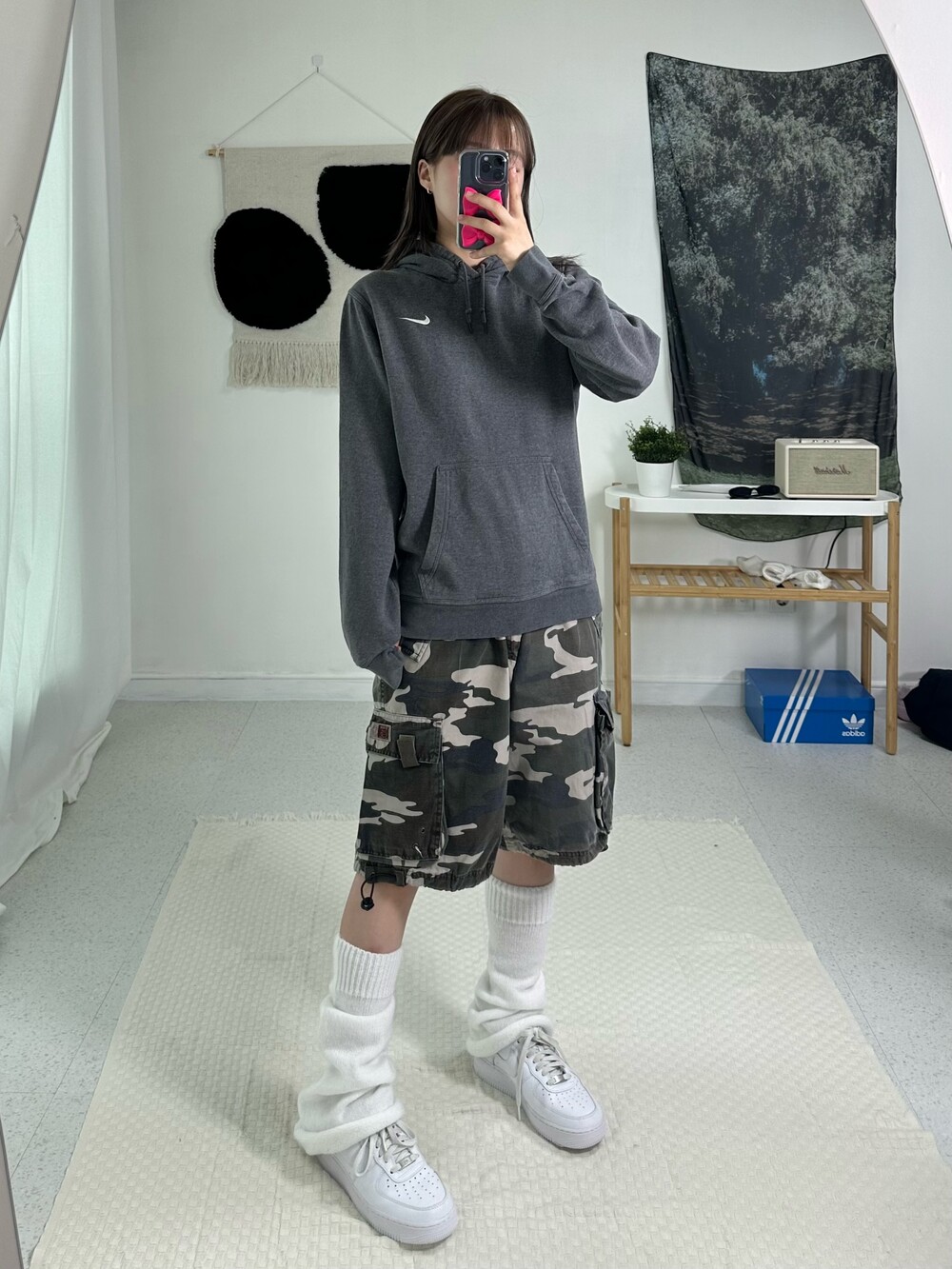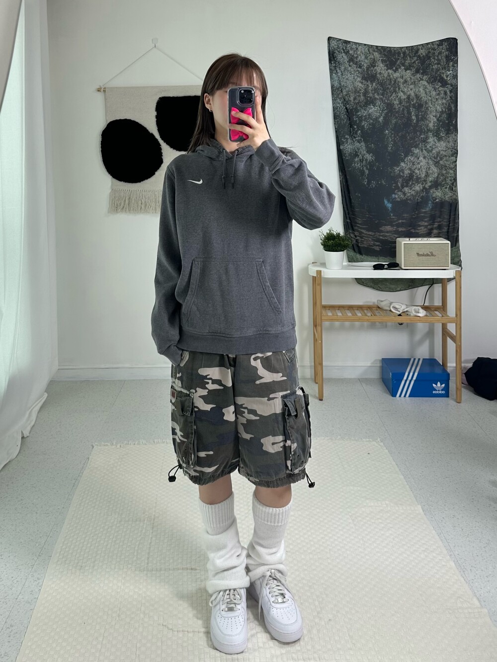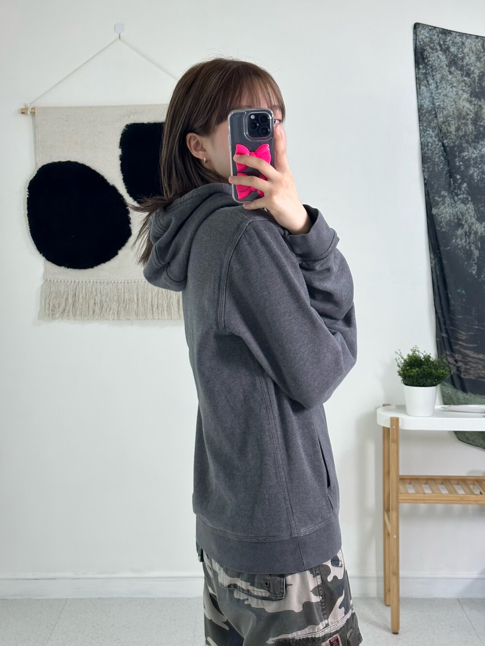 •딥한 그레이 컬러에 정핏으로 떨어지는 나이키 후드티에요! 작은 스우시가 귀엽게 있고 데일리로 착용하기 넘 좋은 제품이라는거🖤