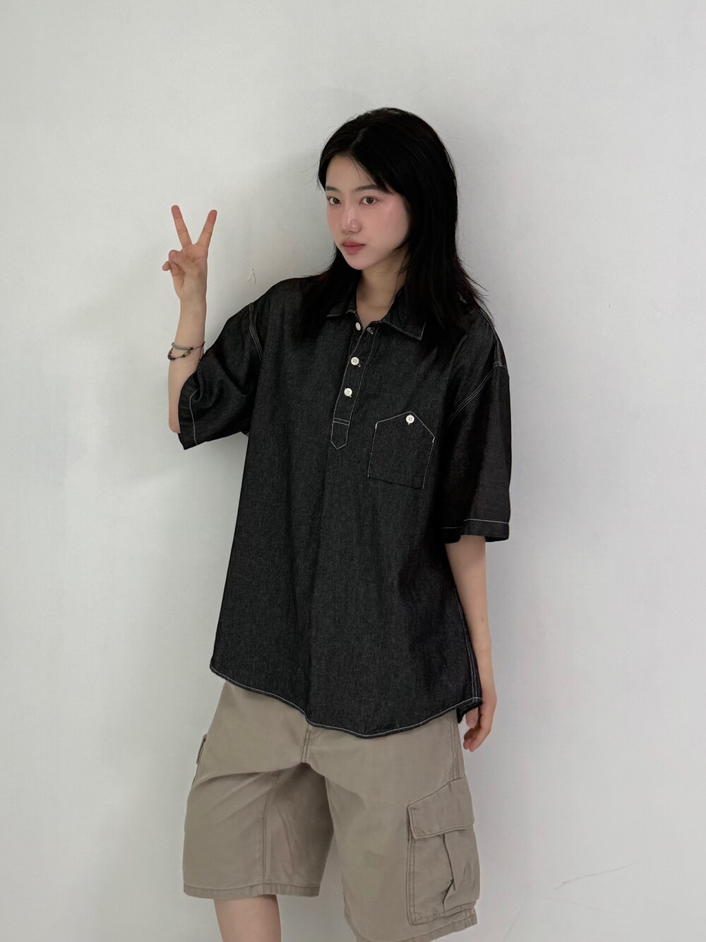 •남녀공용 오버핏으로 예쁘게 떨어지는 유니폼 브릿지 흑청반팔이에요! 시원하고 가볍게 입어주시기 좋은 녀석이랍니다ㅎㅎ (정가11만9천원)