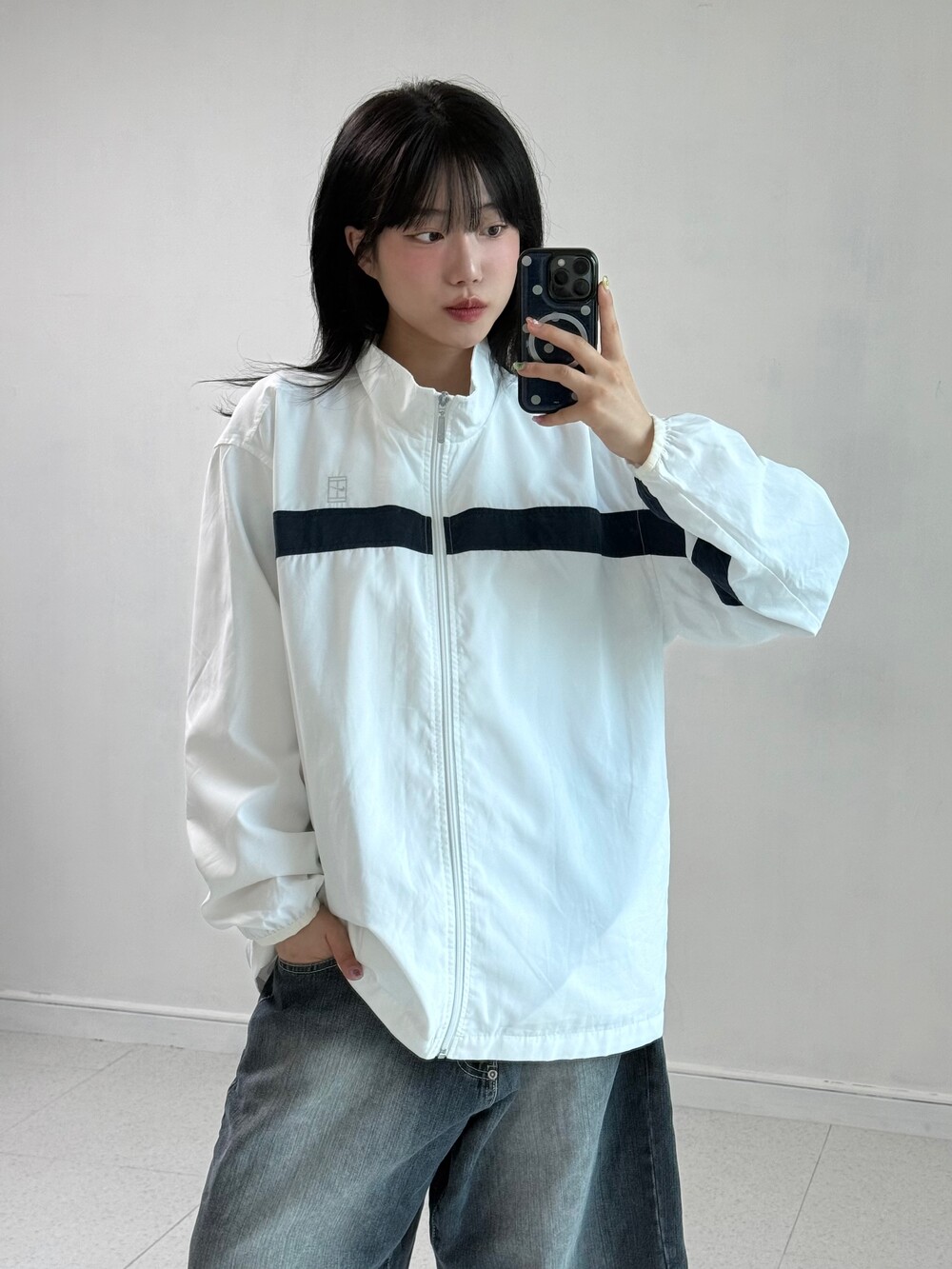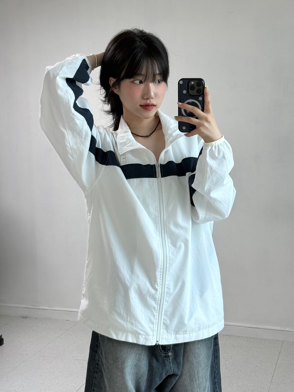 •나이키 화이트x네이비 바람막이 입니다! 오버핏 사이즈에 깔끔한 디자인이라 휘뚤마뚤 입어주시기 좋아요ㅎ.ㅎ