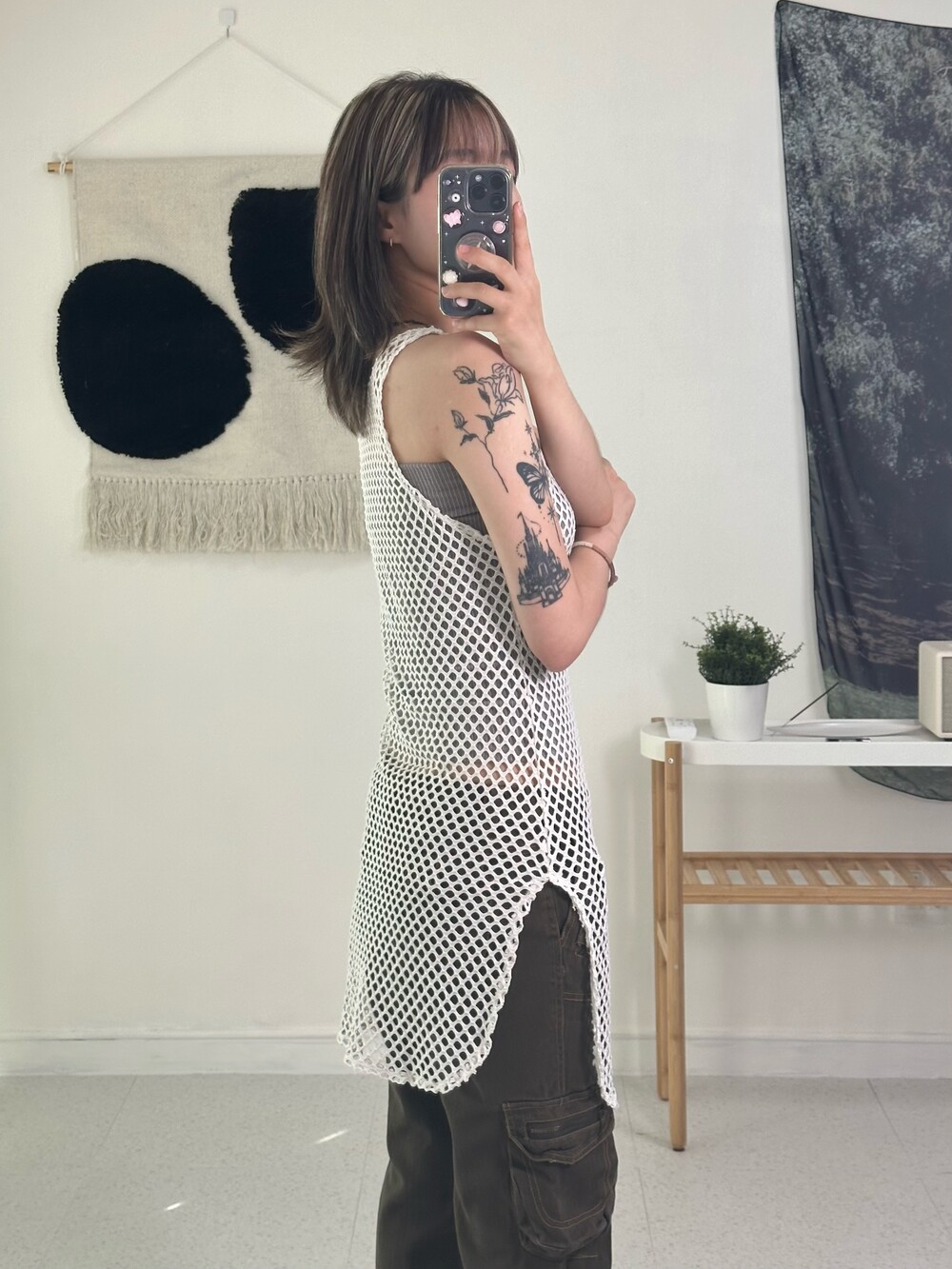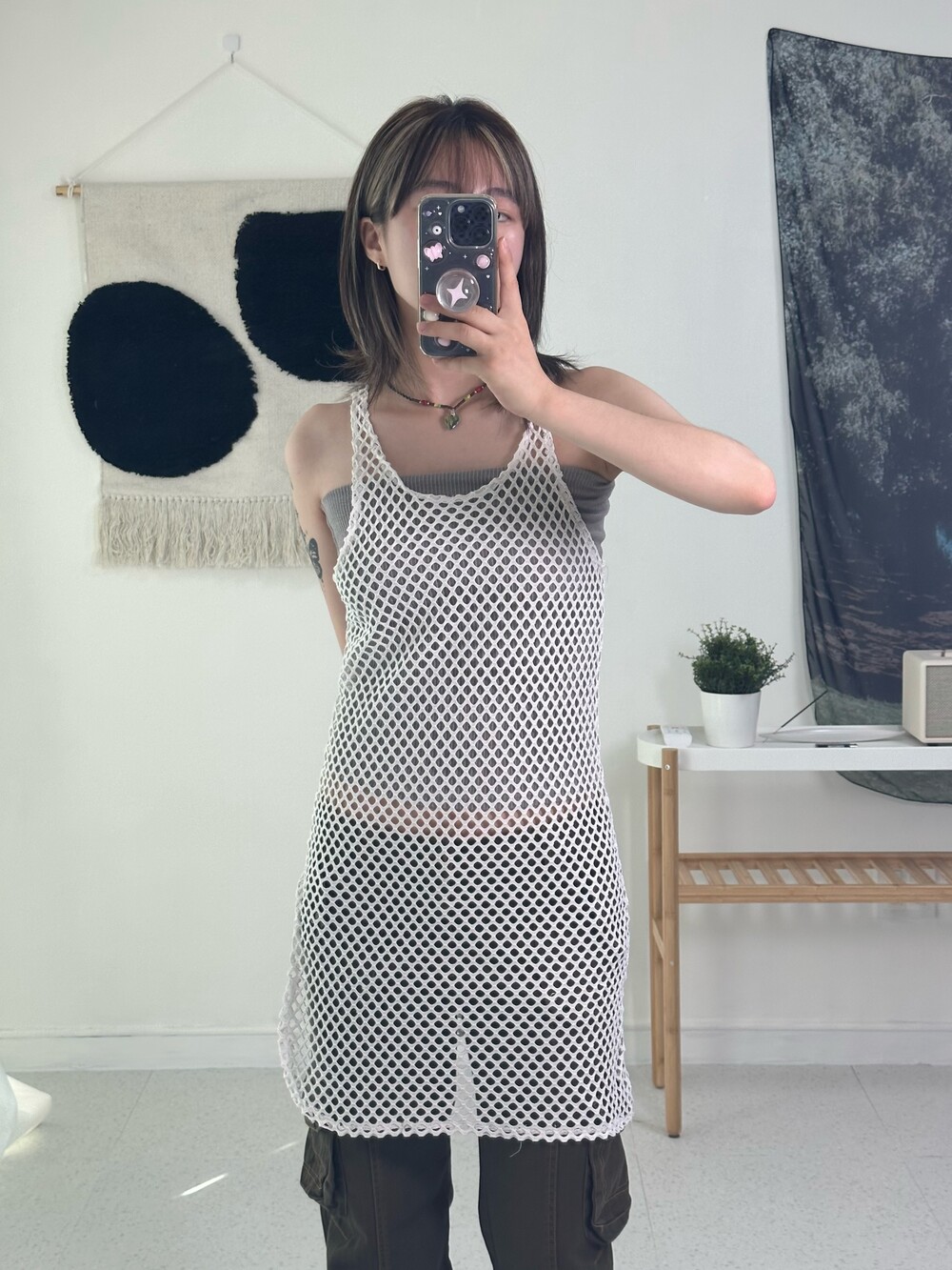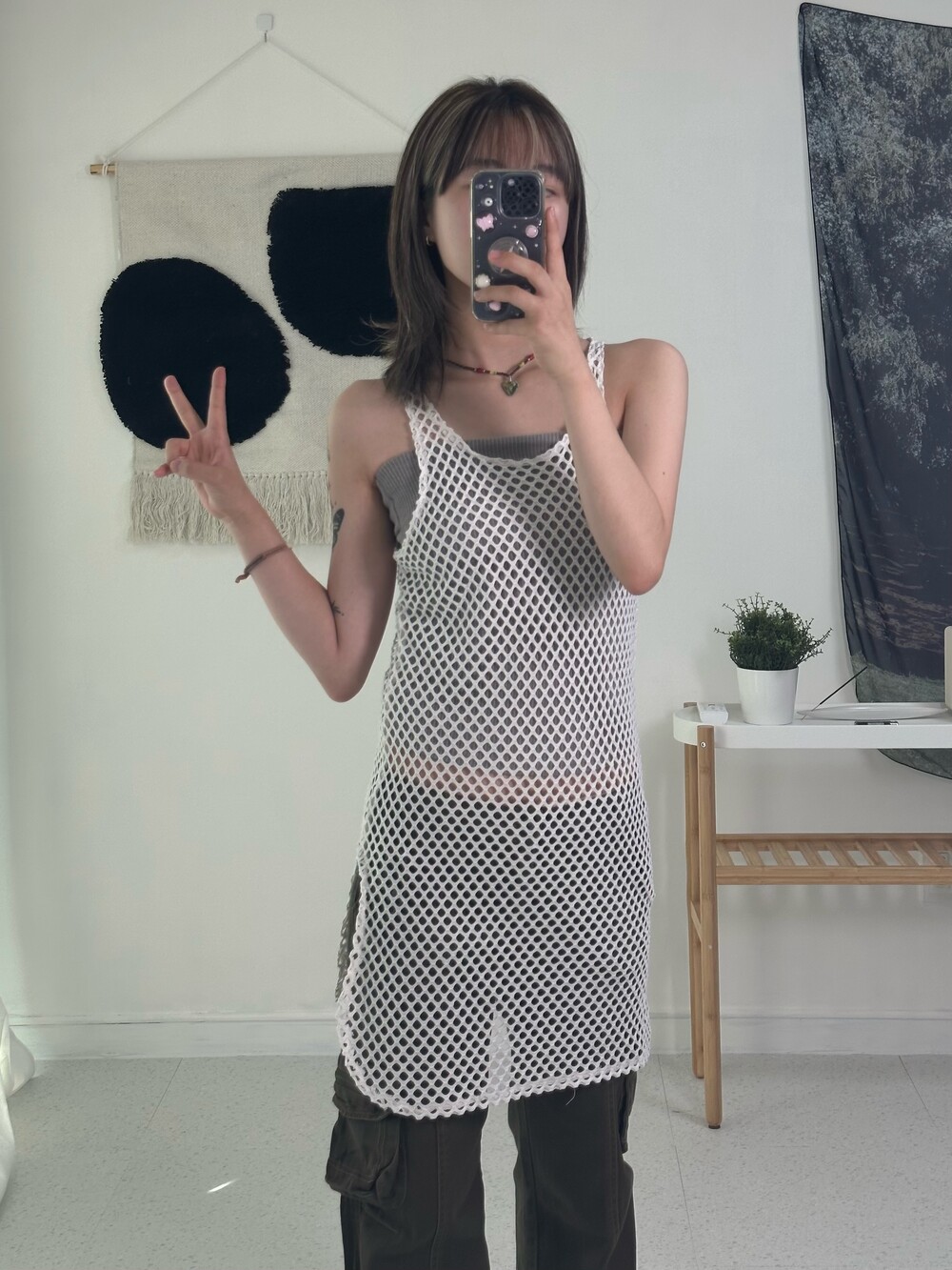 •루즈한 느낌의 크로셰 슬리브리스에요! 특이하게 한쪽만 절개가 되어 있어 더욱 유니크하게 착용하실 수 있어요:) 여름에는 크로셰 레이어드 해주는게 너무 예쁜거같아요 >,<