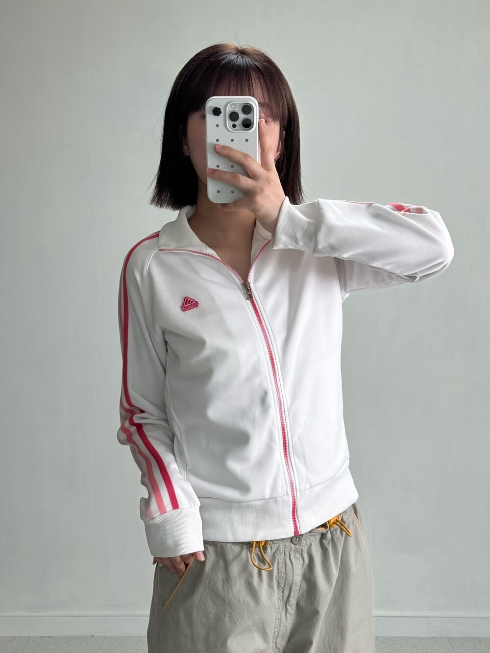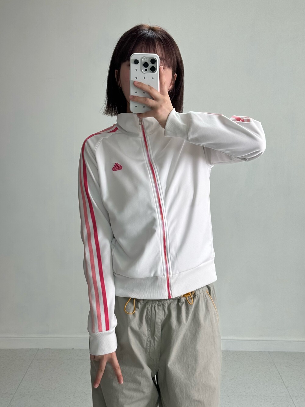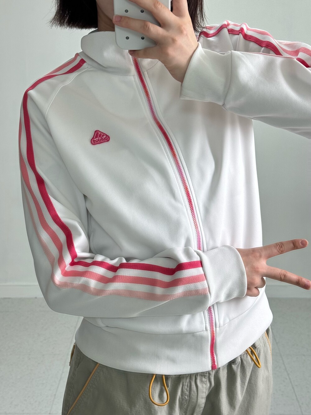 •아디다스 화이트,핑크조합 진짜 폼 미쳤습니다!! 심지어 지퍼 디테일도 핑크 그라데이션으로 넘 러블리하게 들어가있어요❤️ 구하고 싶어도 못구하는 매물 입니다ㅜㅜ.. 핏도 적당한 딱붙핏👍🏻 (타플랫폼에서 약 20만원정도 거래된 제품)