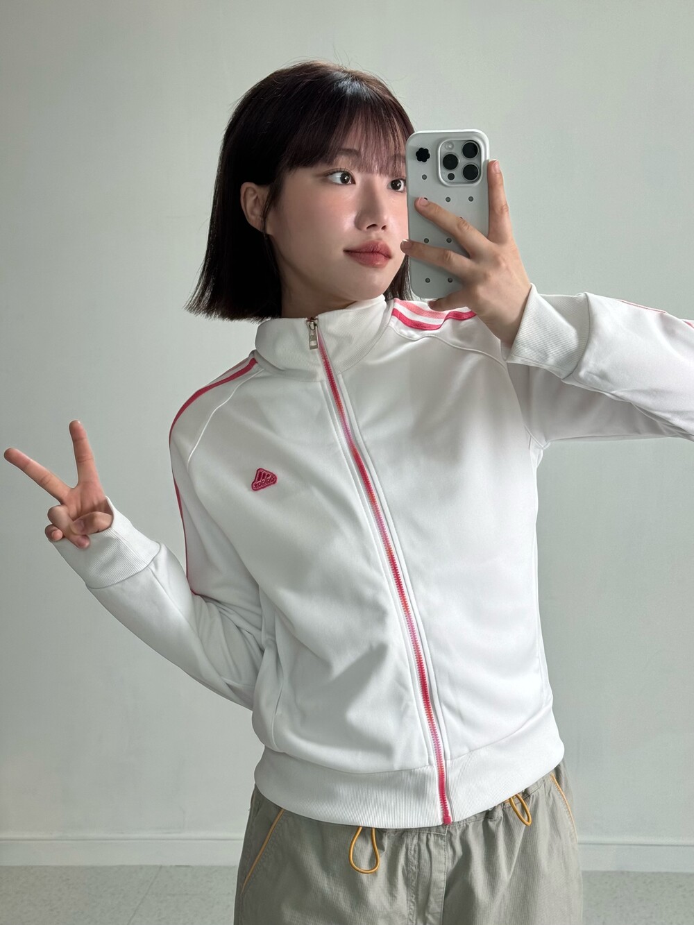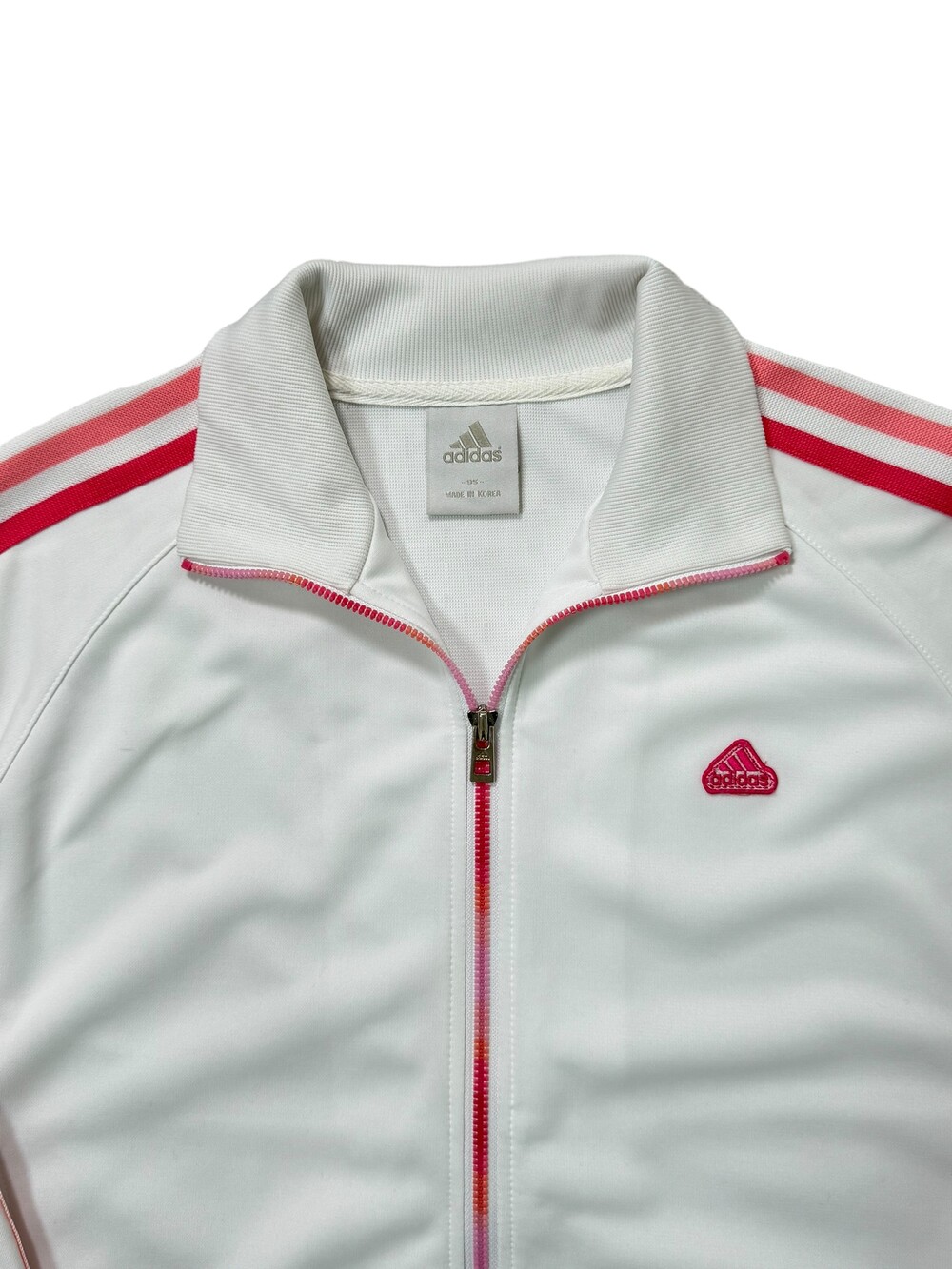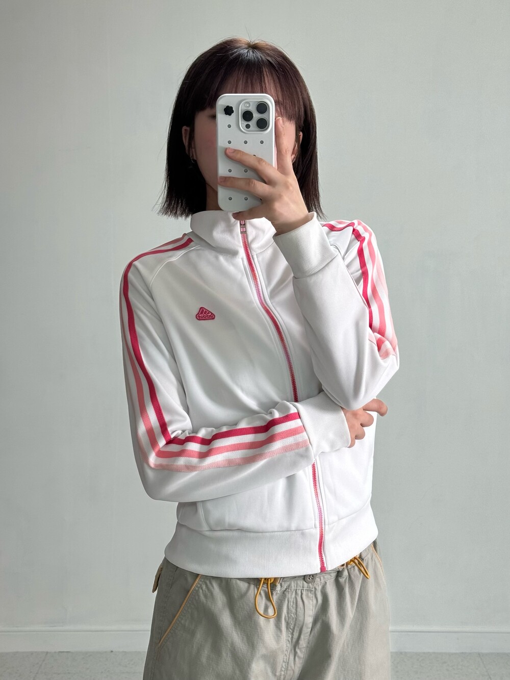 •아디다스 화이트,핑크조합 진짜 폼 미쳤습니다!! 심지어 지퍼 디테일도 핑크 그라데이션으로 넘 러블리하게 들어가있어요❤️ 구하고 싶어도 못구하는 매물 입니다ㅜㅜ.. 핏도 적당한 딱붙핏👍🏻 (타플랫폼에서 약 20만원정도 거래된 제품)