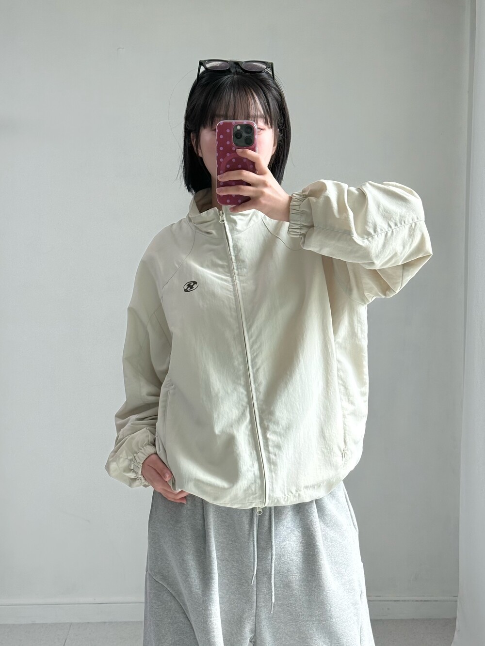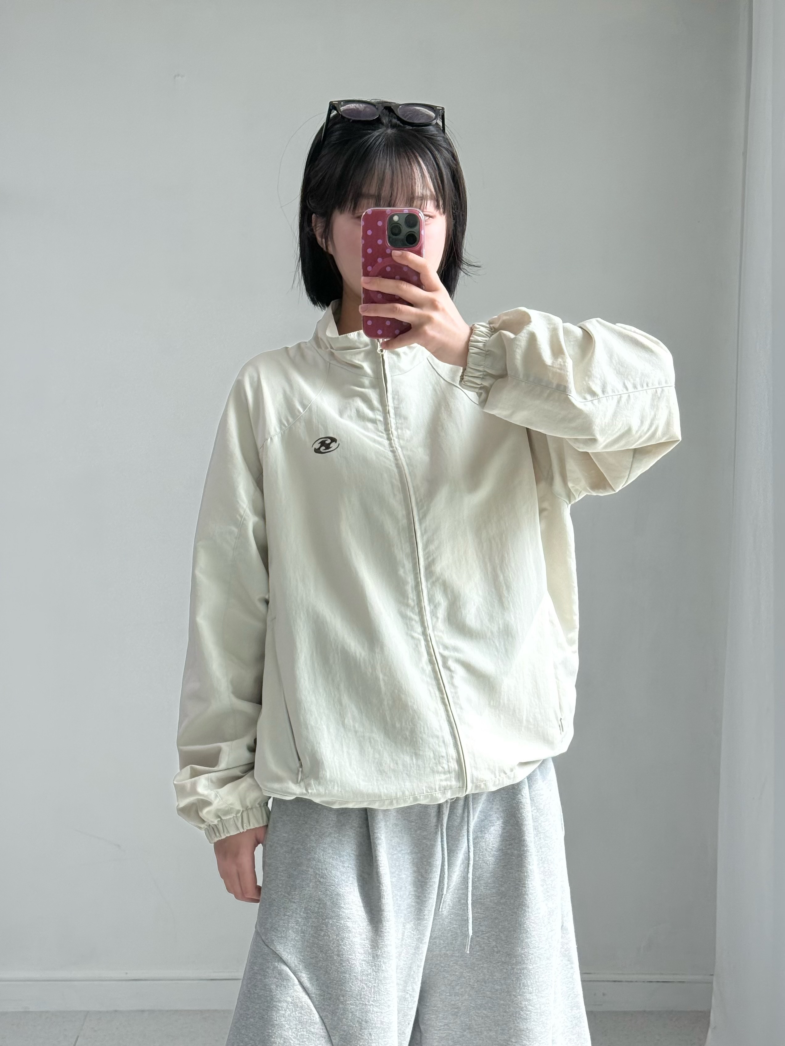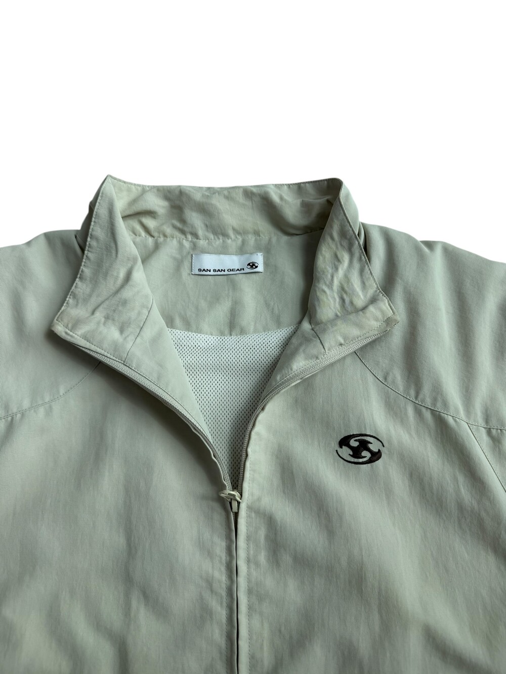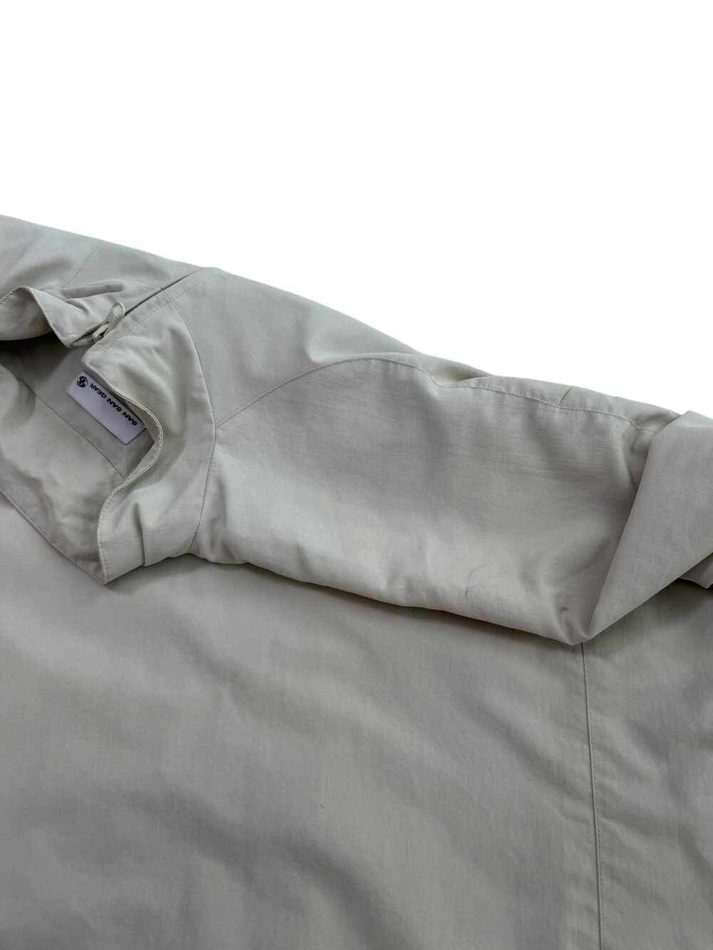 •산산기어 베이지에 브라운 로고가 들어간 투웨이 바막 입니다ㅎㅎ 밑단 스트랩도 들어가있어요!