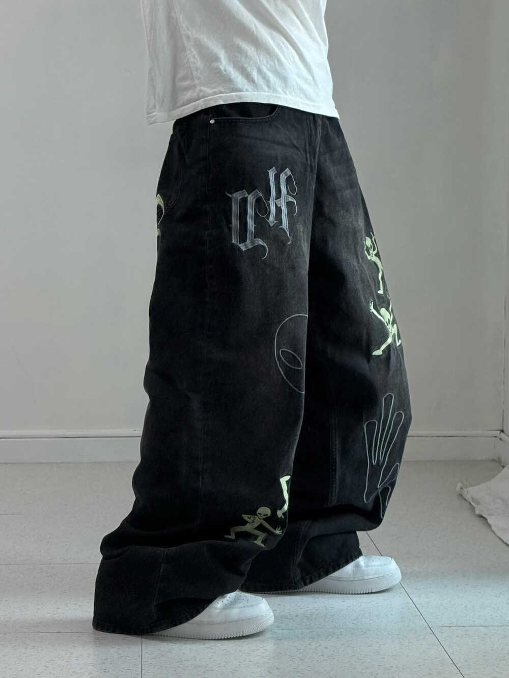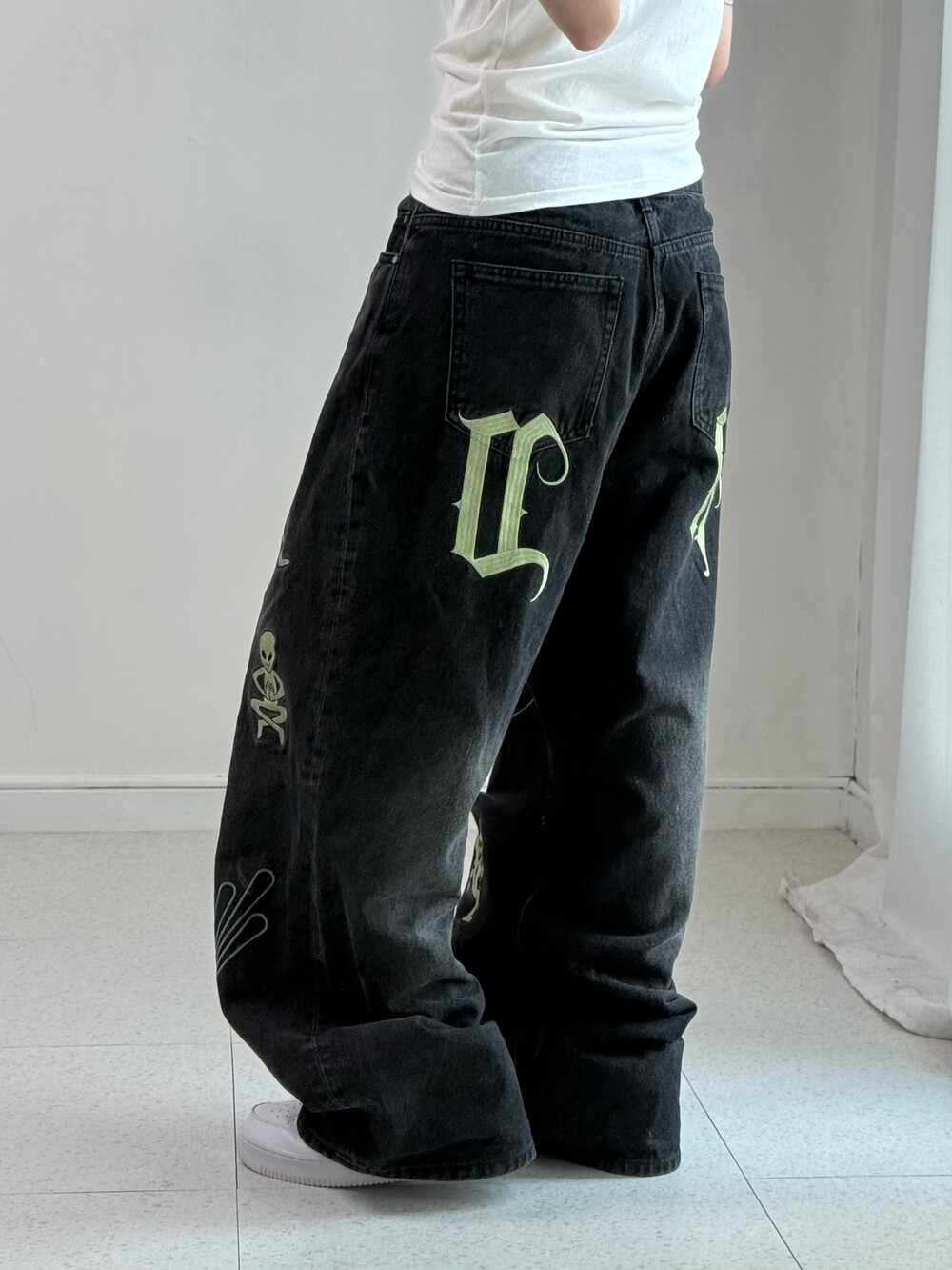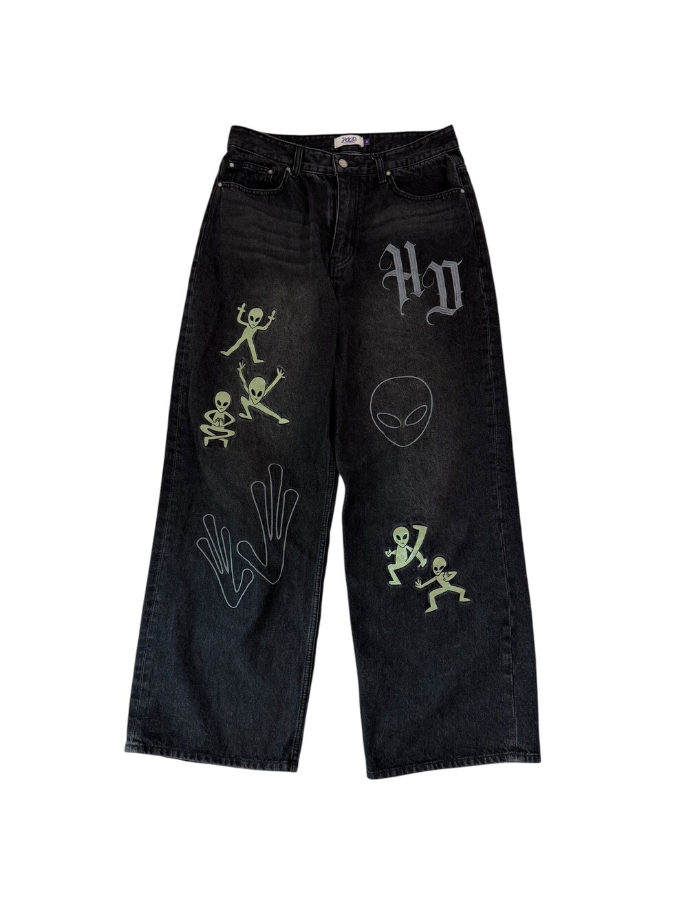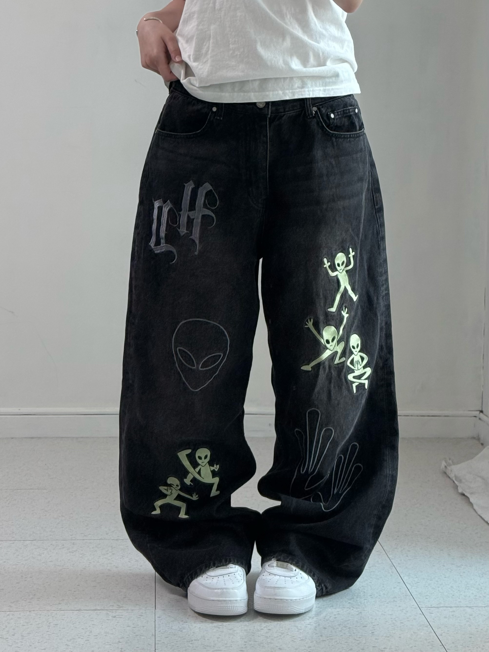 •후드후드의 에일리언 멀티 자수 데님팬츠 입니다. 포인트로 입어주시기 좋은 아이템이에요:)