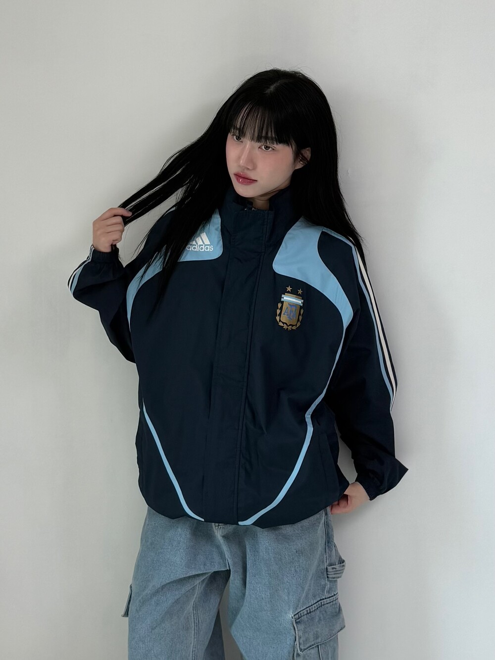 •아디다스 아르헨티나 축구 바람막이에요ㅎ.ㅎ 색감도 네이비와 스카이블루 조합이라 넘 예쁘구 밑단 스트링이 들어가있어 원하시는 기장감으로 연출해주시면 됩니다 !