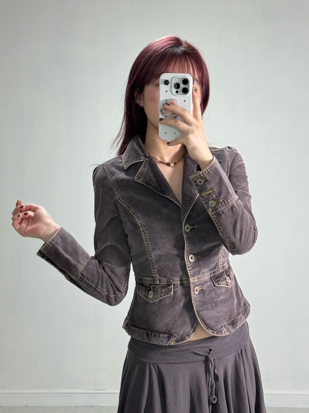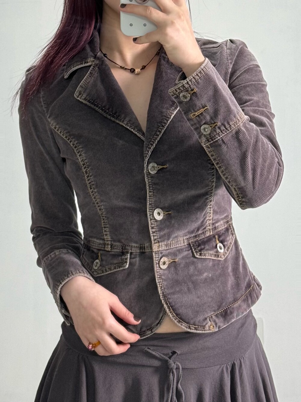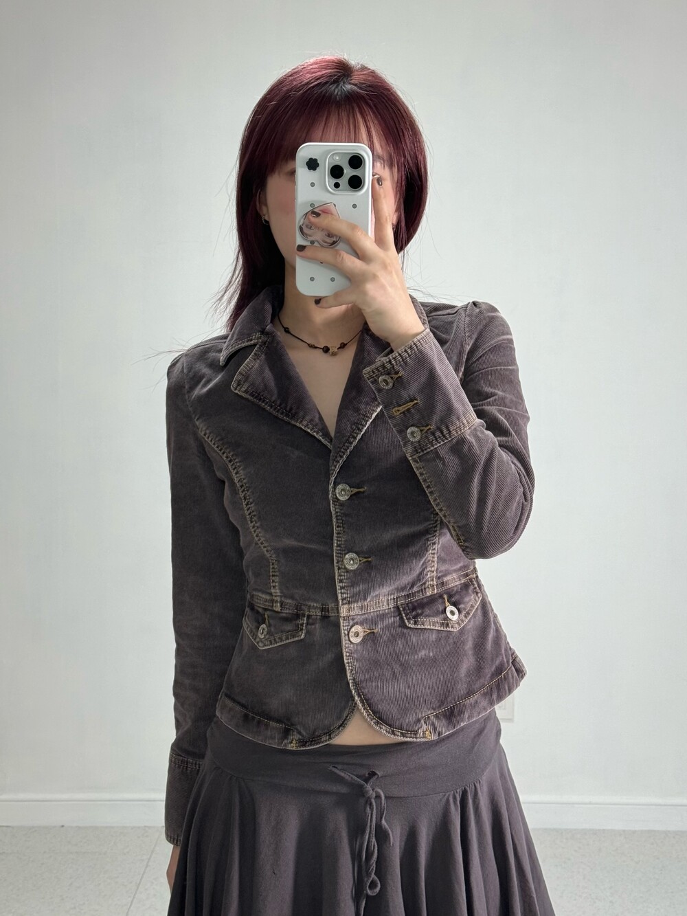 •타미힐피거 인만큼 고급스럽고 핏감마저 멋스러운 코듀로이 자켓이라고 봐주시면 됩니다! 퍼플컬러 몇방울 톡톡 떨어트린 오묘한 뮤트컬러에요ㅎㅎ 허리라인 삭 잡아주는! 날 말라걸로 만들어주는 자켓 ! 🖤