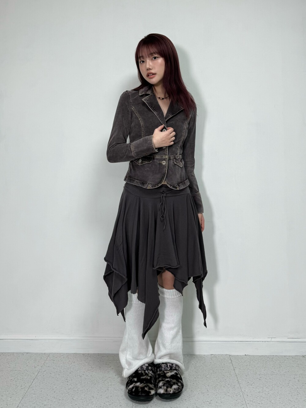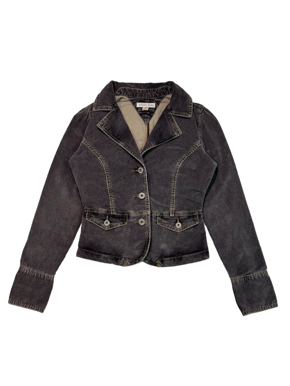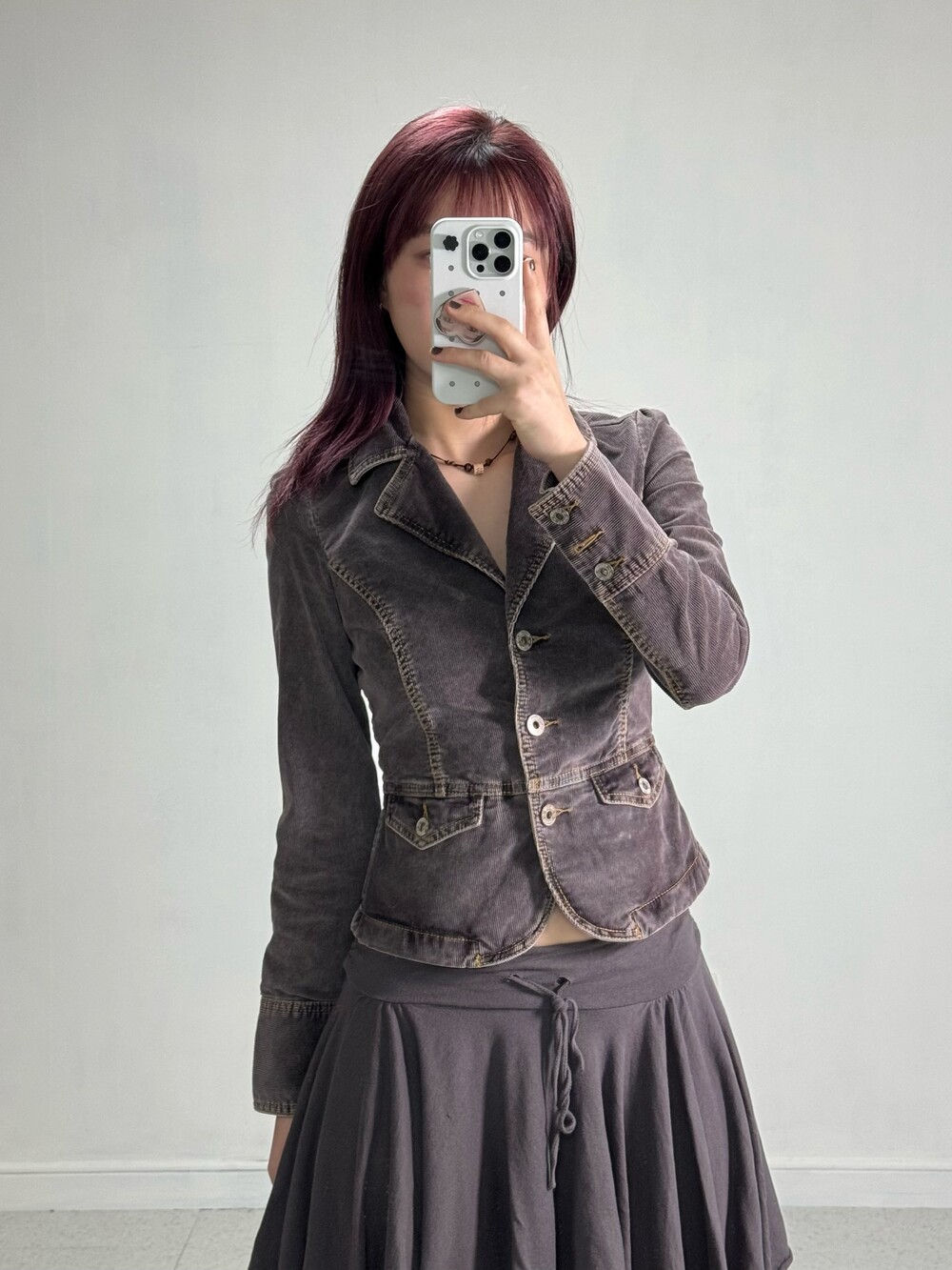 •타미힐피거 인만큼 고급스럽고 핏감마저 멋스러운 코듀로이 자켓이라고 봐주시면 됩니다! 퍼플컬러 몇방울 톡톡 떨어트린 오묘한 뮤트컬러에요ㅎㅎ 허리라인 삭 잡아주는! 날 말라걸로 만들어주는 자켓 ! 🖤