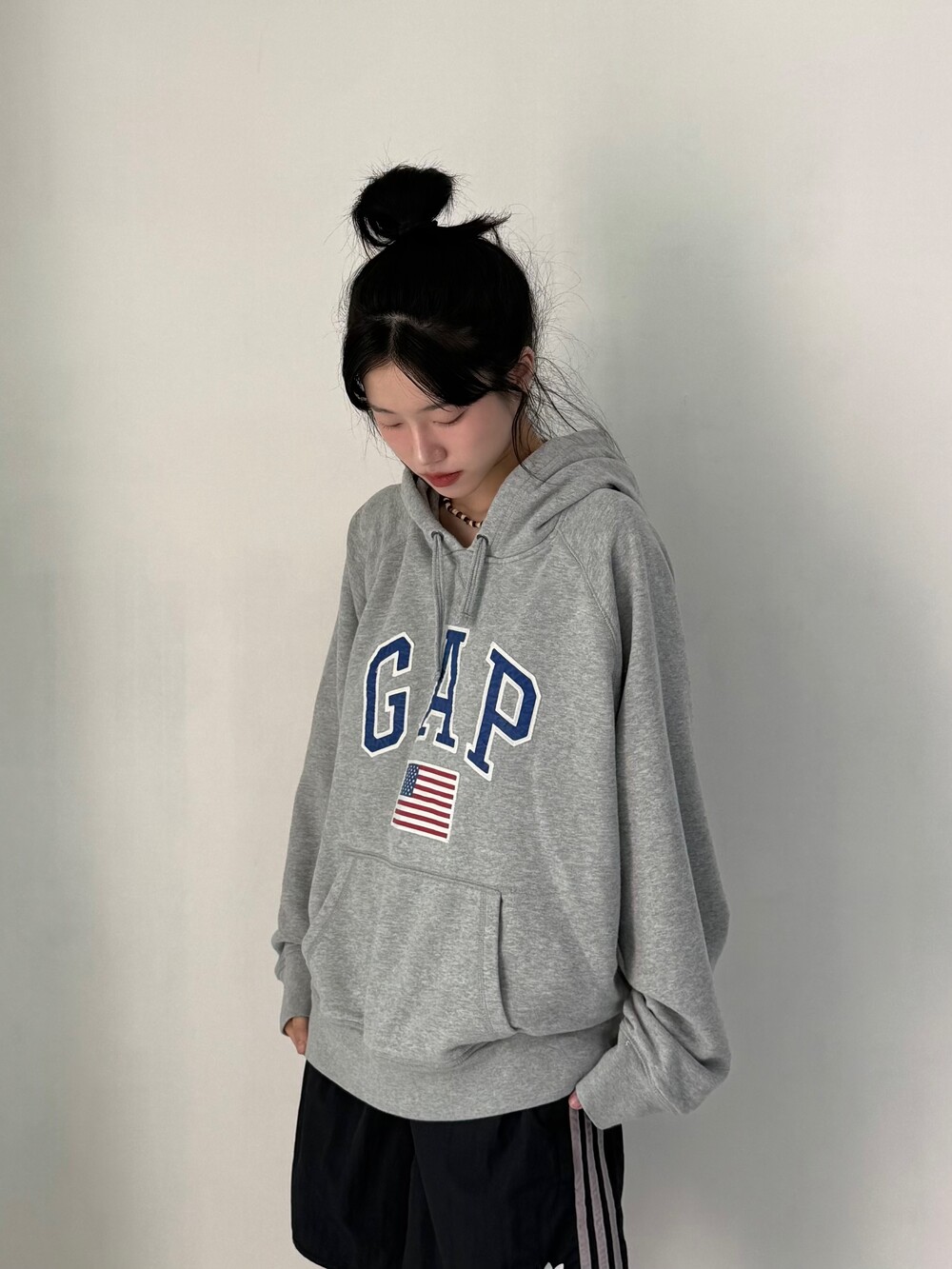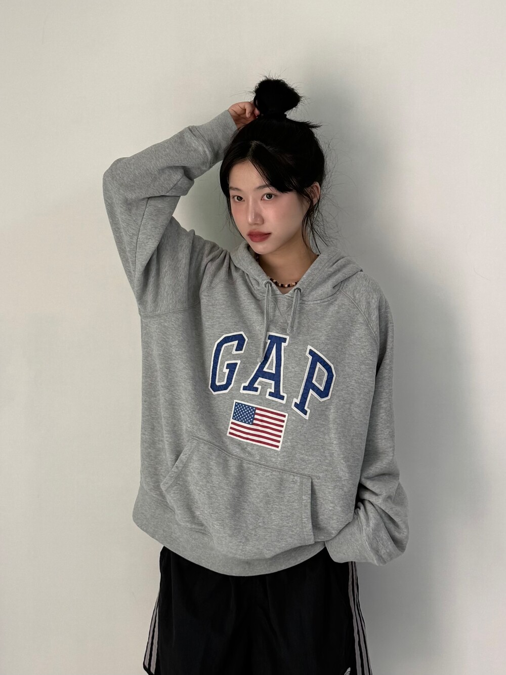 •진짜 너무 예쁜 데일리템 아닌가요?후리추리한 핏에 갭 로고+성조기 패치 디자인.. 이건 무조건 느좋템 등극. 기모x