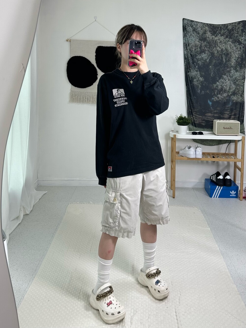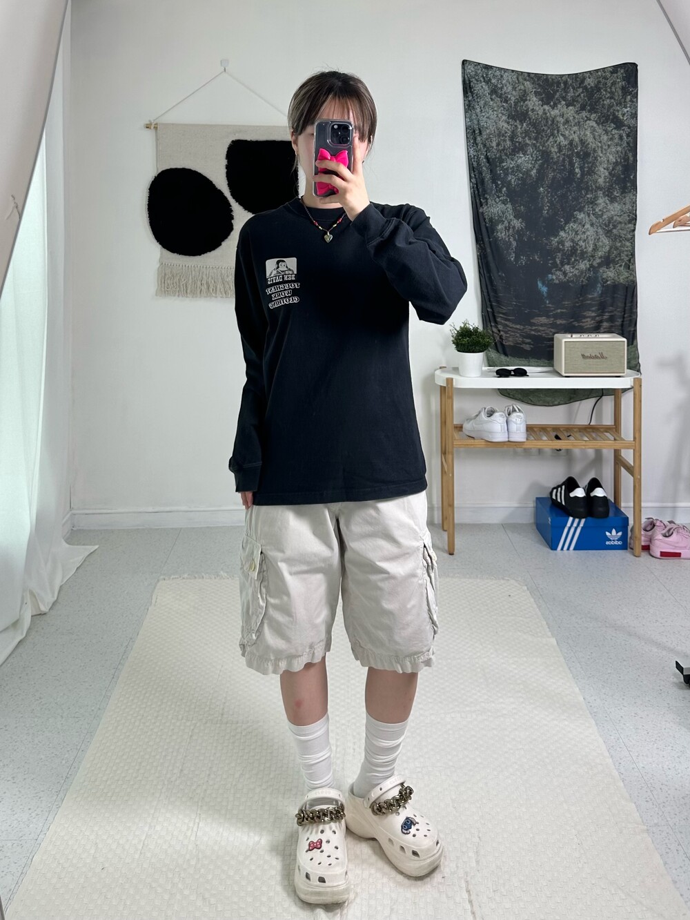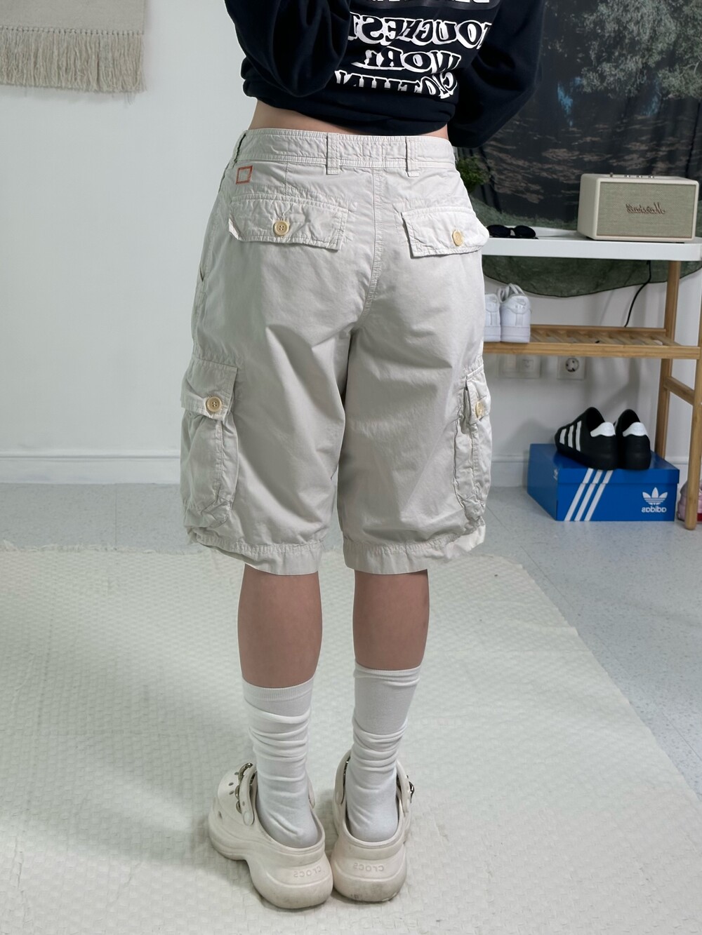 •상태 좋고 핏까지 좋은 아이보리 하프팬츠에요! 여름에도 가을에도 잘어울리는 컬러라 아직 손이 많이갈거같은 제품이라는점! 카고반바지는 가을까지 주구장창 착용가능하시니 절대 놓치지마셔요>,<