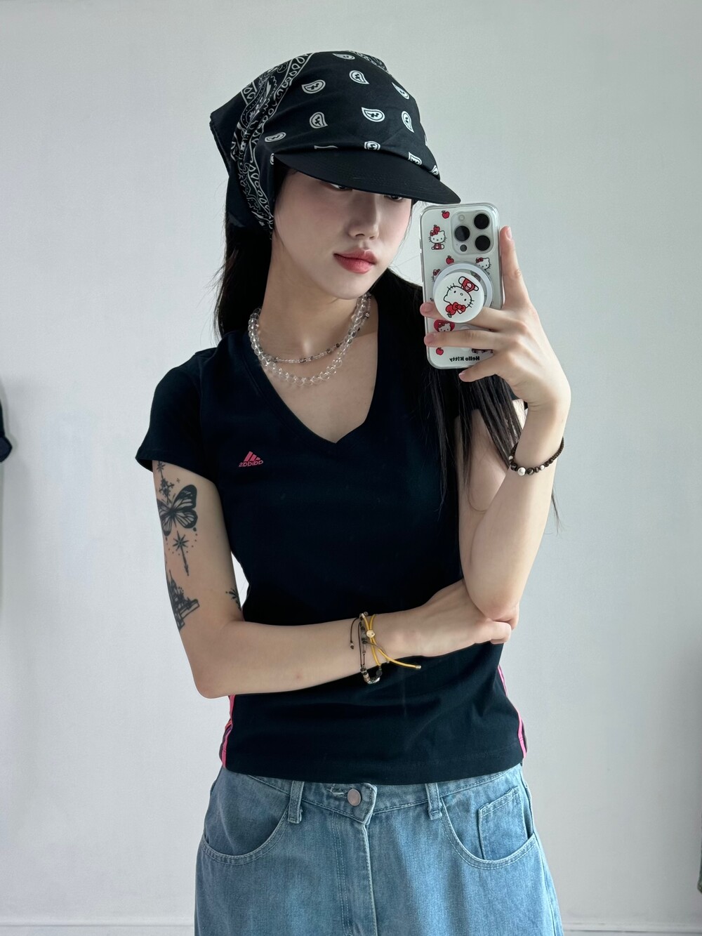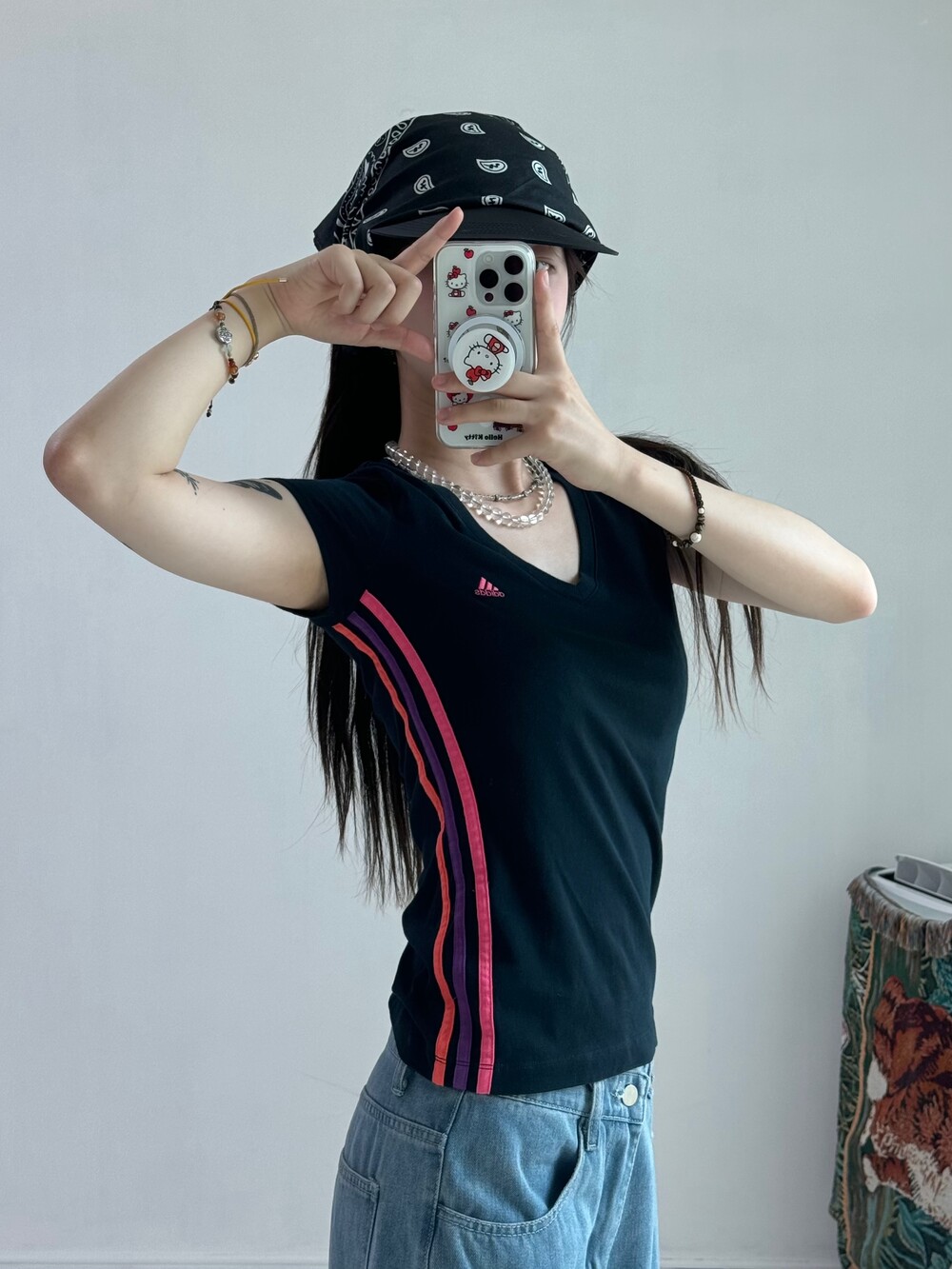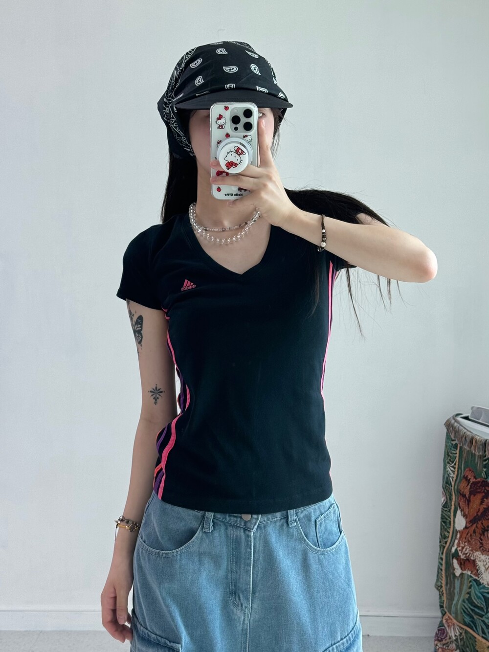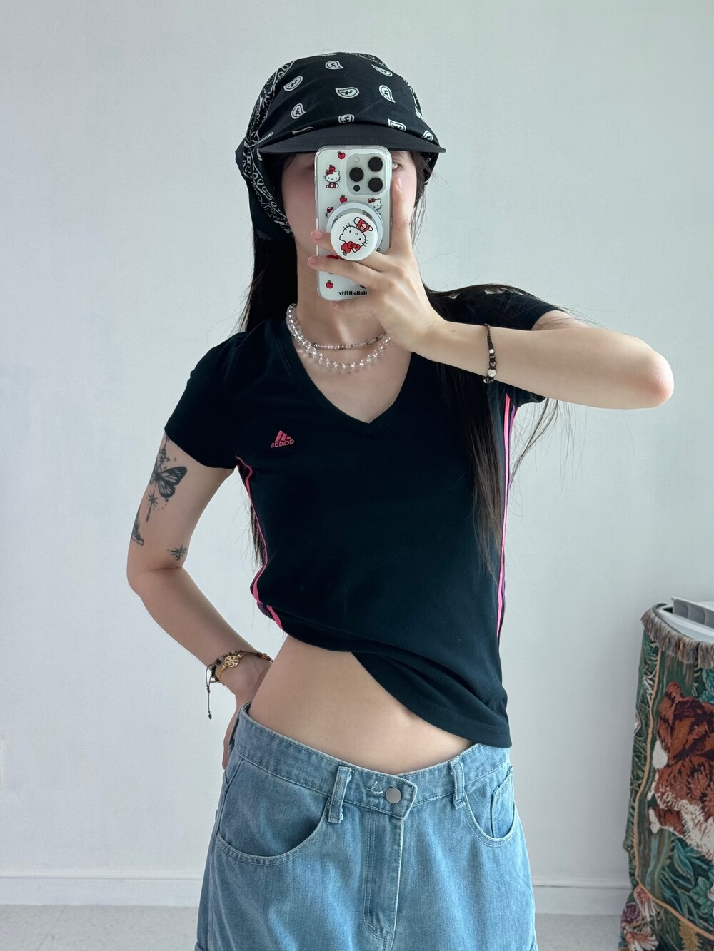 •상체에 슬림하게 떨어지는게 넘 예쁜 아디다스 블랙핑크 반팔>,<!!! 살짝 크롭느낌으로 입어주셔도 넘 예뻐요 ㅎㅎ