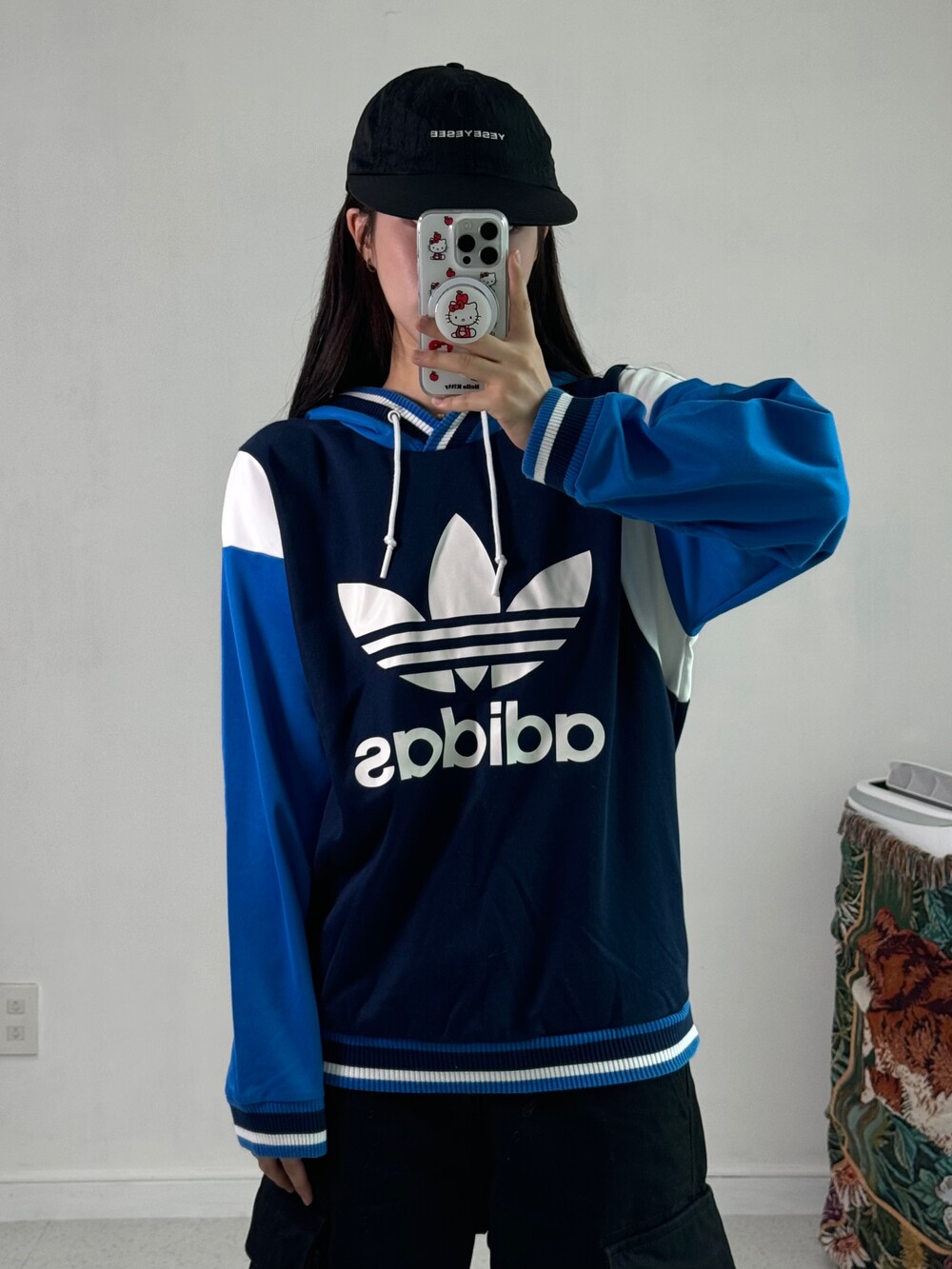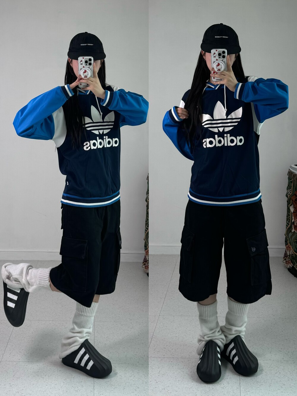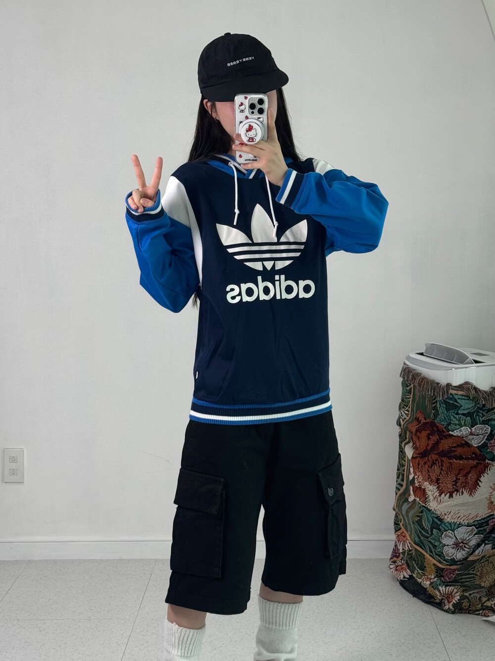 •져지원단의 아디 올드스쿨 후디😎 아방한 핏감에 시원하면서 귀여운 컬러조합이 제 마음에 쏙 들었어요🖤 흔하지않은 디자인이라 더 소장가치 업, 소장욕구 뿜뿜스