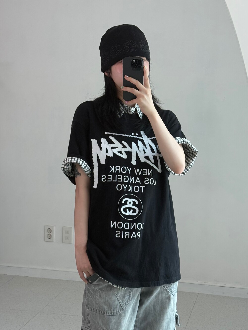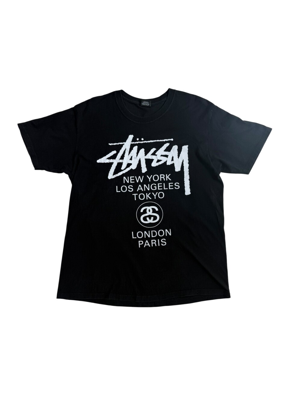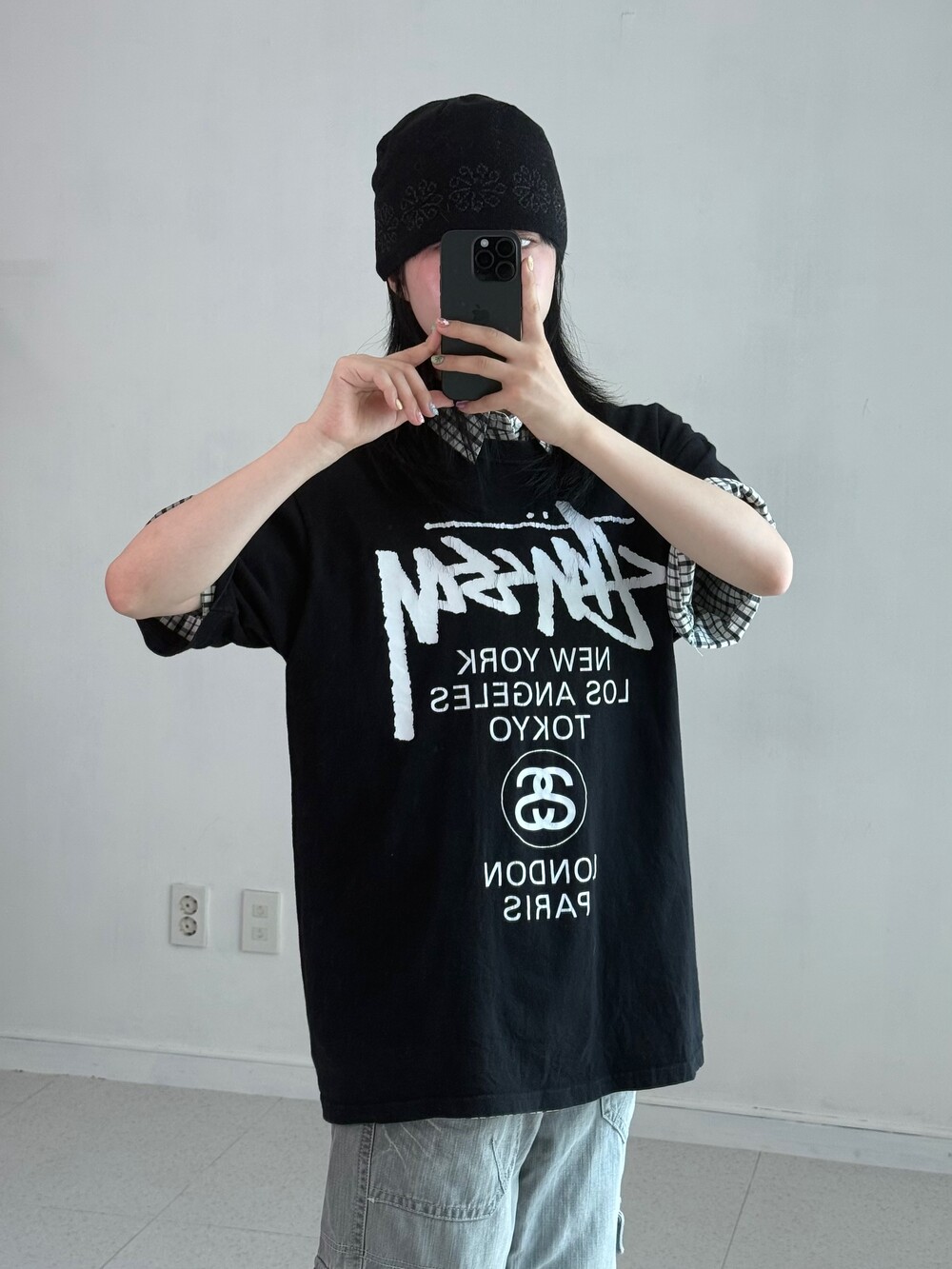 •스투시 월드투어 반팔티셔츠 입니다. 블랙 컬러라 휘뚤마뚤 데일리로 입어주세요!:)