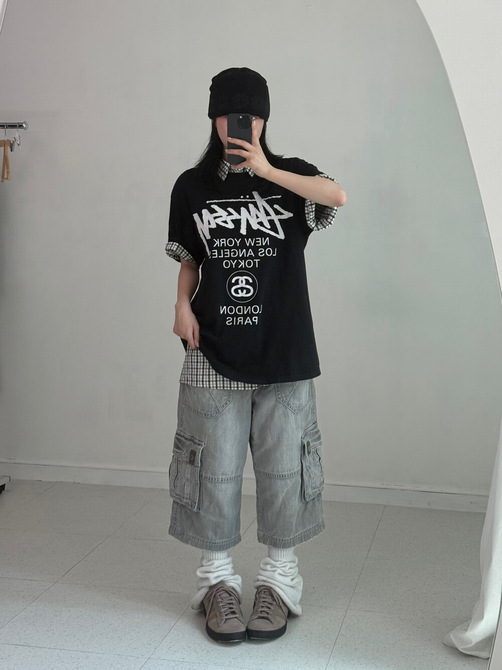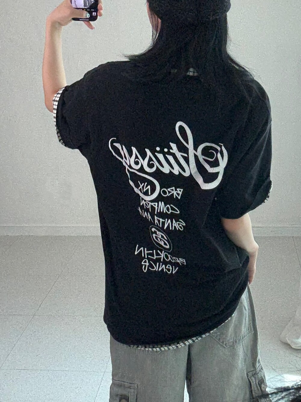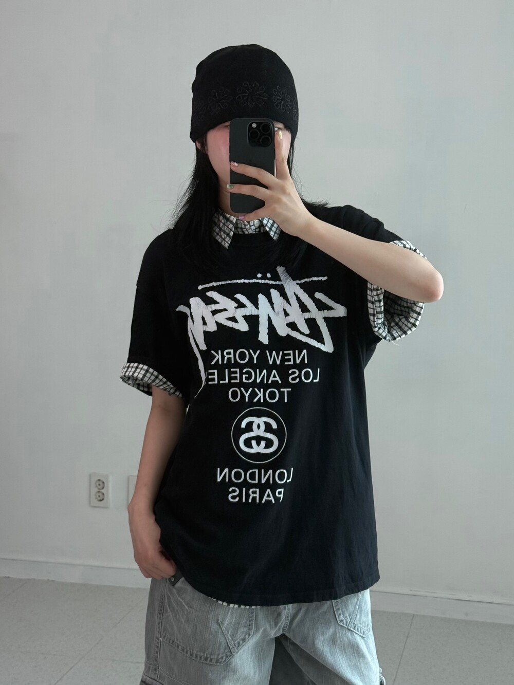 •스투시 월드투어 반팔티셔츠 입니다. 블랙 컬러라 휘뚤마뚤 데일리로 입어주세요!:)