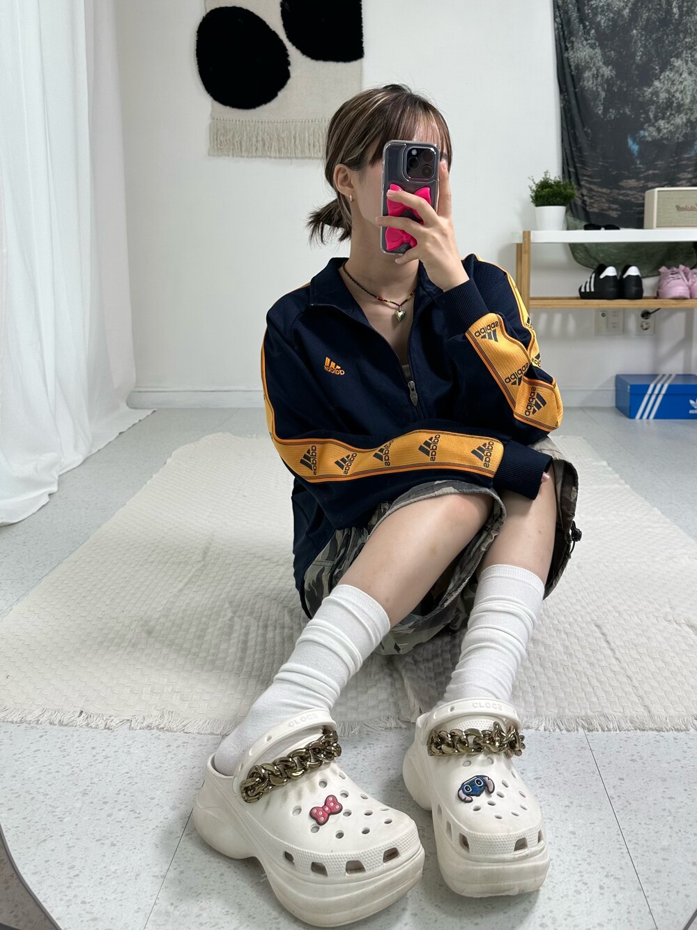 •네이비와 오렌지 컬러 조합이 정말 사랑스러운 져지에요<3 사이즈가 루즈하고 살짝 오버핏이 진짜 짜증나게 귀여움~~ 그쵸ㅜ 오나전 강추 져지 입니다요..