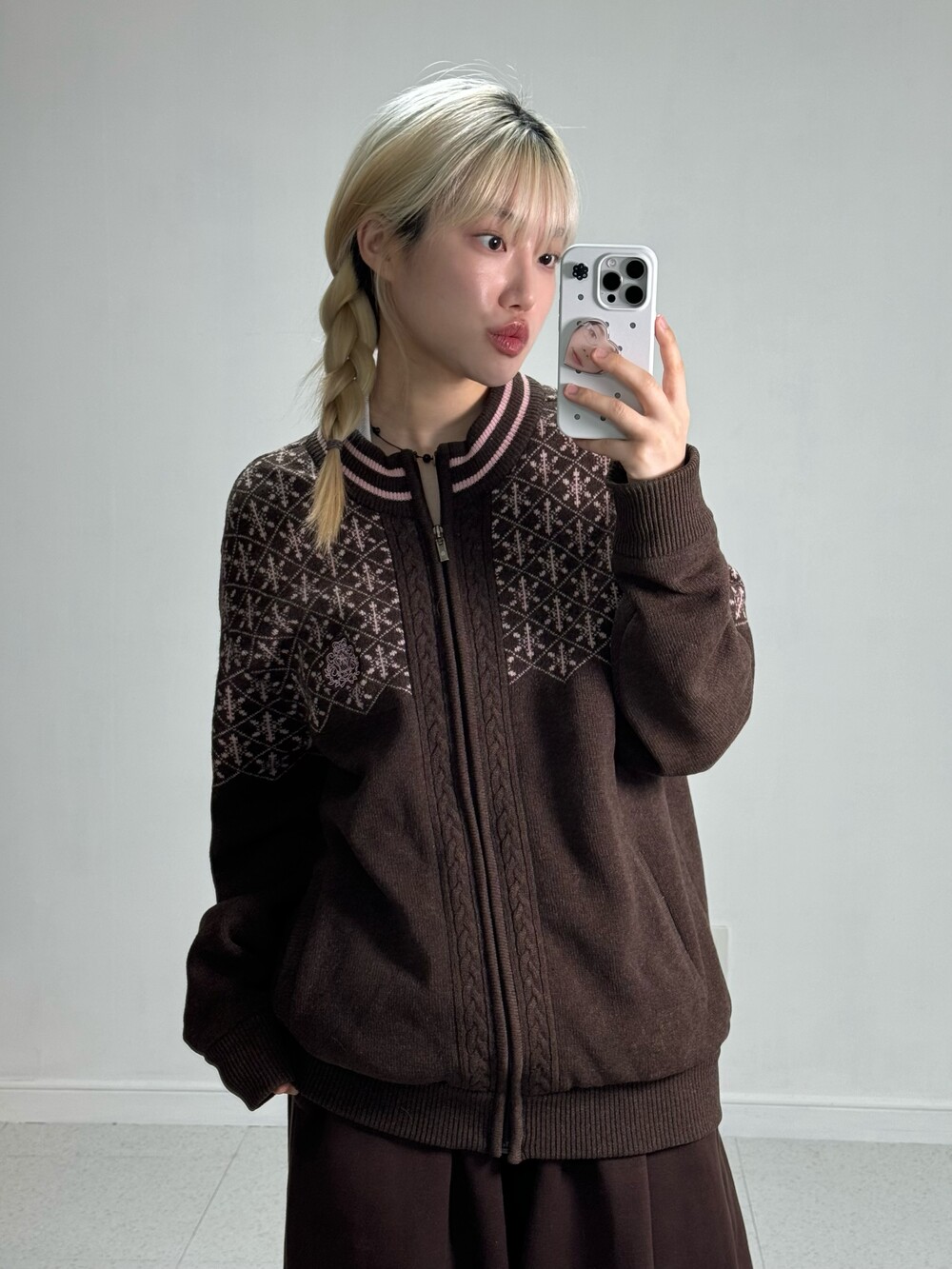 •보자마자 반해서 후다닥 데리고 온 핑크브라운 니트 집업이랍니다! 지금은 안에 껴입어주구 봄에는 단독으로 착용해주시기 좋은 정말 사랑스러운 아우터에요 ㅎㅎ 사이즈도 44-66까지 널널하게 착용하시기 좋은아이라 강강추!