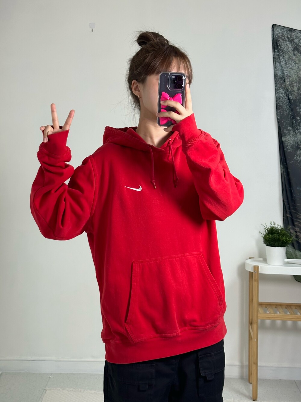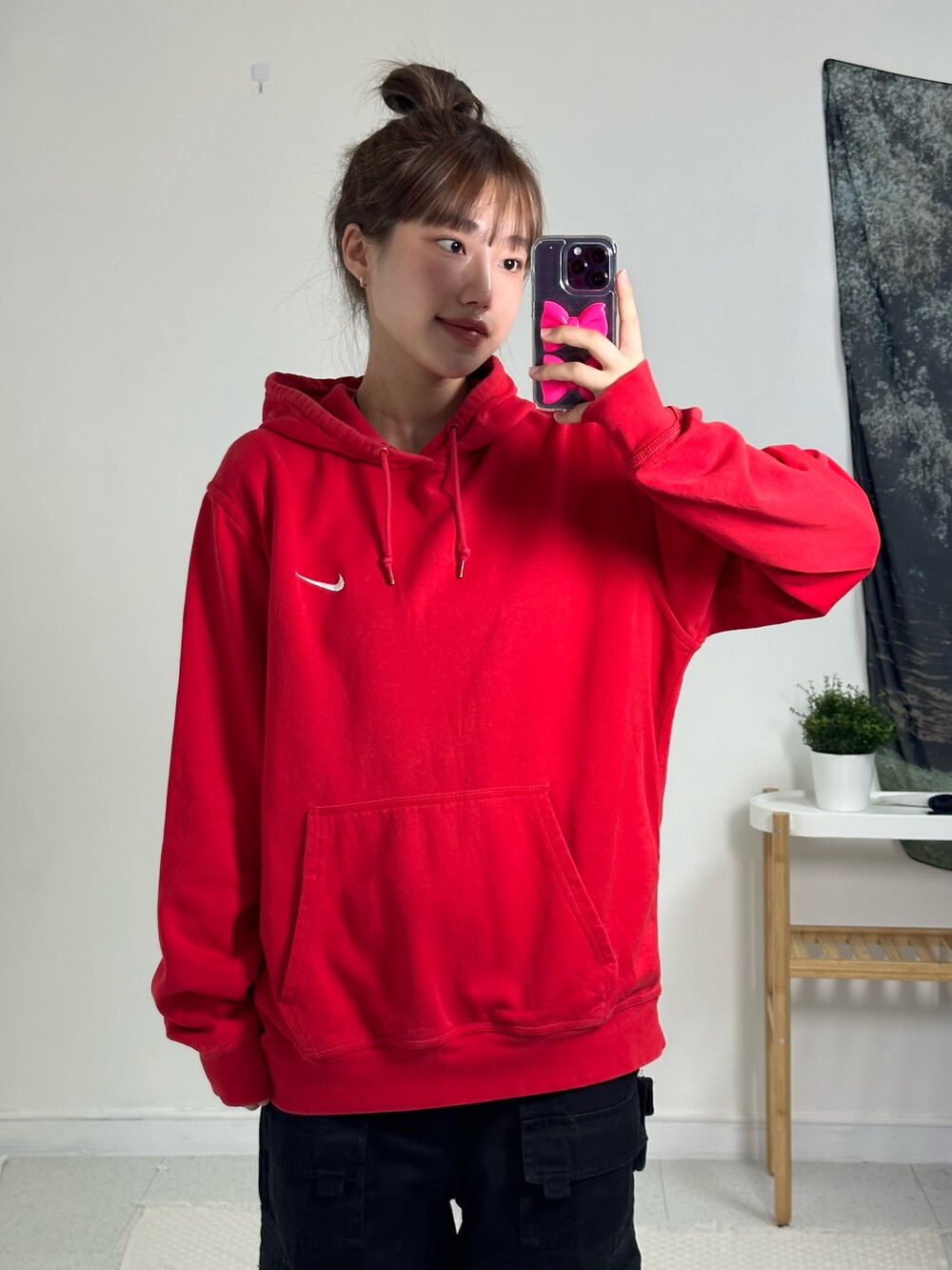 •완전 루즈 아방방한 핏의 나이키 후드티-깔끔하게 스우시 포인트가 들어가 있고 쨍한 레드 컬러감이 넘 예뿌죠ㅎㅎ 카고반바지랑 같이 입어주셔도 굿 입니다?