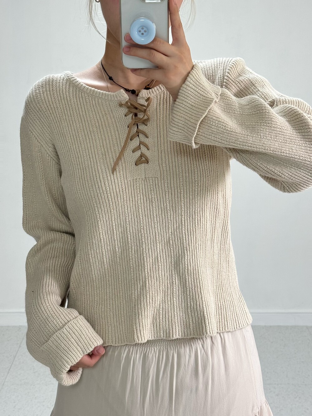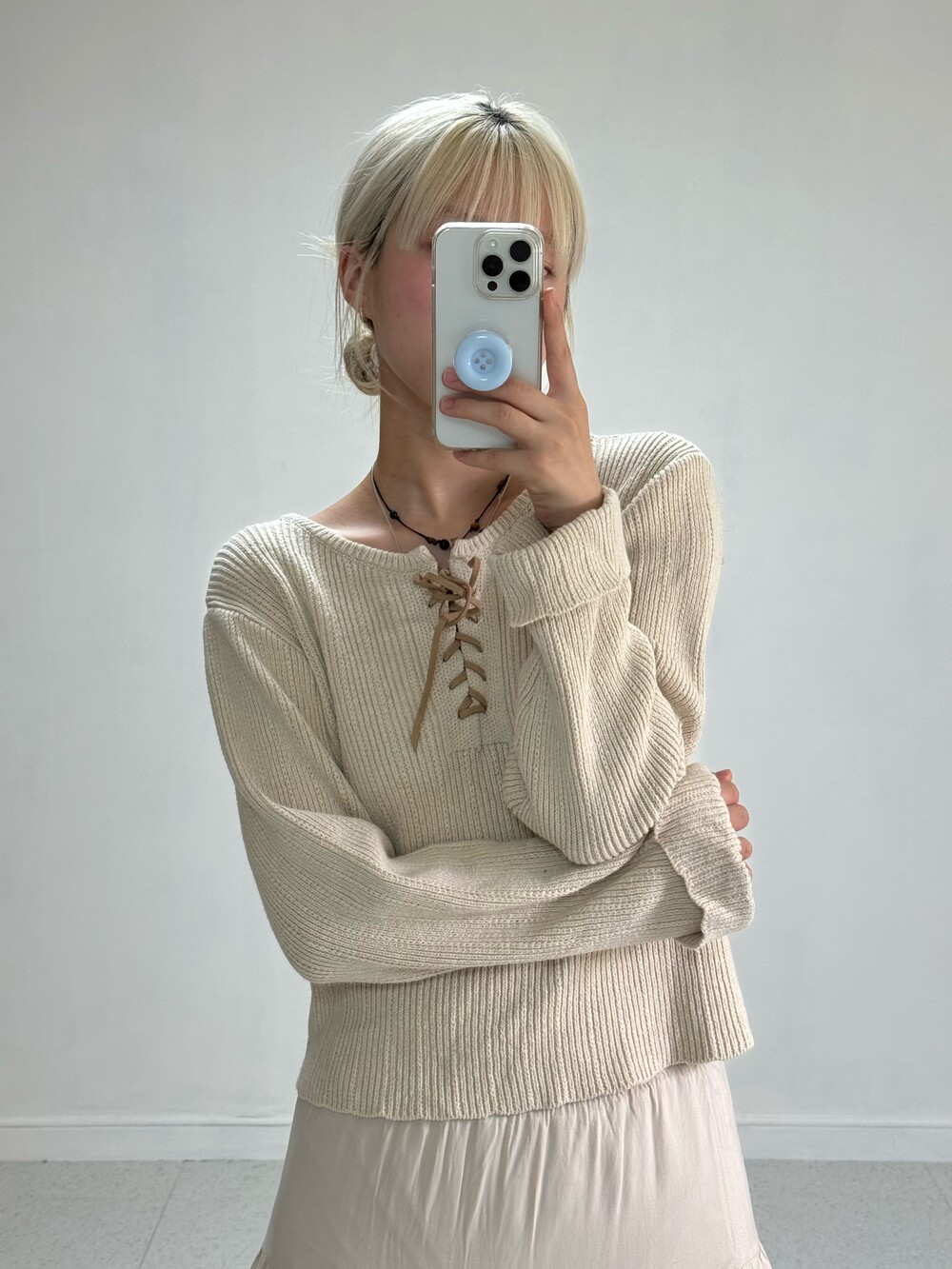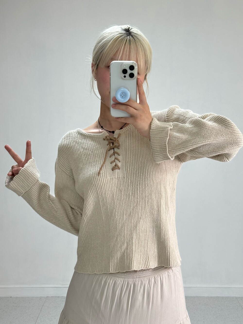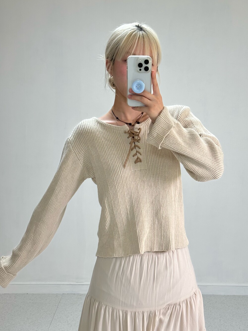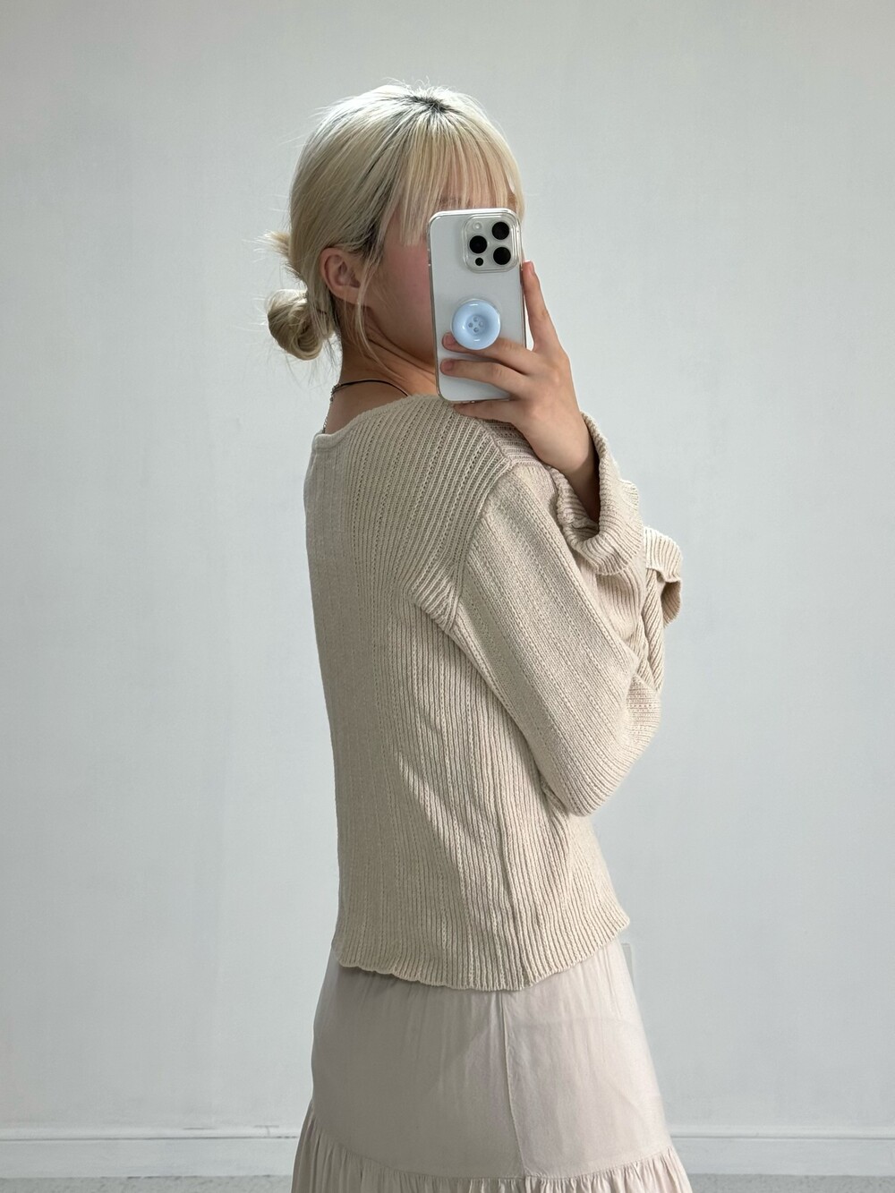 •여리여리한 아일렛 크롭 니트에요! 크롭이지만 상대적으로 널널한 핏이고 상체를 보완해주며 데일리템으로 마구 입어주기 좋습니다ㅎㅎ🖤