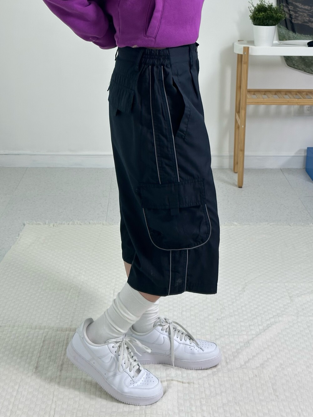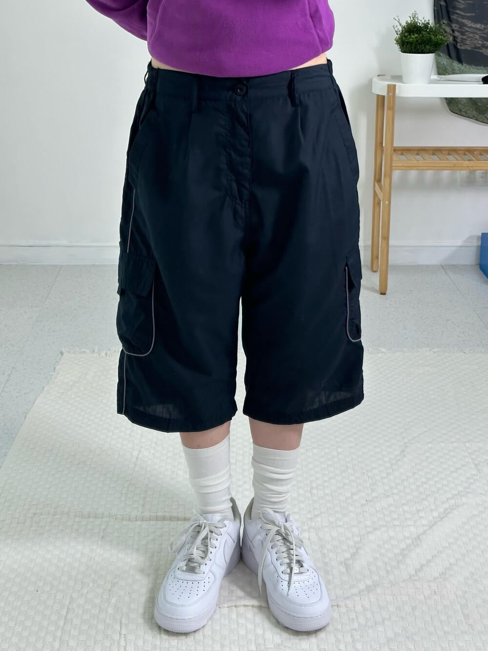 •무오데에 종종 올라오는 하프팬츠인데요.. 핏이 정말 예뻐서 재고 생길때마다 제가 델꼬 온답니다ㅎㅎ 다크한 네이비 컬러라 블랙처럼 데일리로 착용해주기 좋아요. 앞에 살짝 잡힌 핀턱이 넘 예쁘답니다!✌️