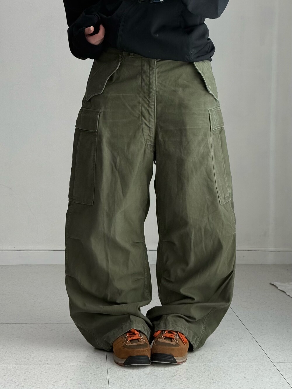 •빈티지 카키 카고팬츠 입니다. 무릎쪽 핀턱 디테일이 잡혀있어 따로 핏을 안잡아줘도 예쁘다는 점🖤