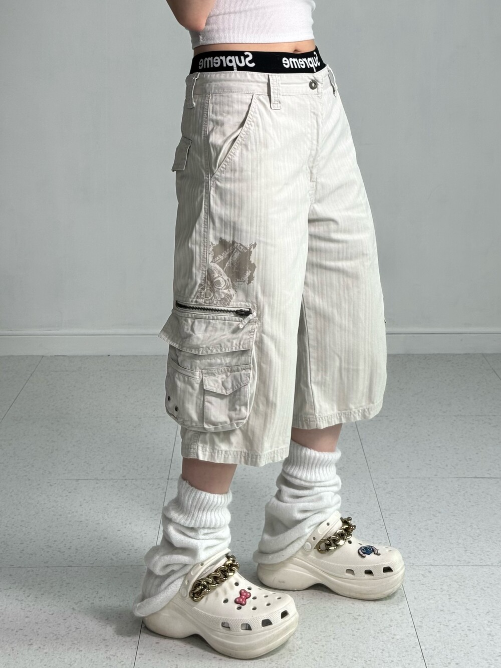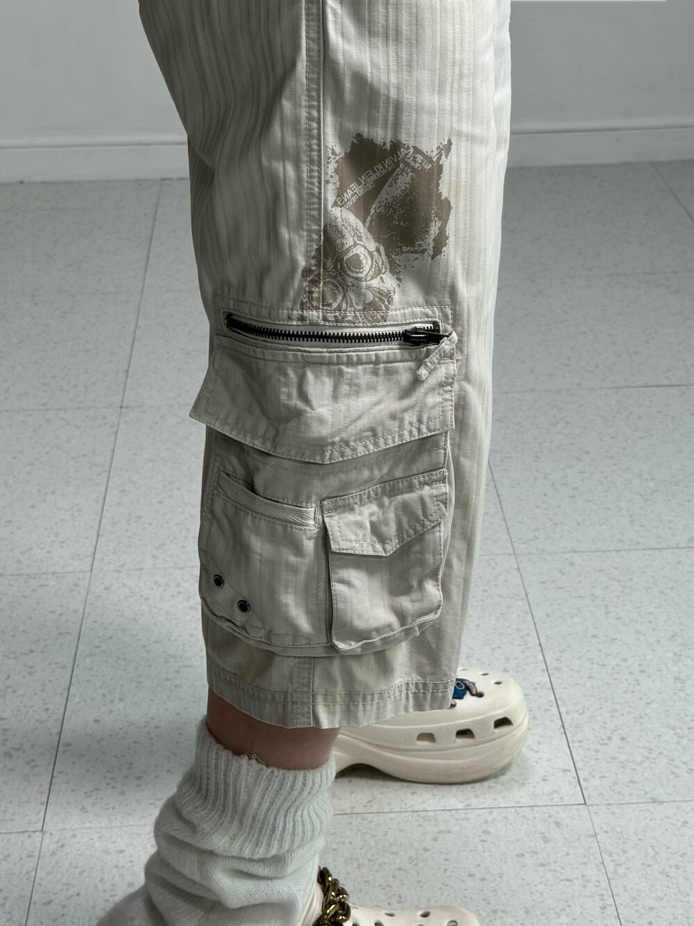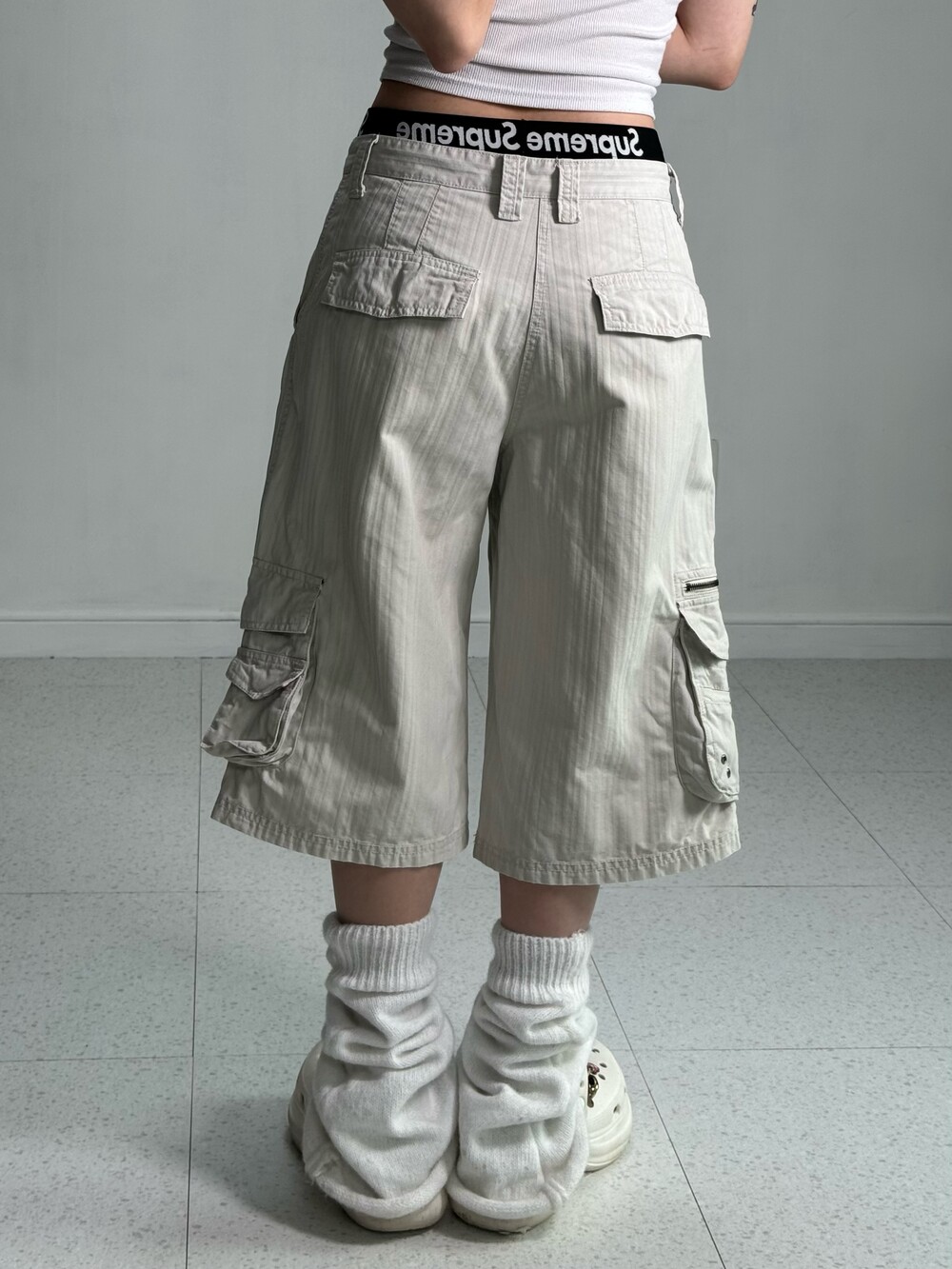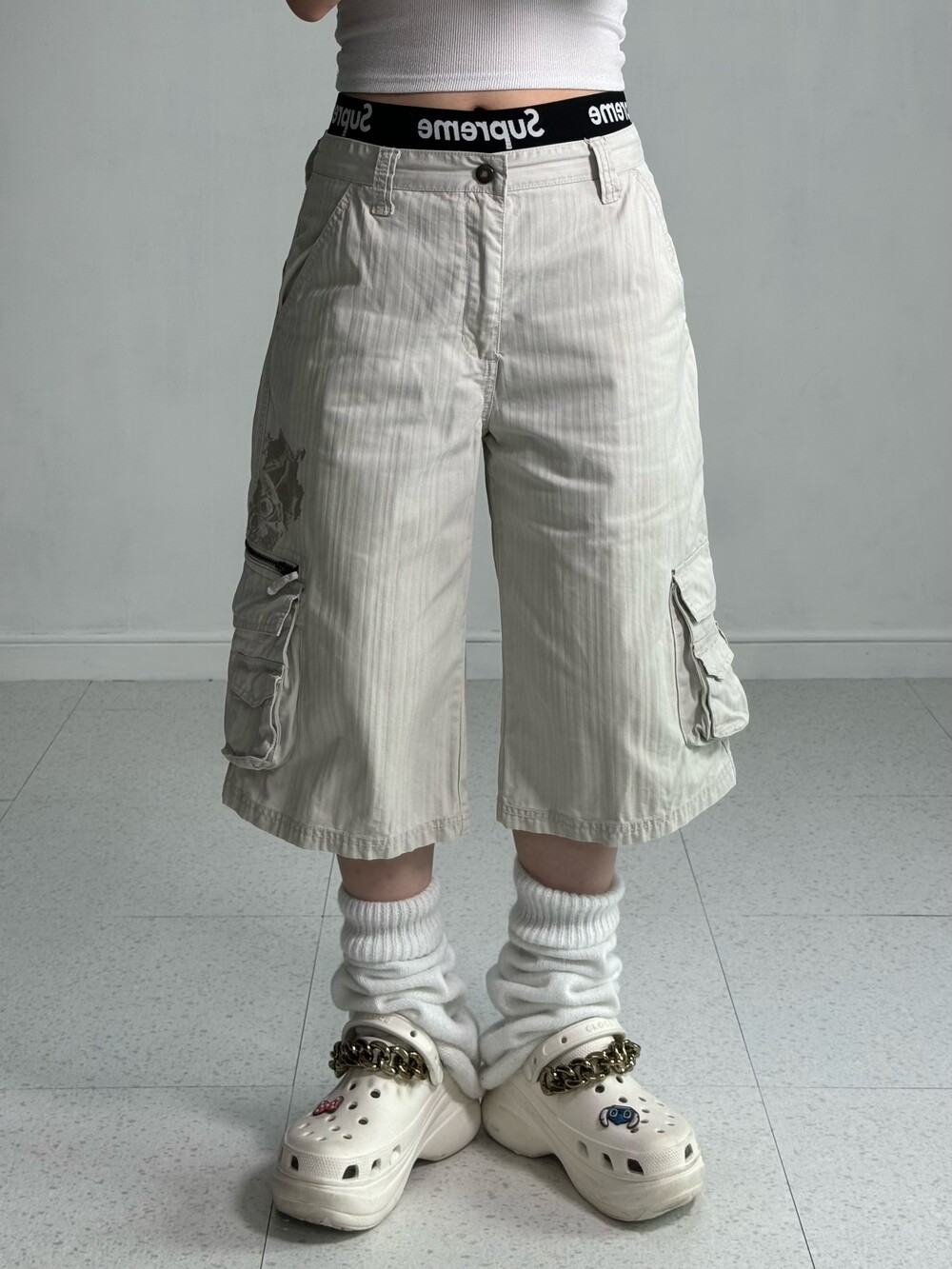 •켈빈클라인 아이보리 컬러의 하프카고 팬츠 랍니다! 적당한 와이드함과 깔끔한 핏이라 부담없이 데일리로 입어주시기 좋아요🖤