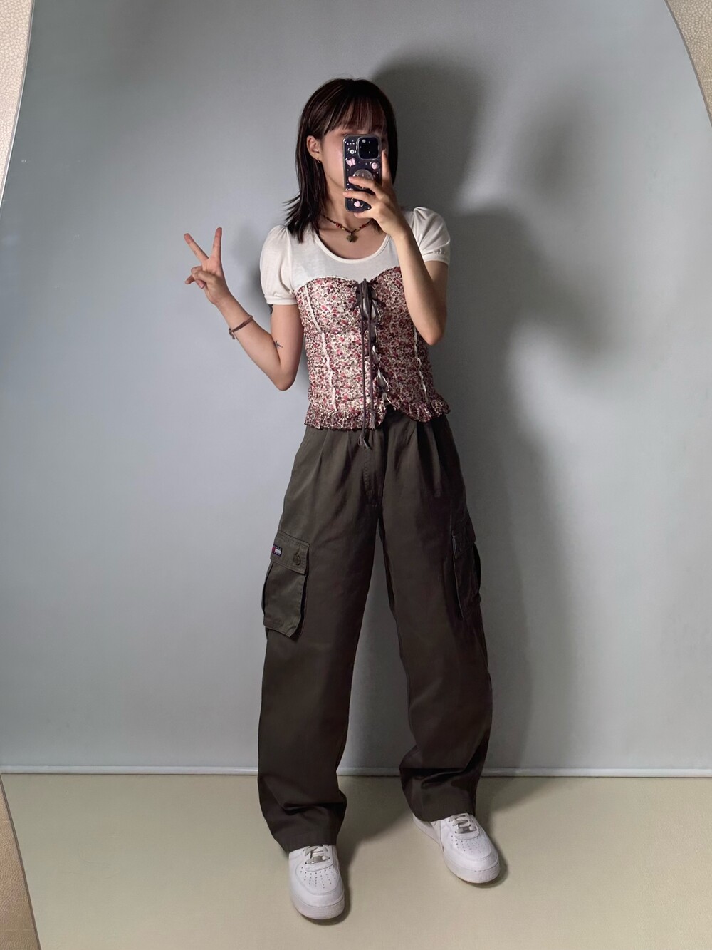 •하이웨스트면서 입었을때 살짝의 아방함도 갖고 있는 팬츠에요! 카키브라운 컬러라 데일리로 딱 💚