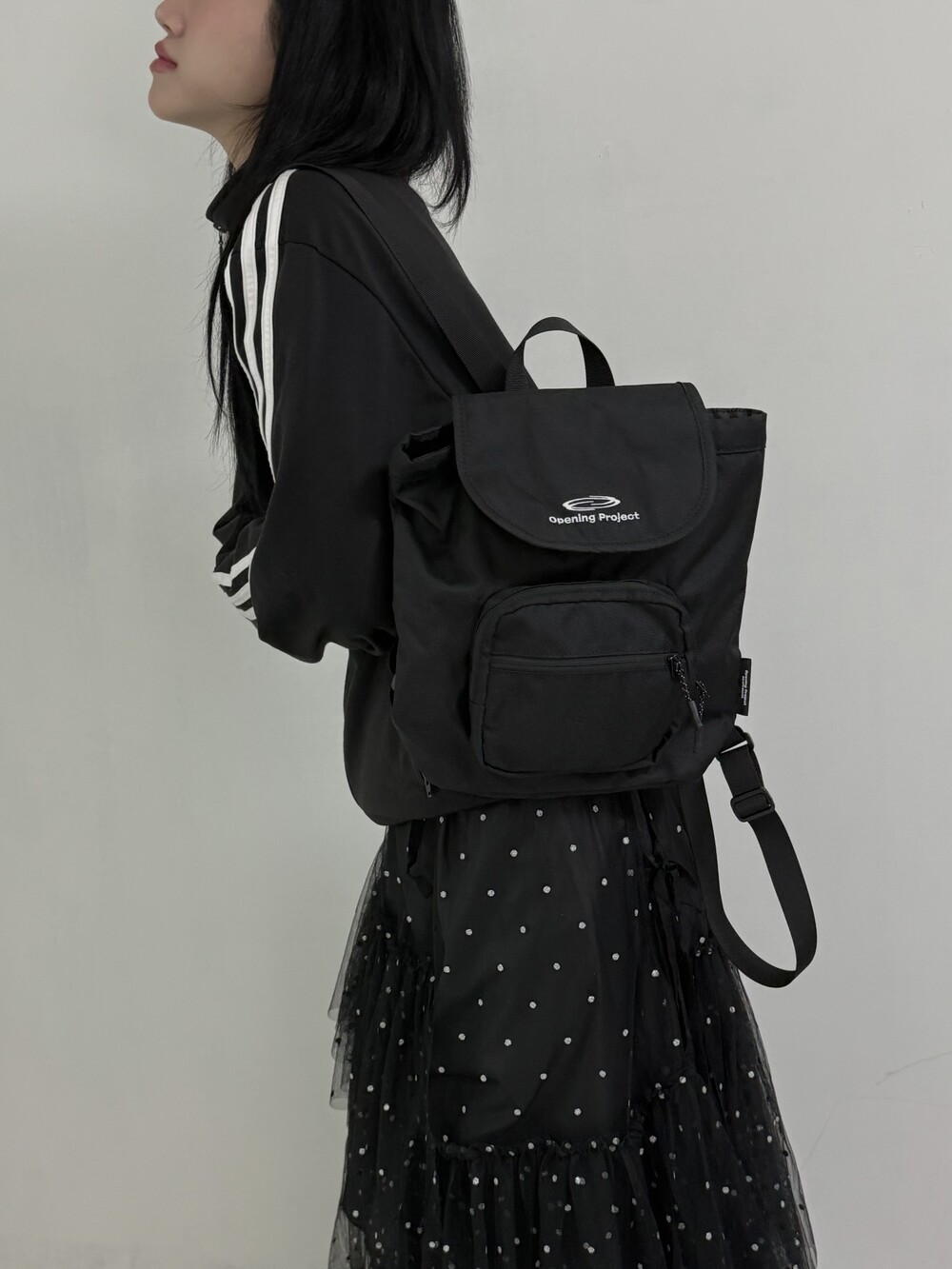 오프닝프로젝트 미니 백팩 입니다! 택 까지 달려있는 새상품인데 촬영땜시 잘랐어요.. 귀요미 대학생과 찰떡콩떡 (정가 10만9천원)