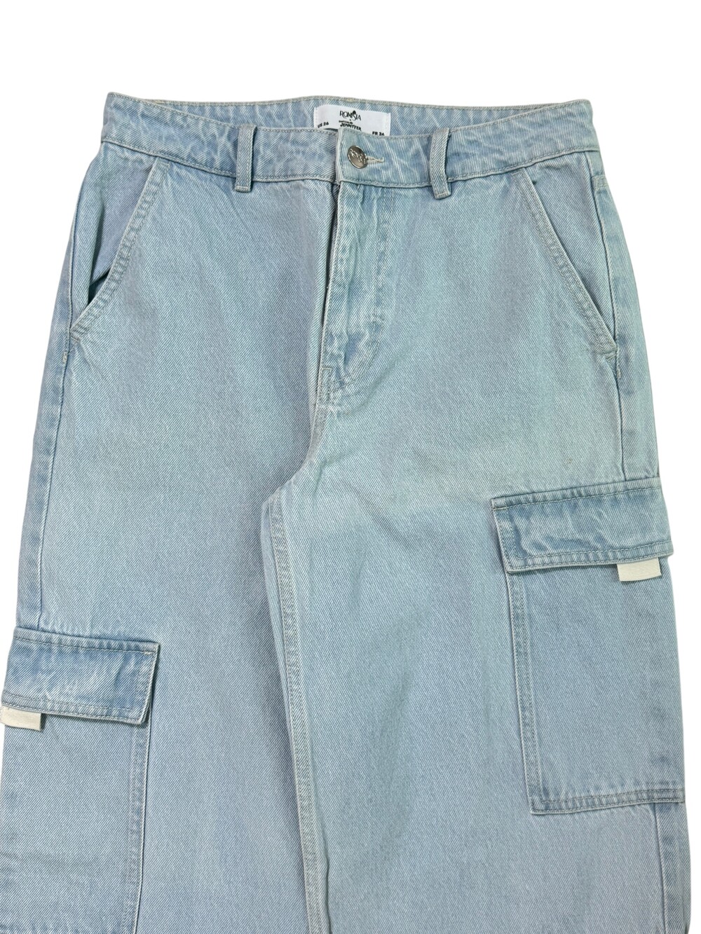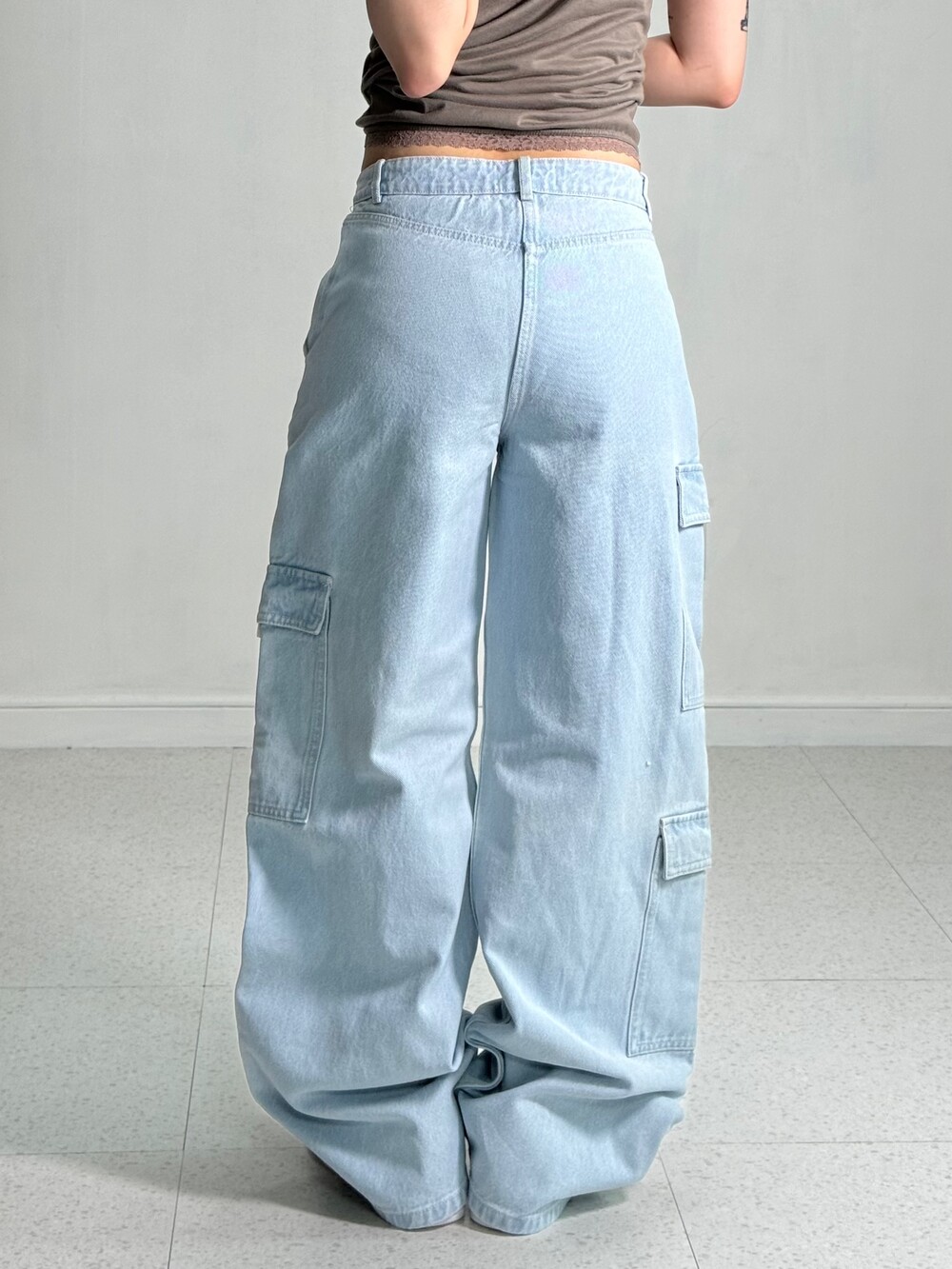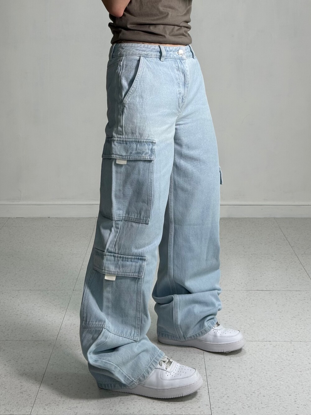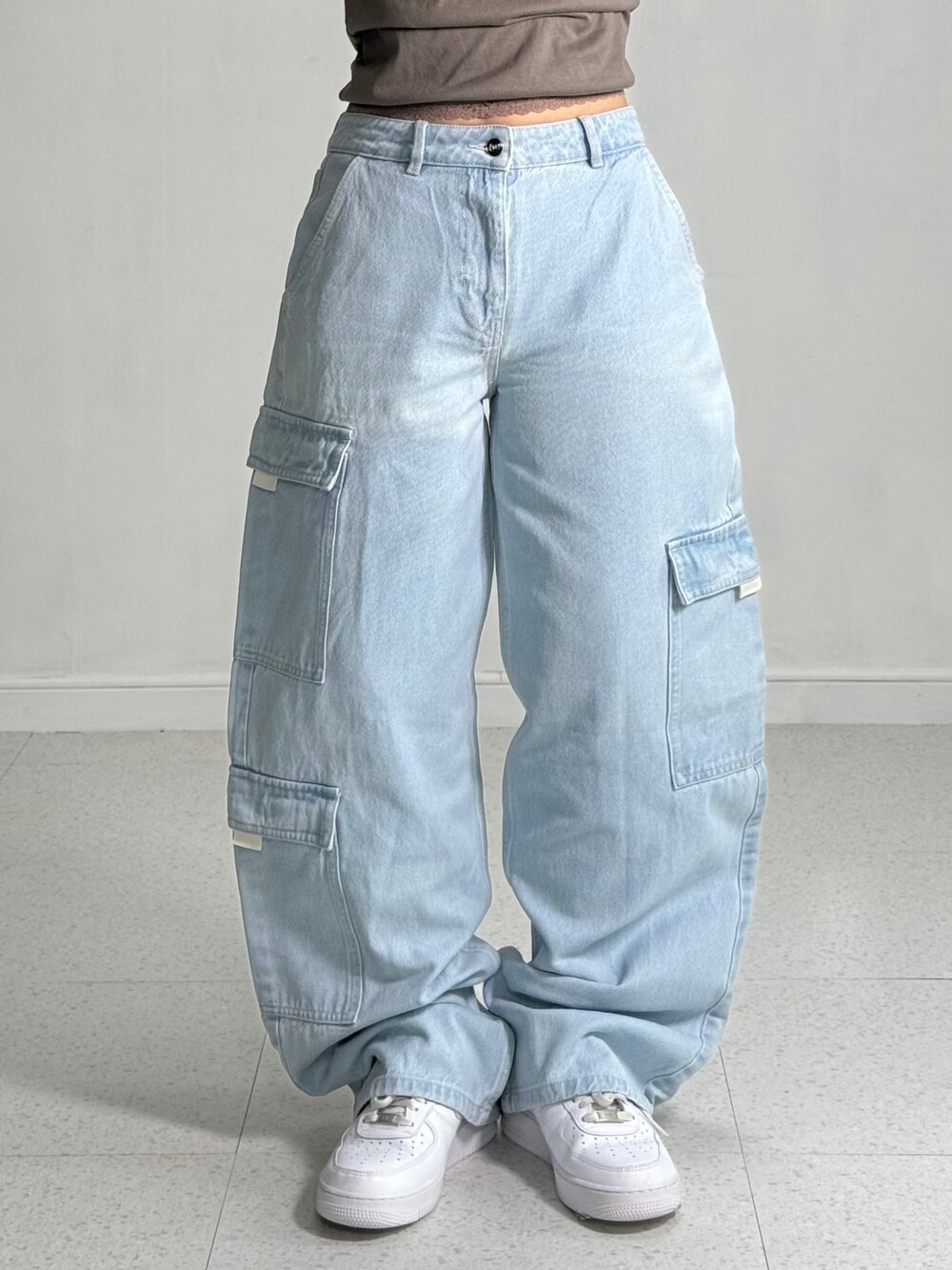 Light denim multi cargo pants