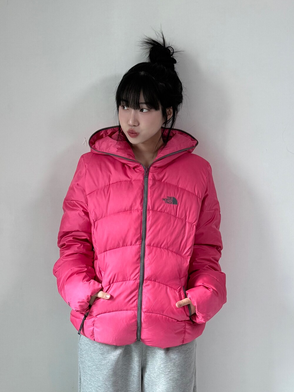 •귀여운 핫핑크 컬러의 노스페이스 구스다운 패딩이에요! 지퍼가 끝까지 올라가는 특징을 가지고 있구요? 밑단이 밴딩처리가 되어있어 자연스레 골반에 걸쳐지는 핏이라 예쁘게 입어주시기 너무 좋은 패딩이에요! 심지어 노페 패딩 요즘 무조건 30-40만원인데.. 9만원이라니 완전 갓성비