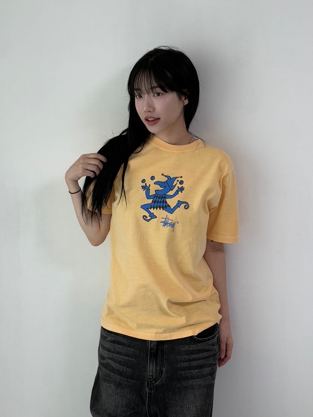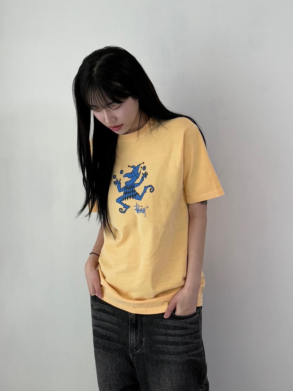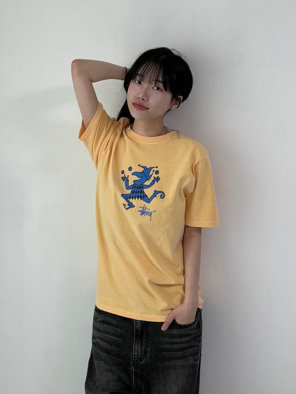 •귀여븐 노랑이 컬러의 스투시 반팔 입니다! 얼굴을 은은하게 밝혀주는 계란 노른자 같은 노랑이라 부담스럽지 않고 어떤 하의와도 매치가 좋아 손이 자주 갈것같아요!