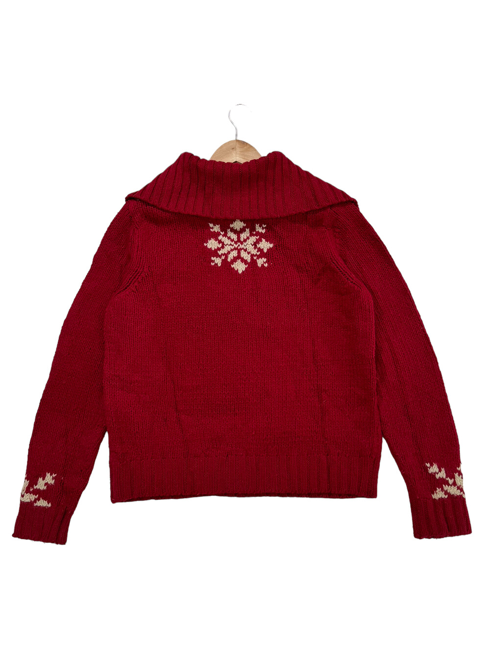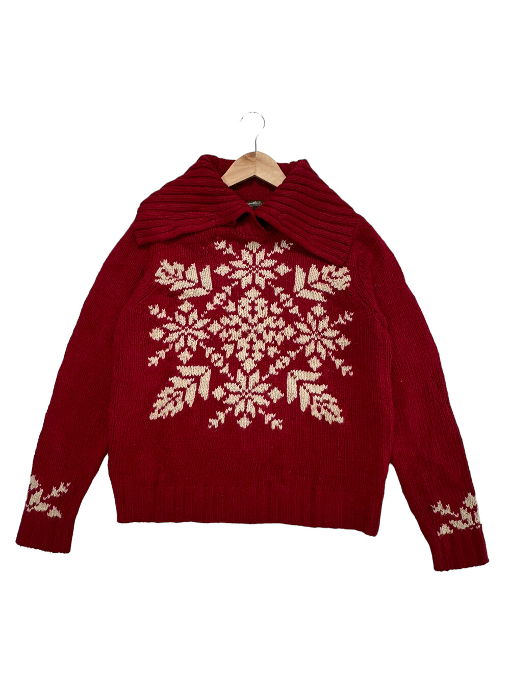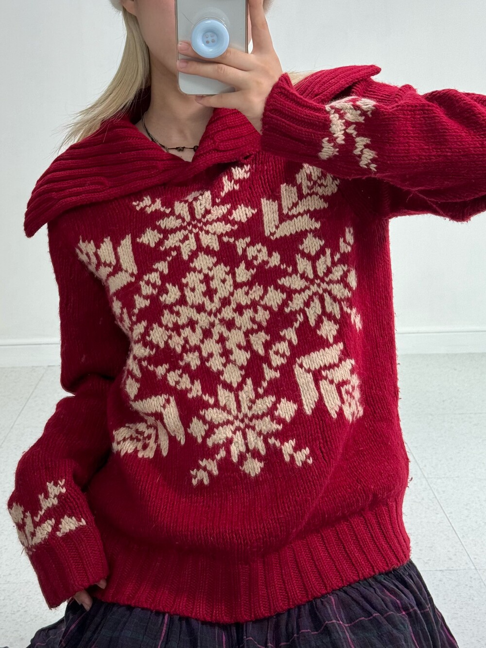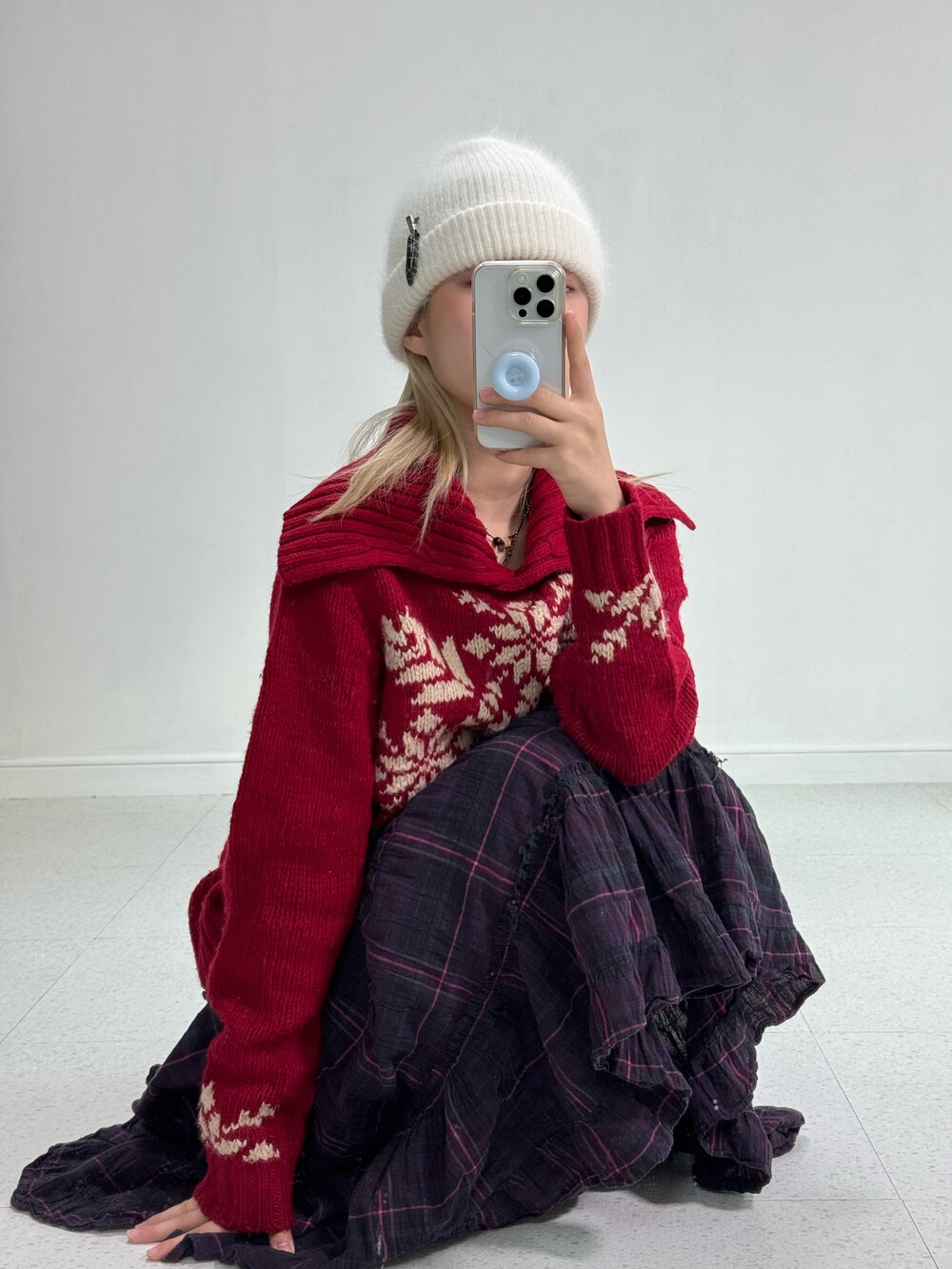 •넥라인이 케이프처럼 귀엽게 떨어지는 아주 매력적인 노르딕 니트에요! 빅눈꽃패턴이 앞에 들어가있고 소매부분도 빽포인트도.. ❤️