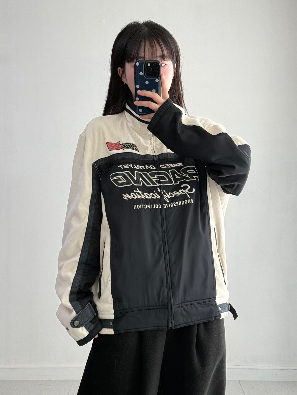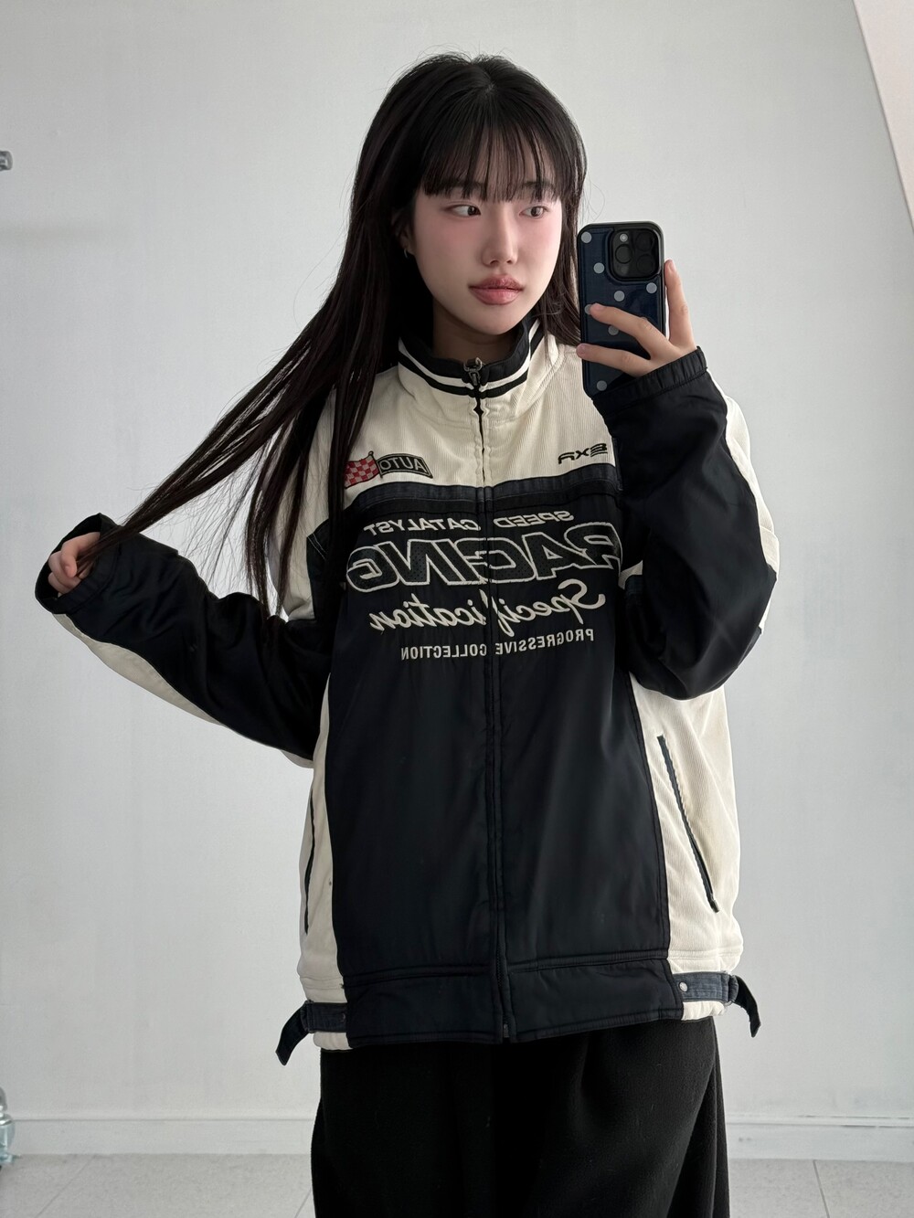 •요즘 과하지 않은 데일리 레이싱 자켓을 찾는게 쉽지 않더라구요. 요놈은 데일리로 입어주셔도 이질감이 전혀 안느껴지는 아이템이에요! 안감은 누빔이라 따뜻하고 과하지 않은 디자인이라 데일리로 즐겨주시기도 좋은 아이템이랍니다:)