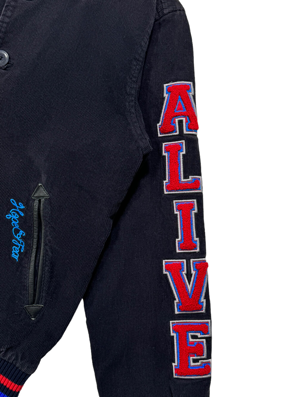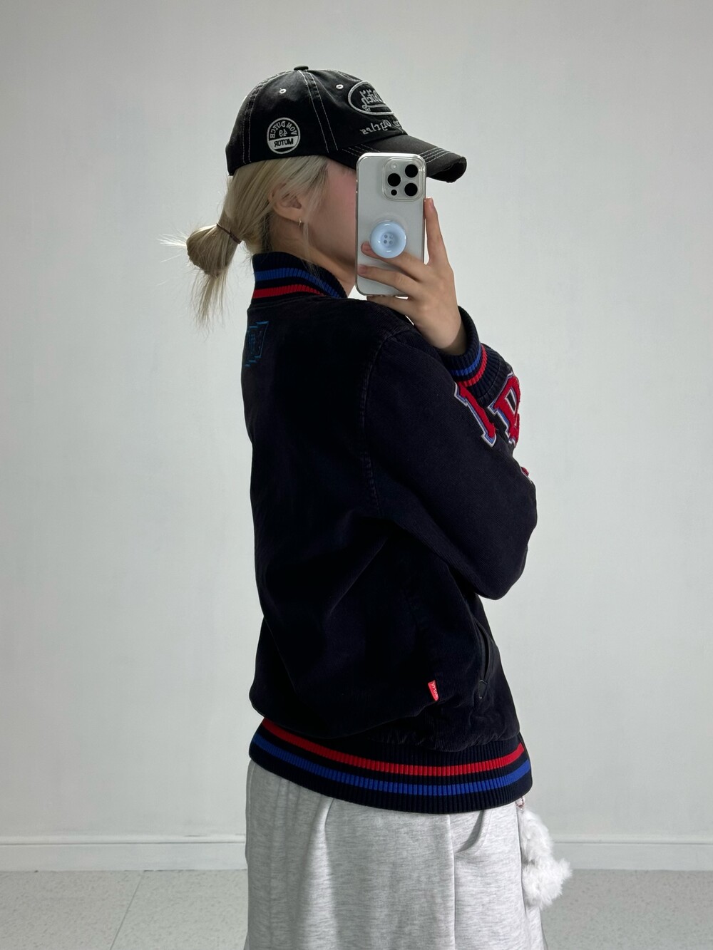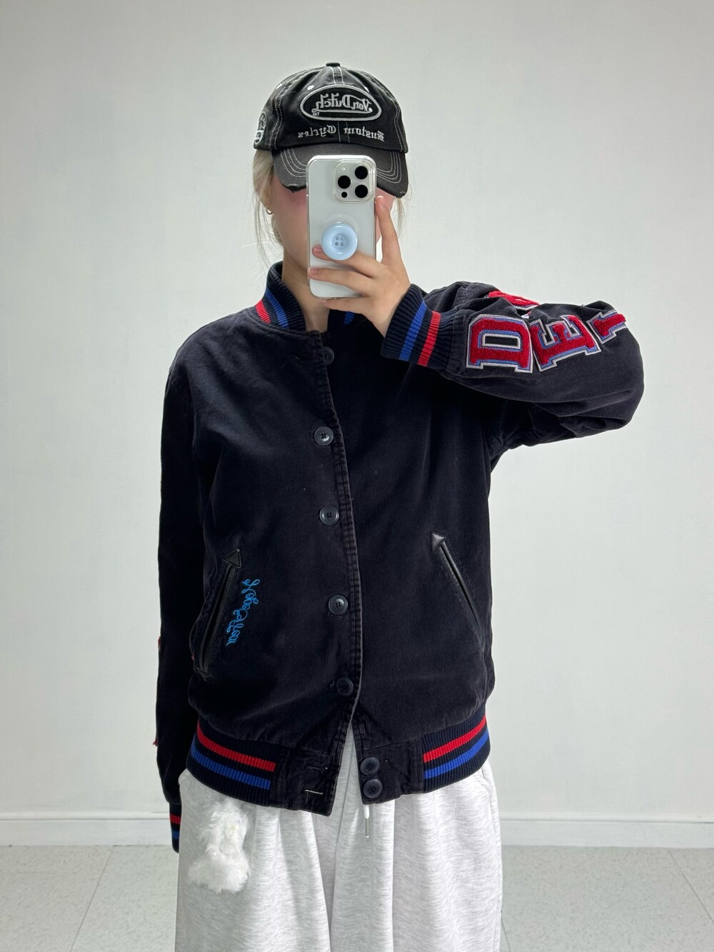 •키치한 스타일의 블랙 코듀로이 자켓 입니다! 정핏으로 착용해주시기 좋은 제품이며 와이드한 팬츠와 함께 착용해주시면 아주 굿 입니다