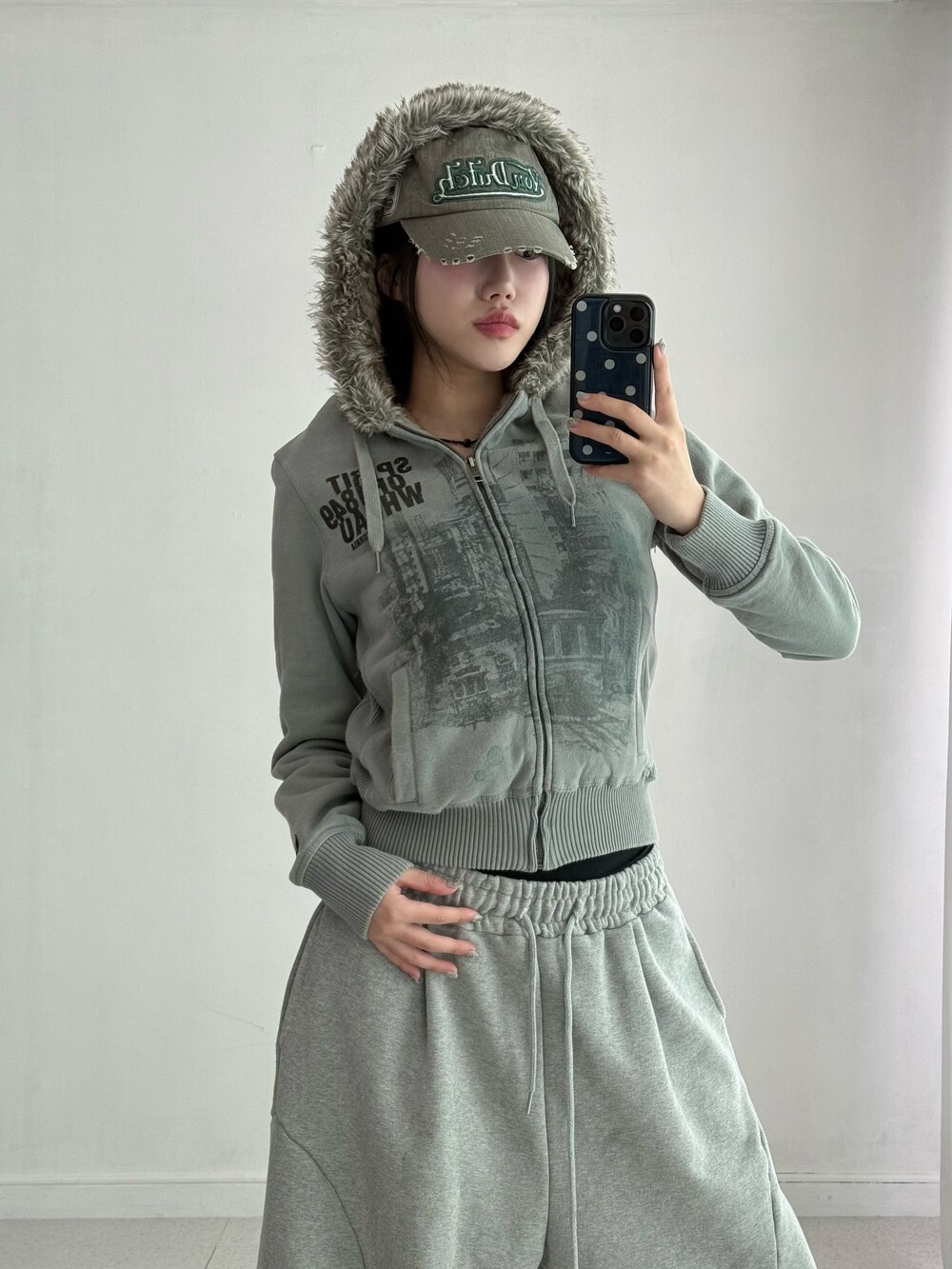•후아유 딱붙 숏 울프죠 후드집업 입니다! 와투케 무드에 따수움까지..><