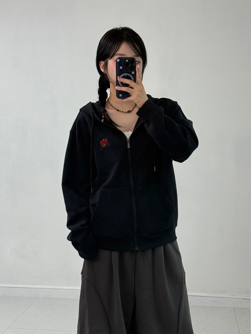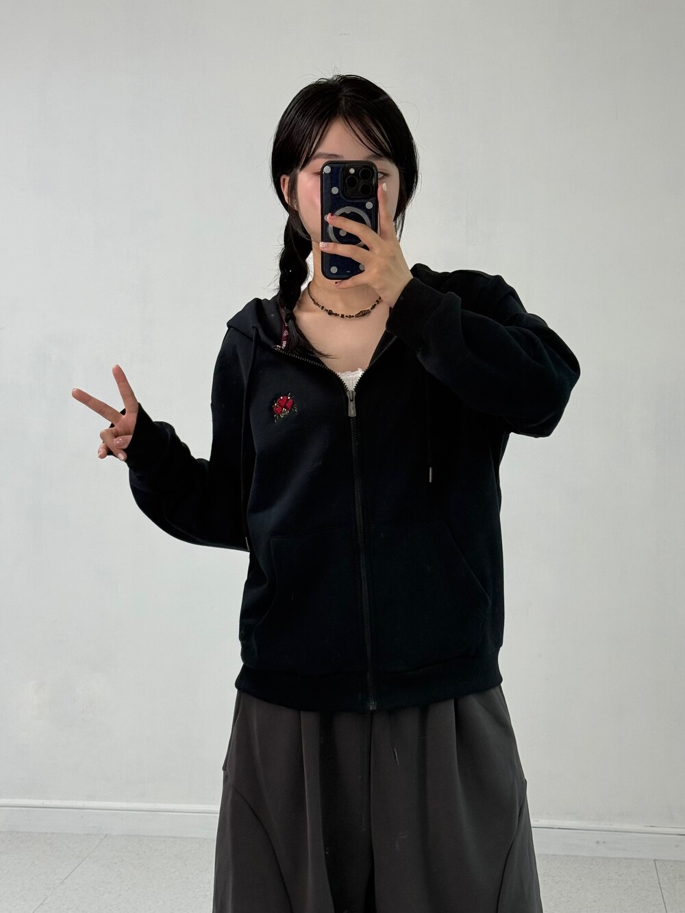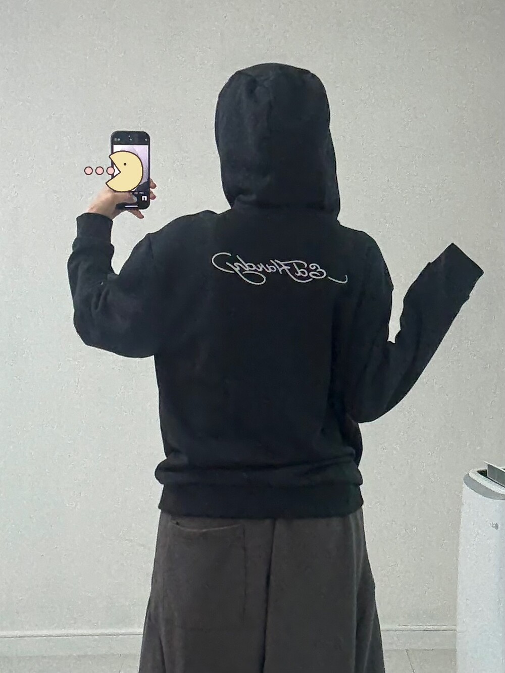 •에드하디 블랙 후드집업 입니다! 핏도 낭낭하니 앞에 귀여운 로고와 실버컬러로 들어간 등판로고가 넘 예뻐요ㅎ.ㅎ