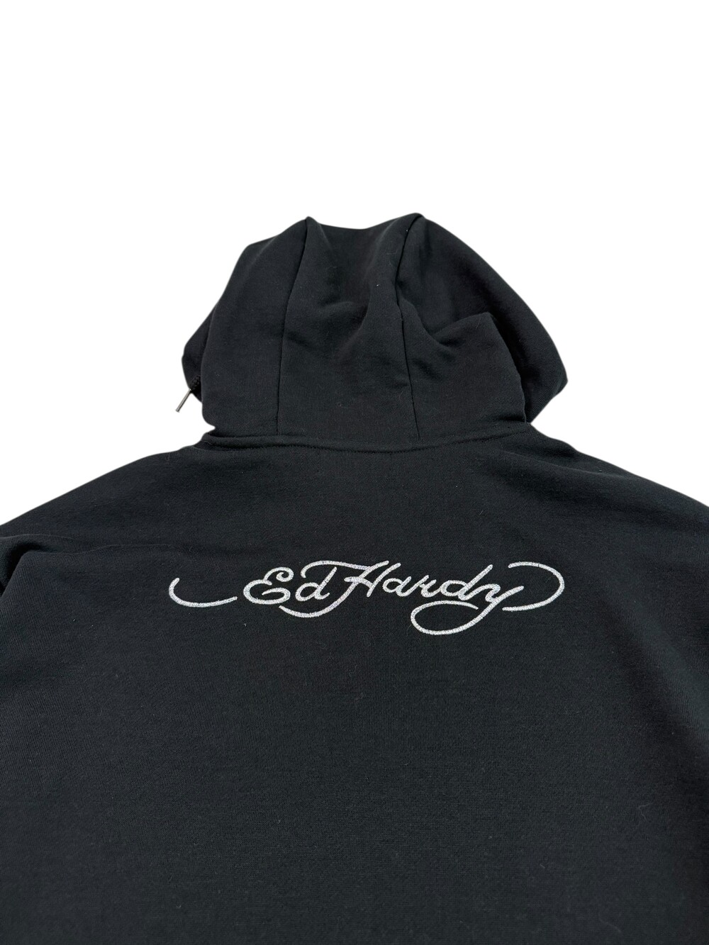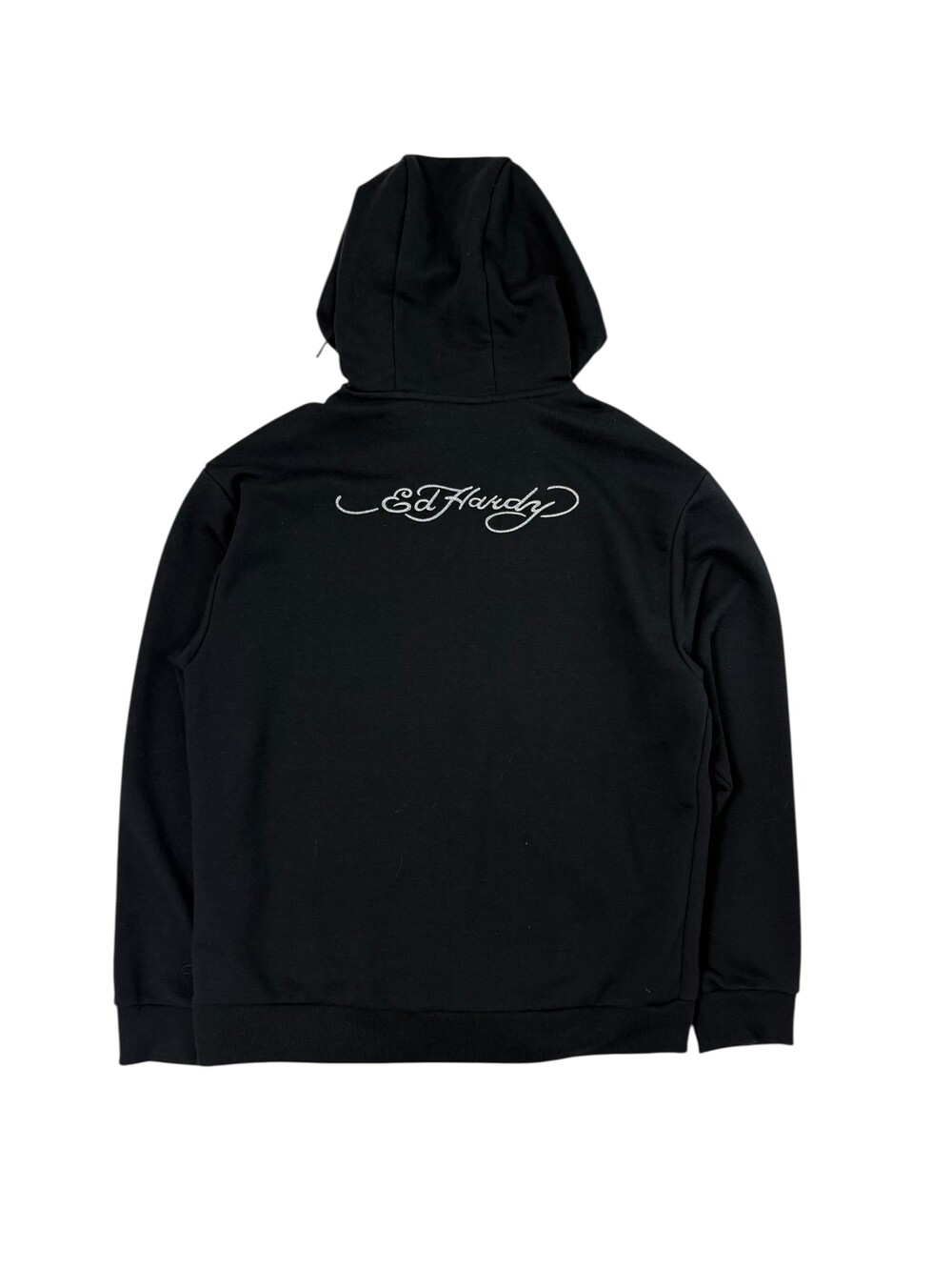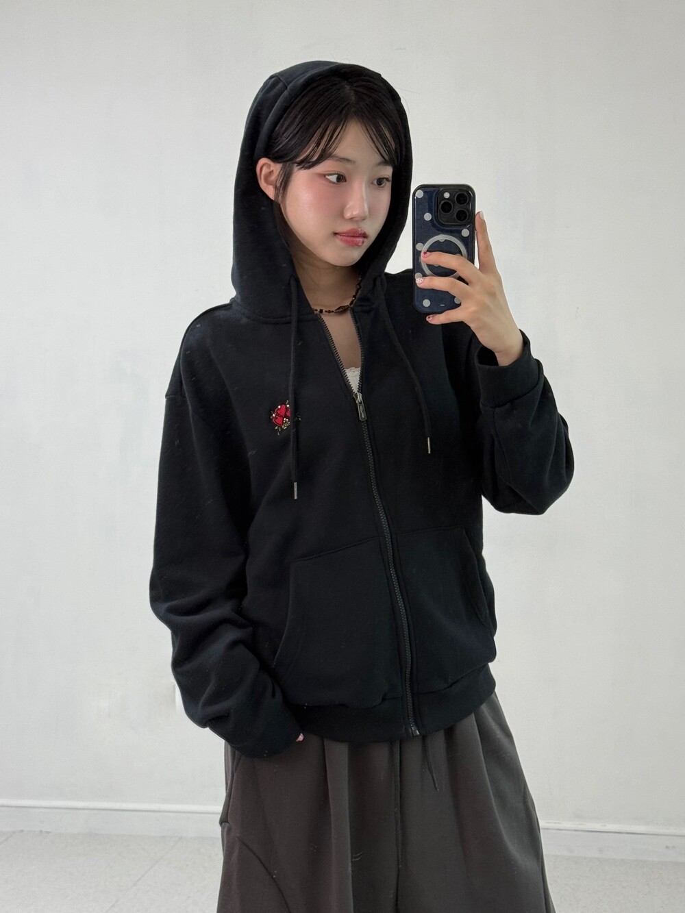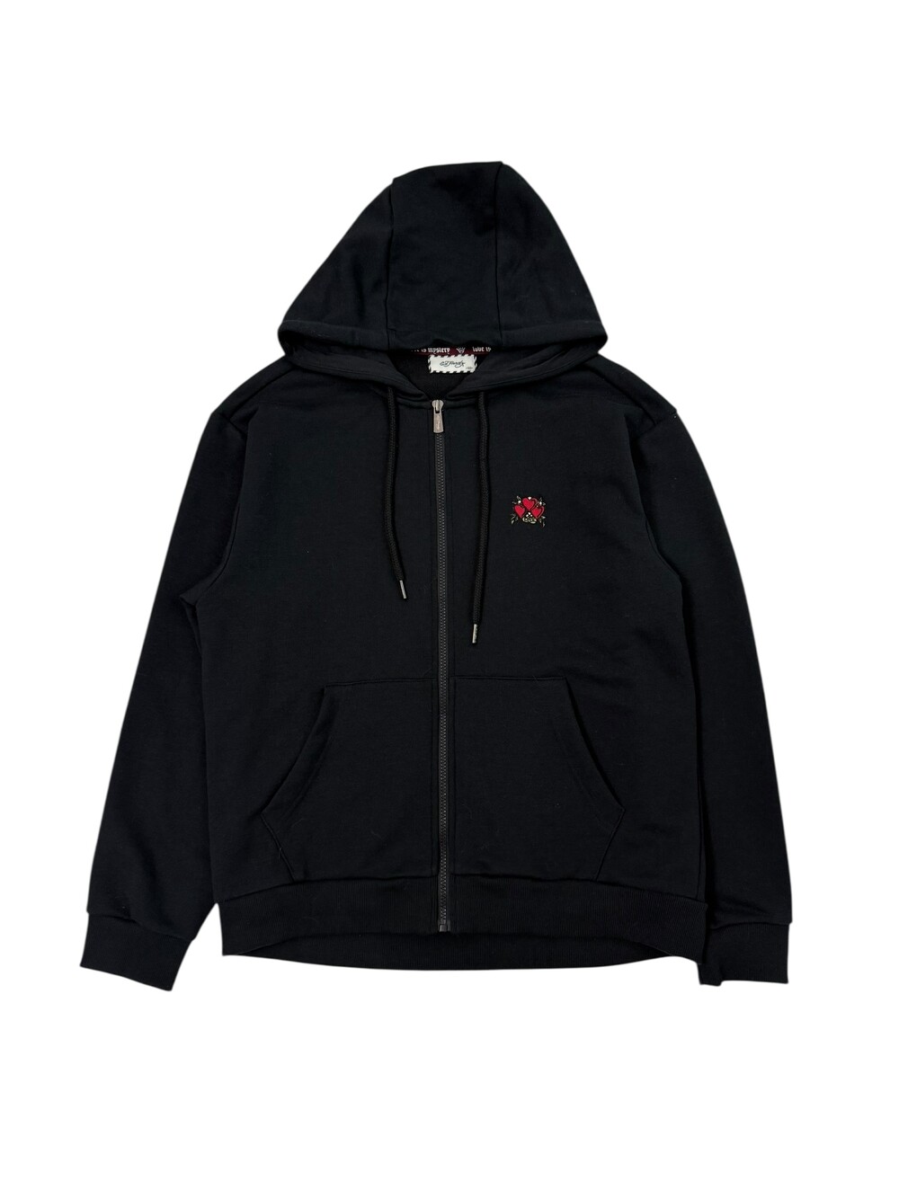 •에드하디 블랙 후드집업 입니다! 핏도 낭낭하니 앞에 귀여운 로고와 실버컬러로 들어간 등판로고가 넘 예뻐요ㅎ.ㅎ