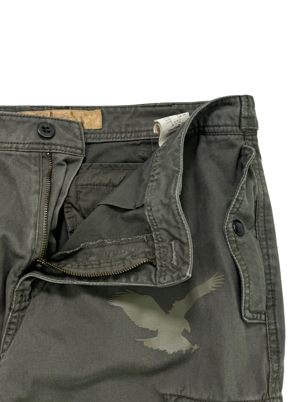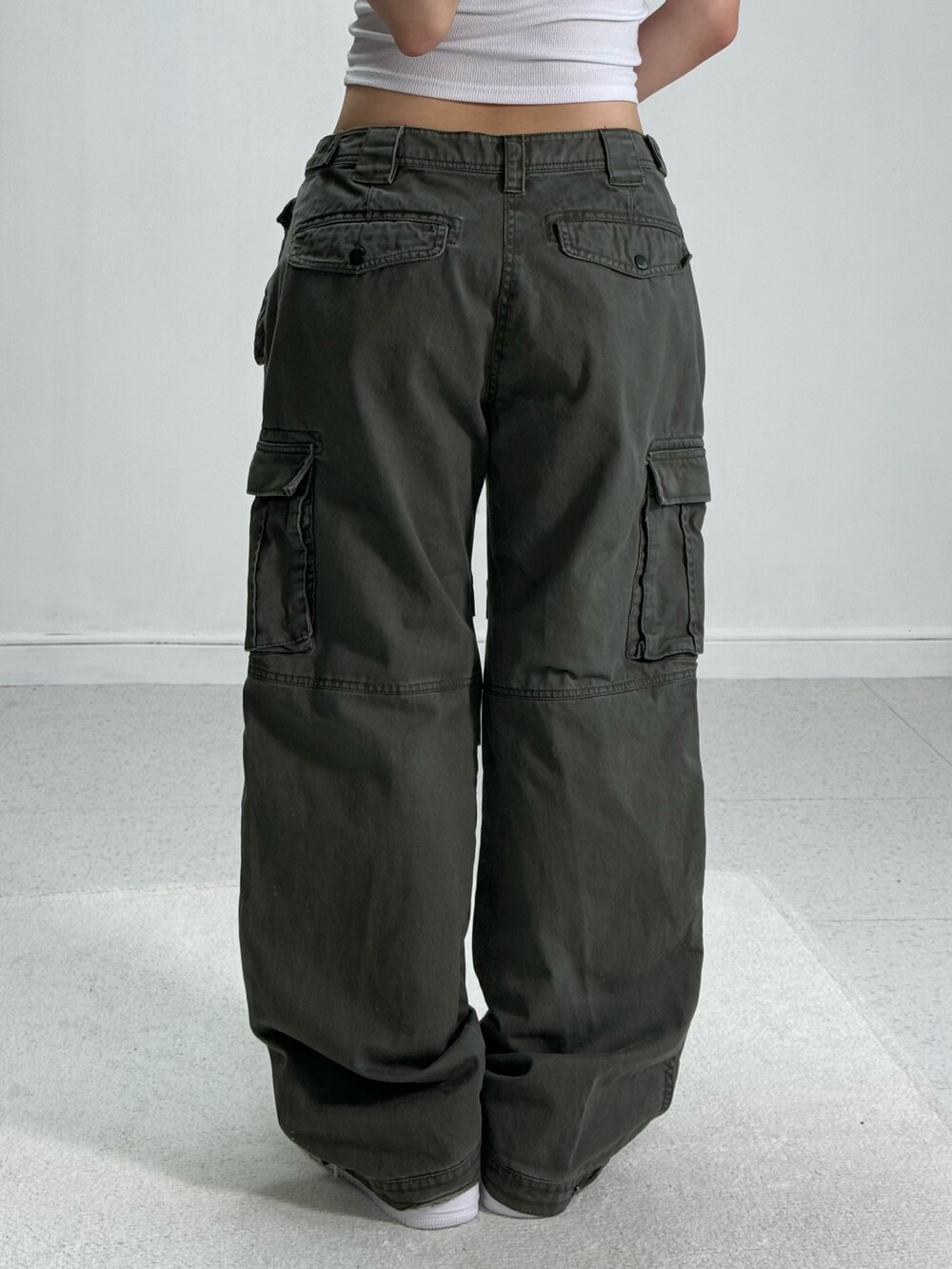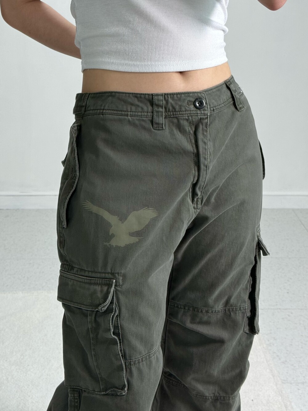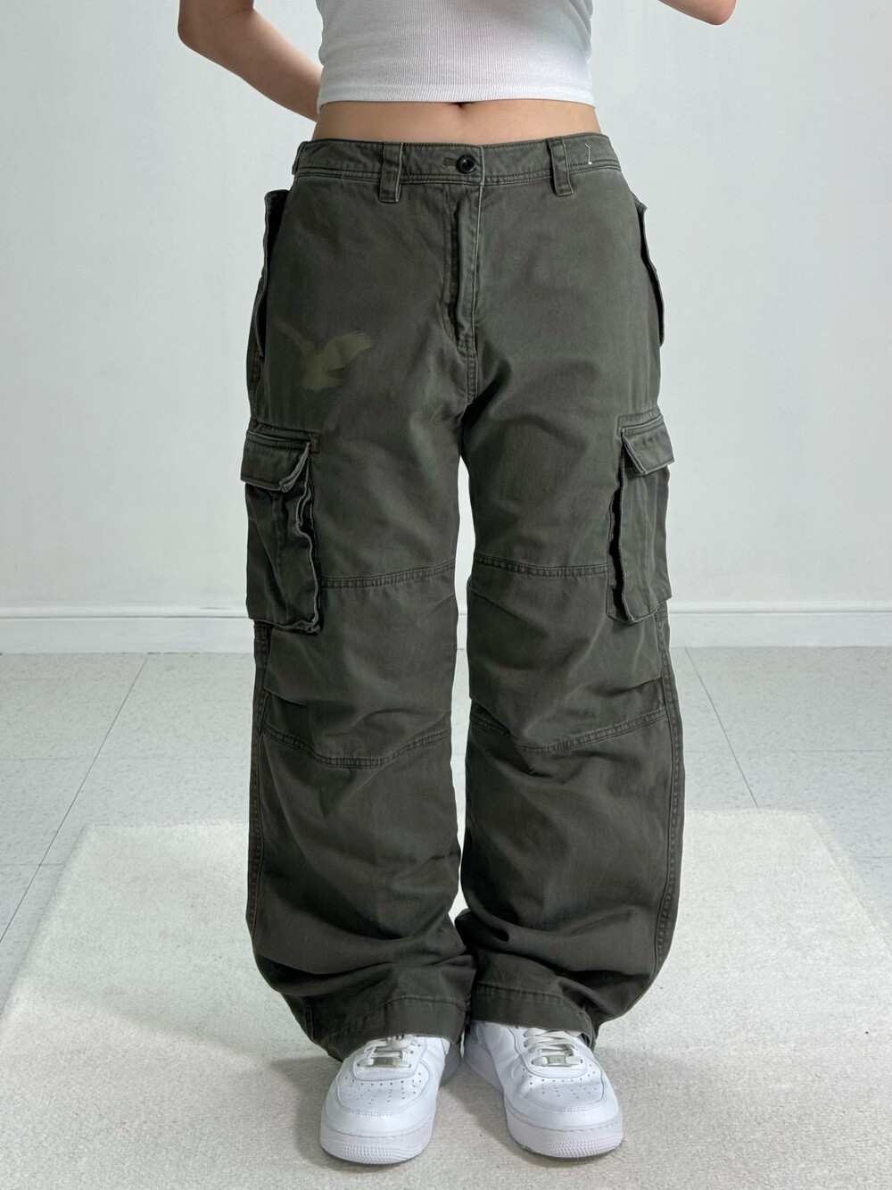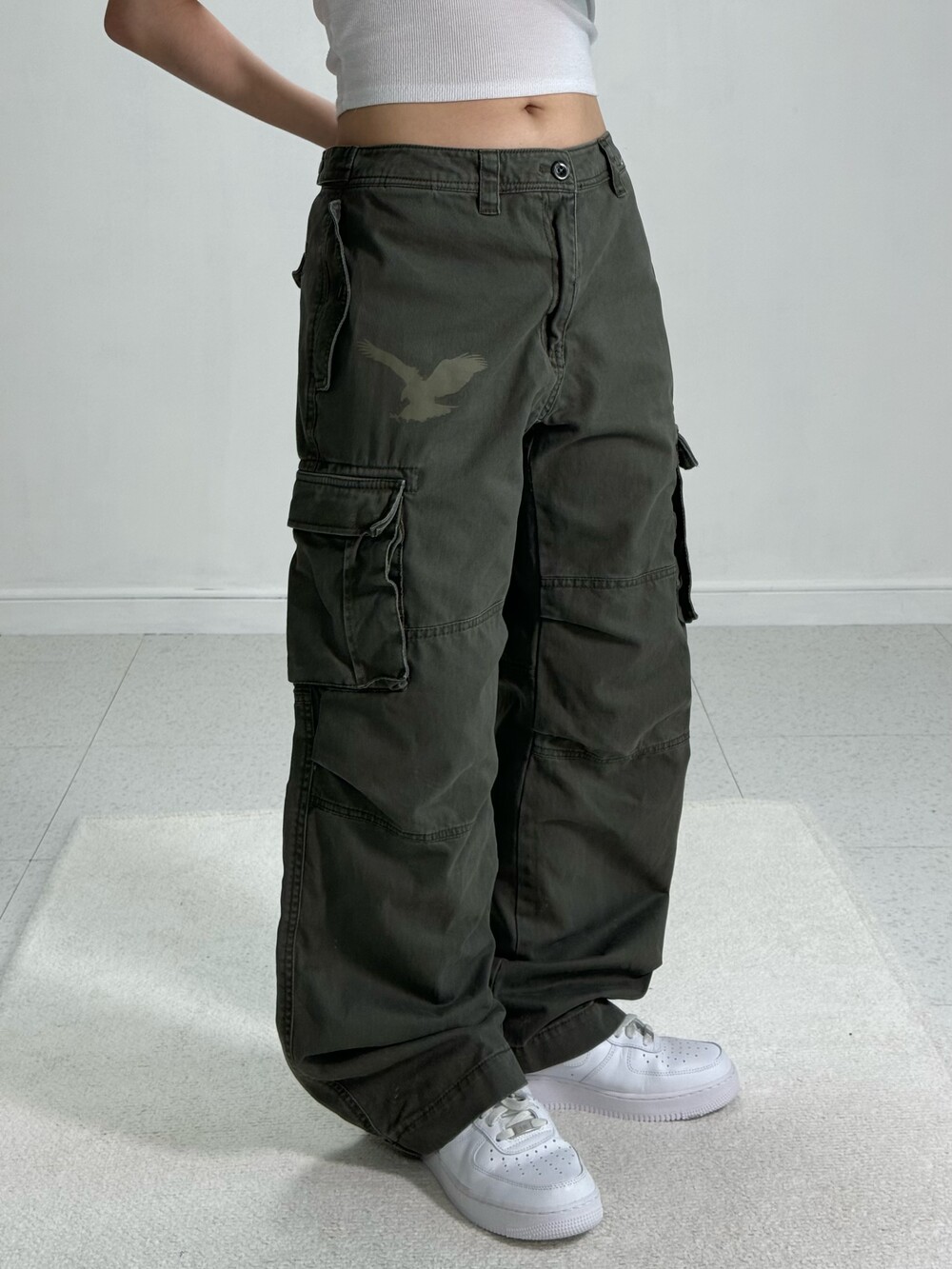 •카키컬러의 묵직 루즈핏 카고팬츠에요ㅎㅎ 이글 패치가 들어가 더욱 독특한 디자인이며 전체적으로 빈티지무드가 낭낭해서 착용했을때 더 예쁘답니다>,<