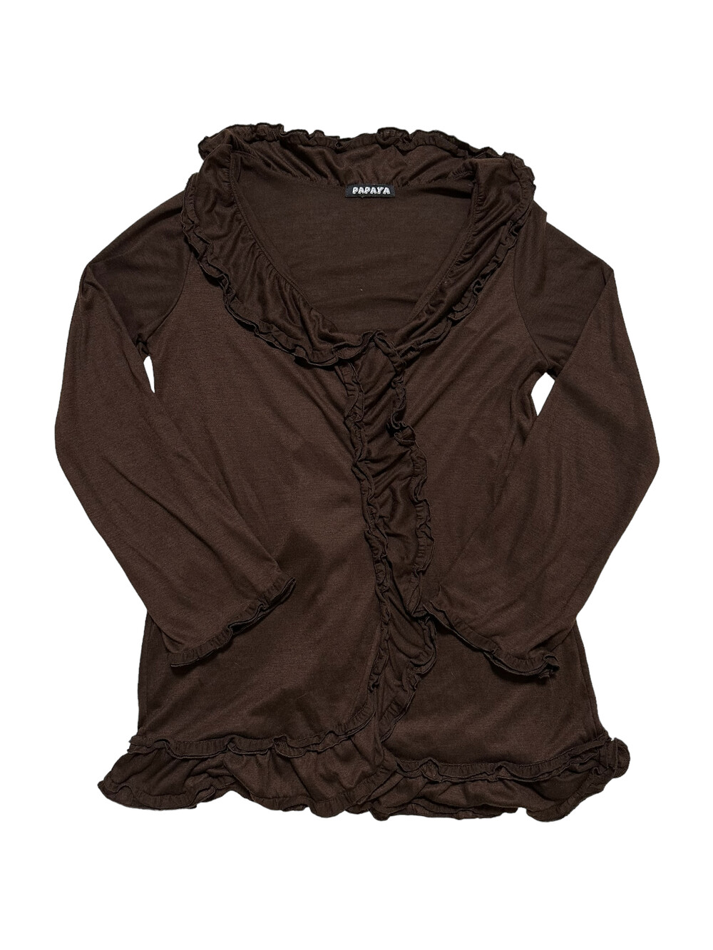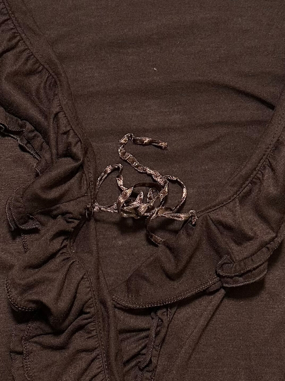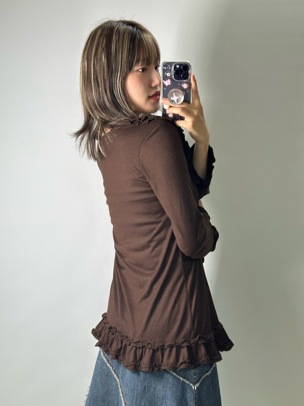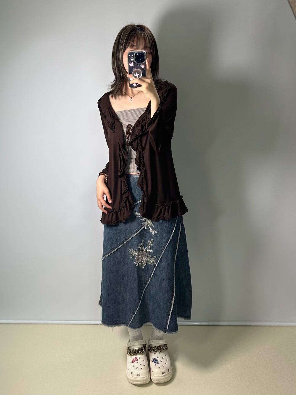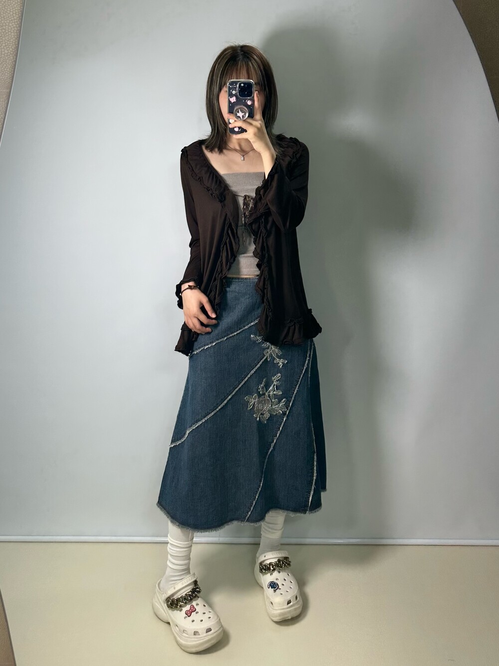 •프릴 디테일이 들어가 페어리하고 빈티지 무드가 가득한 가디건이에요! 리본을 묶어 착용하는 제품이라 더 독특한 제품이랍니다:) 원단이 부드러워서 하루종일 착용하기 부담없고 팔뚝도 얇아보이는게 정말 치트키임!