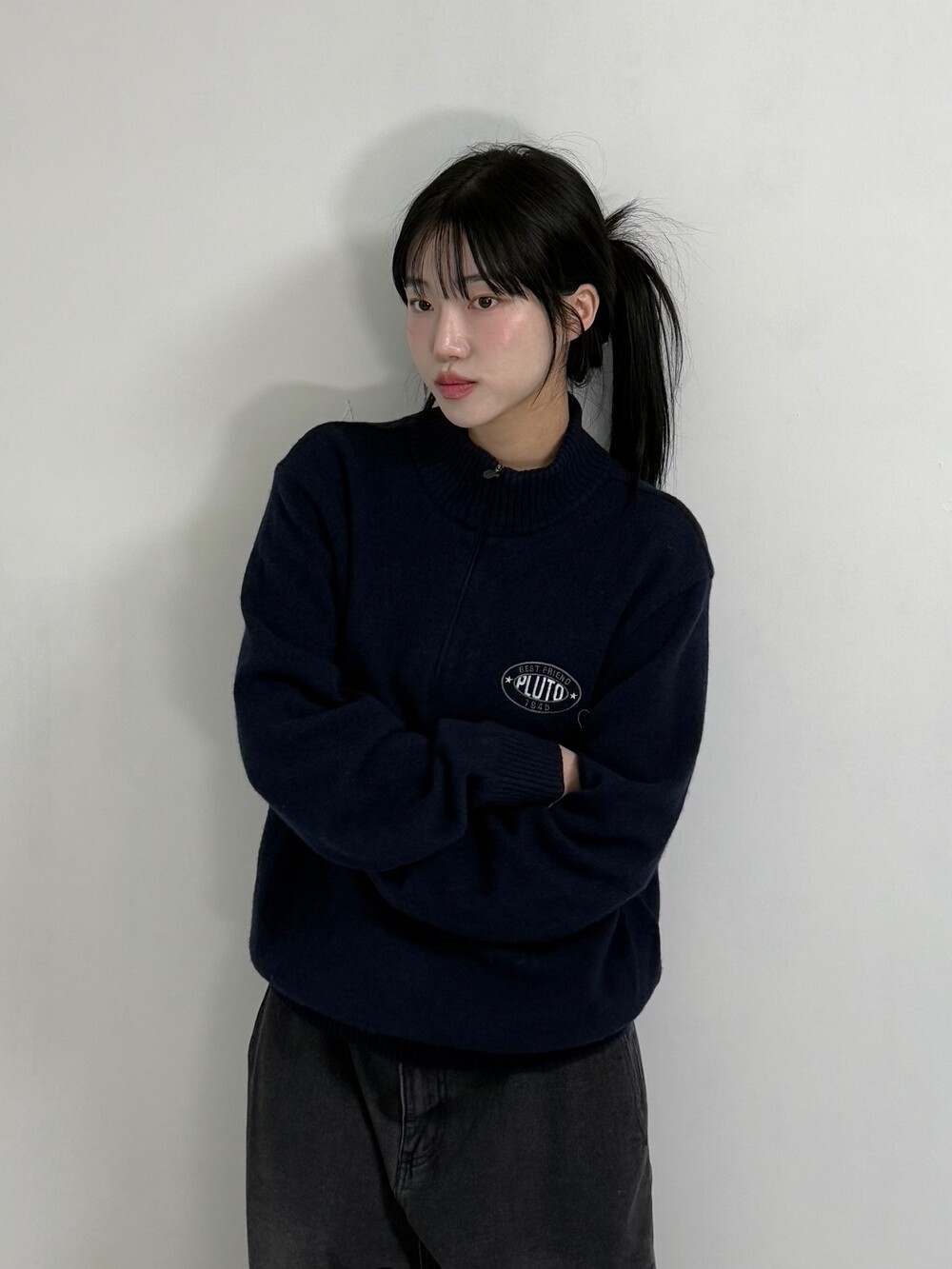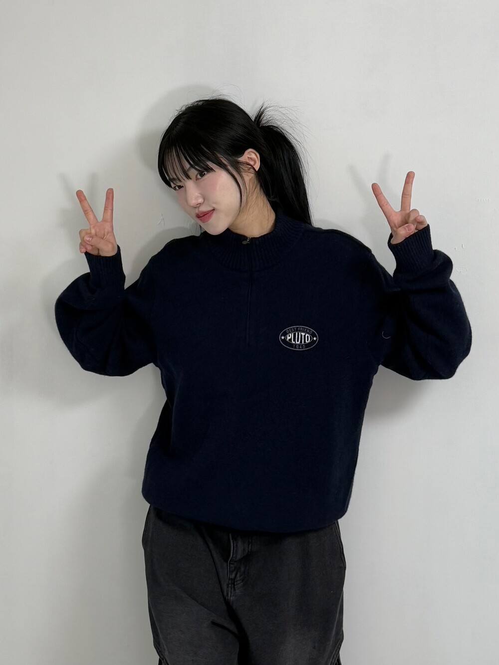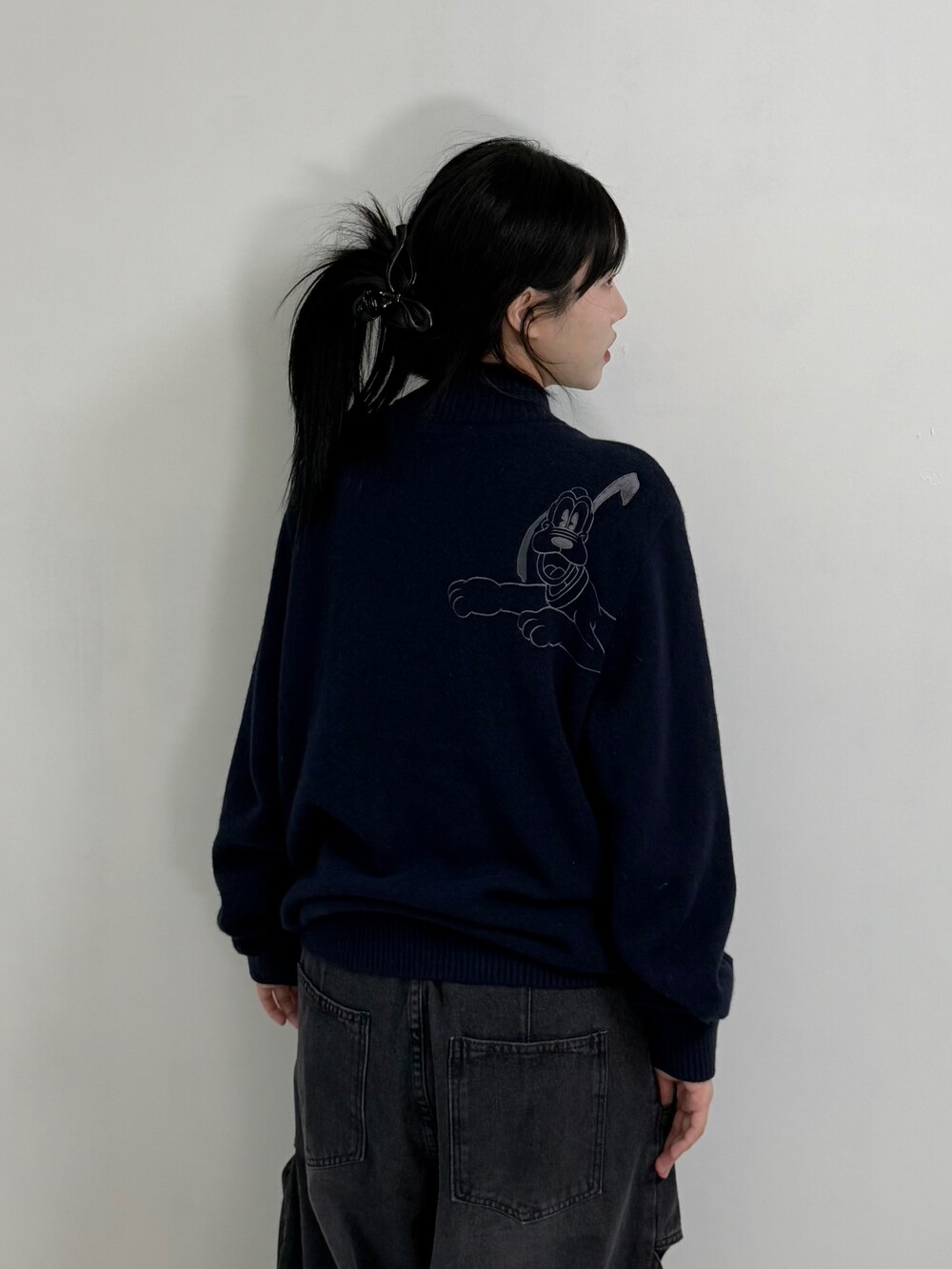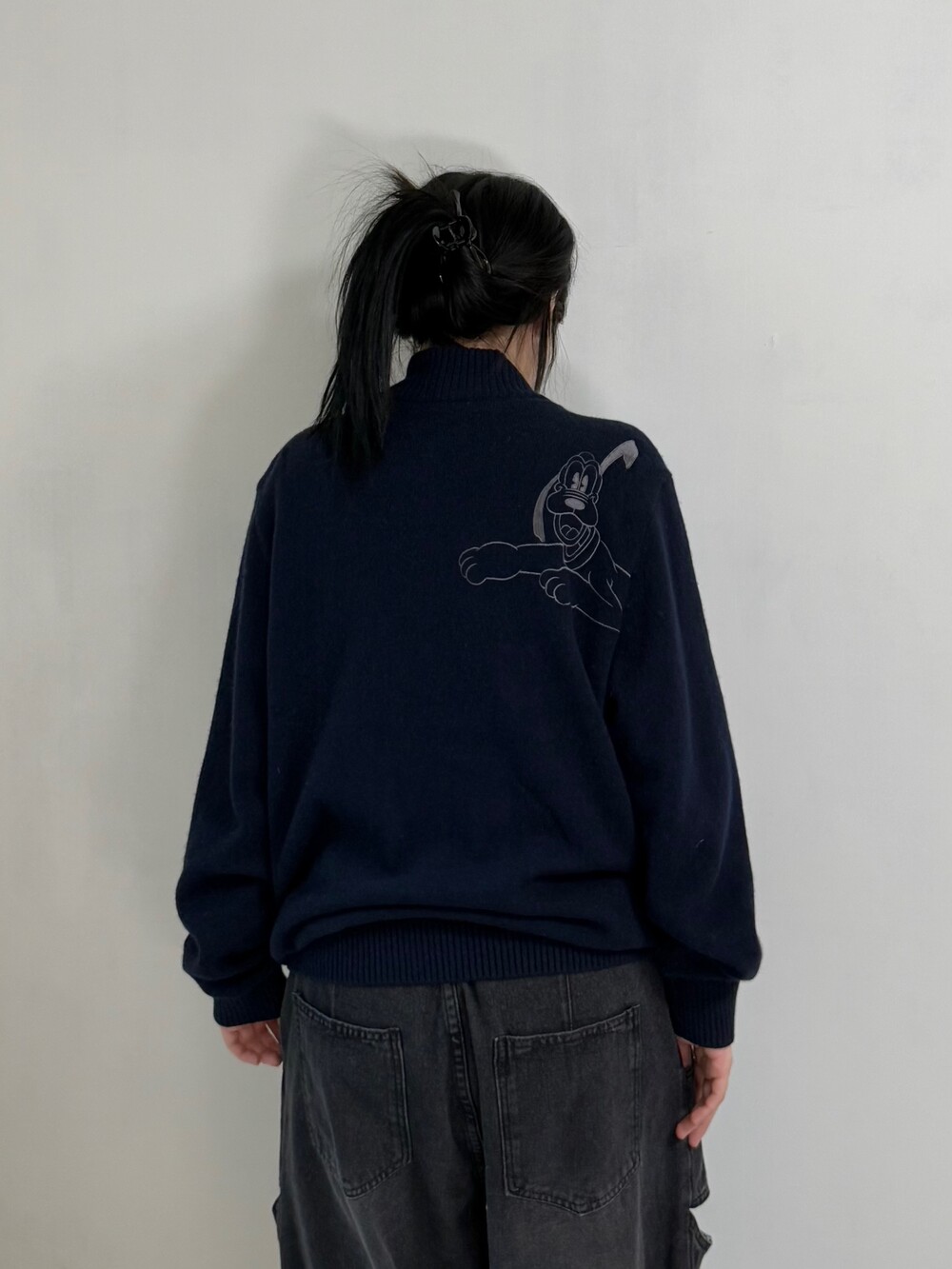 •디즈니 네이비 하프집업 입니다! 앞에는 그저그런 반집업 니트라고 생각하실 수 있지만.. 뒤에는 넘 귀여운 자수 강쥐가 따란~~