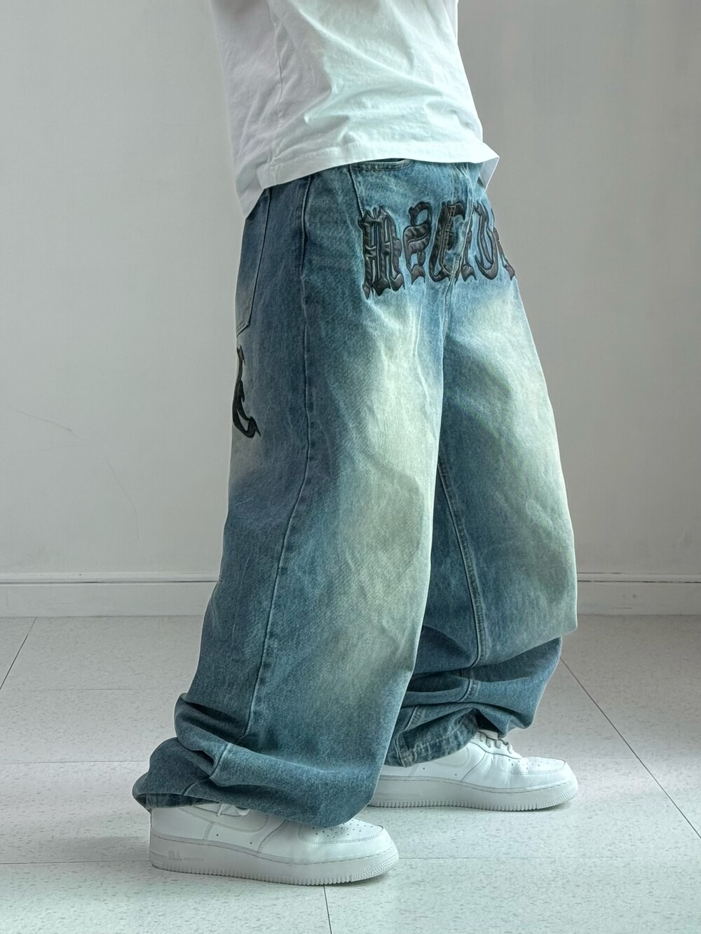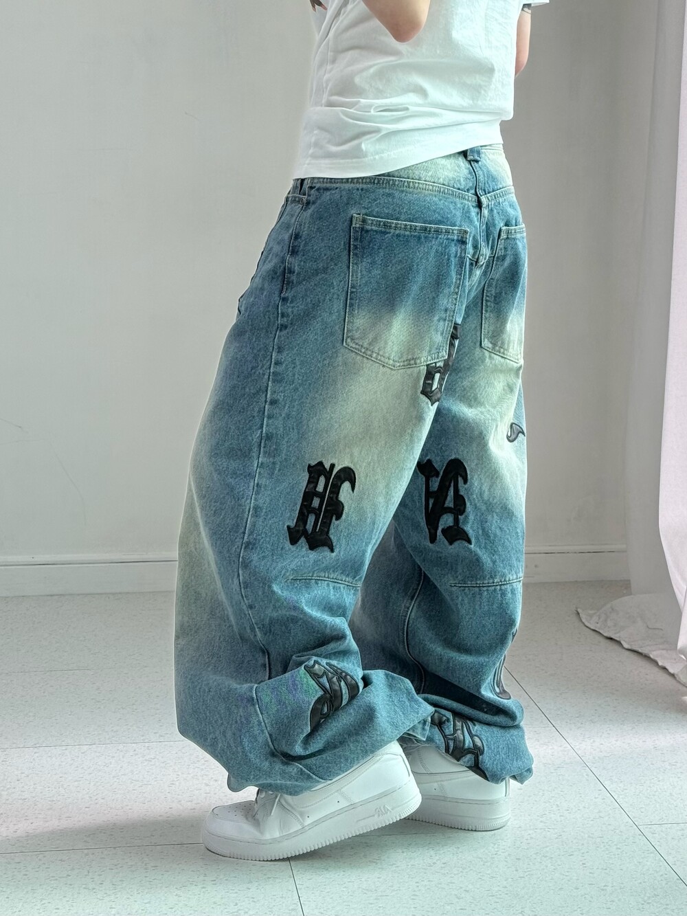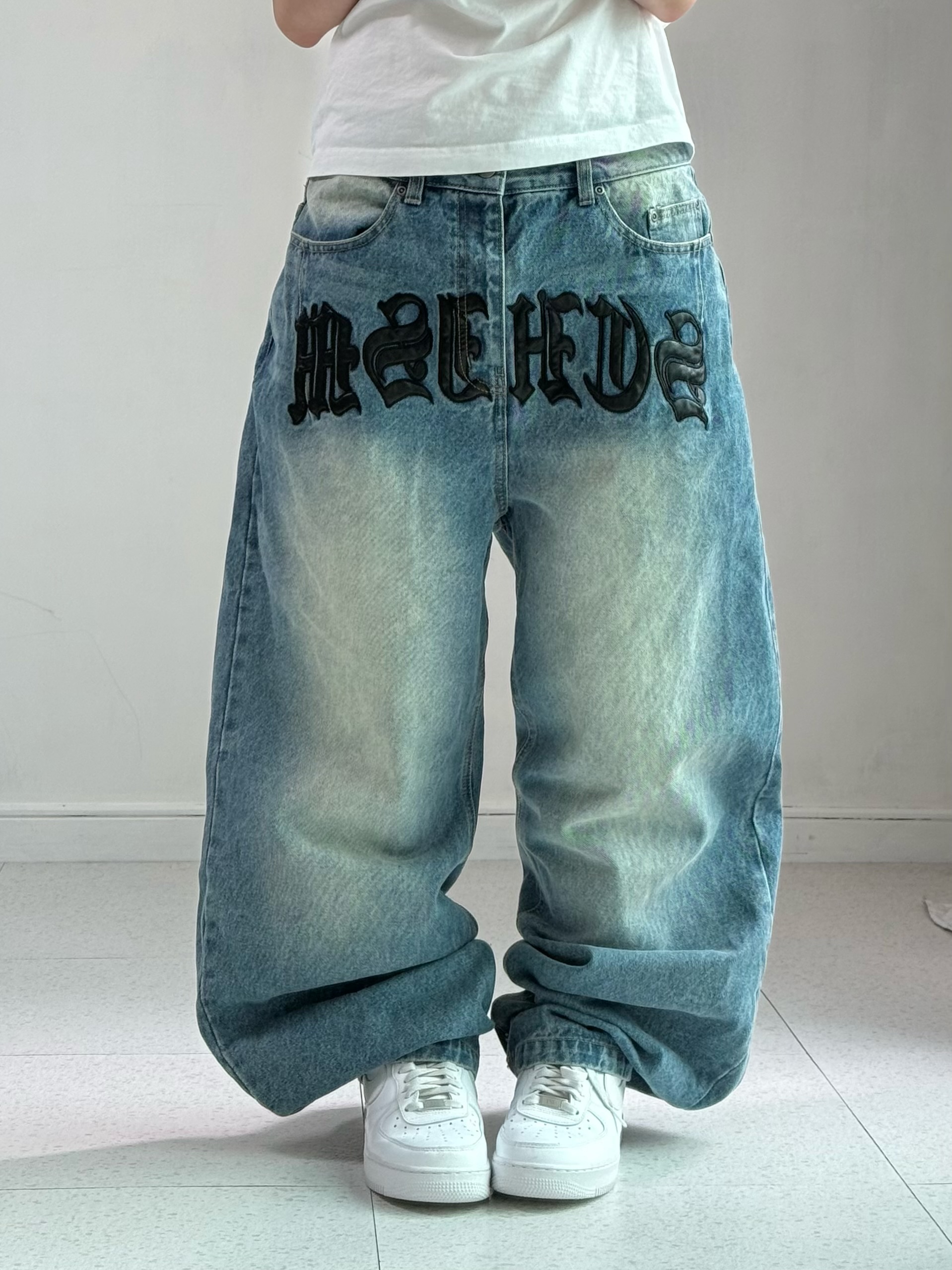 •스키즘인듀싱 패치 디테일이 들어간 데님팬츠 입니다! 적당히 묵직한 무게감과 멋드러지는 포인트들이 킥이에요! 유니크템 좋아하면 강강추ㅎㅎ